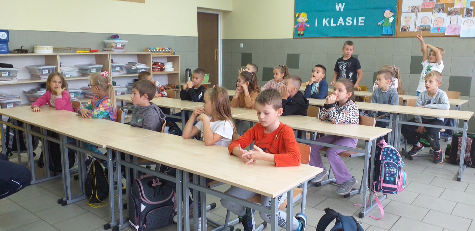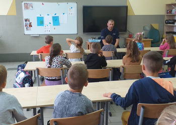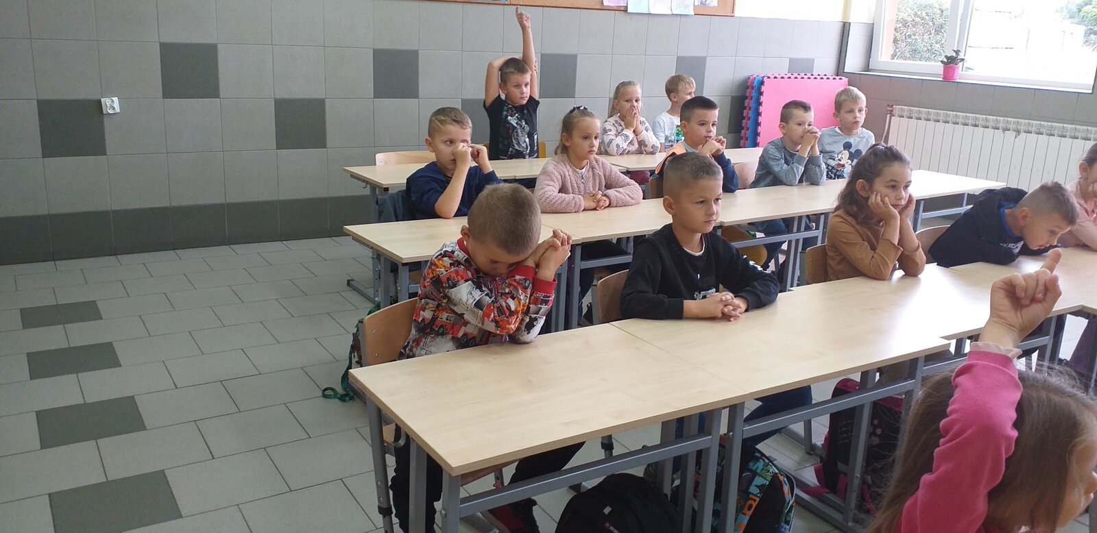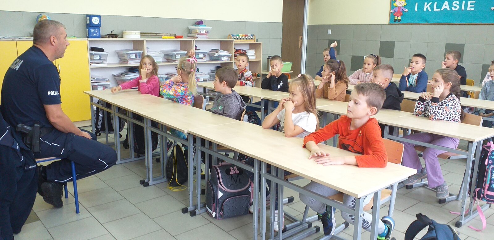 Co roku panowie policjanci odwiedzają klasę 1. I w tym roku również tak się wydarzyło. Była pogadanka dotycząca bezpieczeństwa i zachowania się w trudnych sytuacjach. Czekamy na kolejną wizytę.