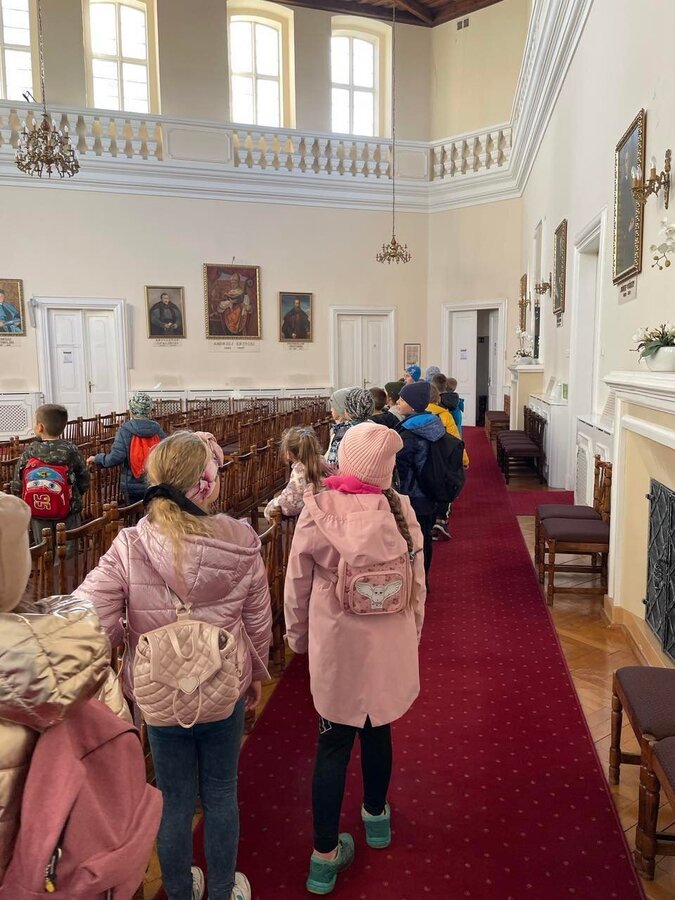 Dzisiaj klasa 2 i 3 pojechały na wycieczkę do Włoszakowic. Naszym celem był pałac Sułkowskich. Na miejscu czekał na nas pan Amadeusz Apolinarski, który był naszym przewodnikiem po tym wyjątkowym miejscu. Dzieci poznały historię pałacu, poznały jego kolejnych właścicieli. Zwiedzanie rozpoczęliśmy od salki masońskiej, poprzez salę trójkątną, aż po podziemia, owiane do tej pory tajemnicą. Podczas wędrówki pałacowymi korytarzami spotkała nas miła niespodzianka ze strony wójta, pana Roberta Kasperczaka. Poznaliśmy też różne historyczne postacie związane z historią naszej gminy. Po odpoczynku na placu zabaw i w kawiarni Szarlotka udaliśmy się do parku szukać zmian w przyrodzie, które zachodzą jesienią. Pełni wrażeń wróciliśmy do szkoły na dalsze zajęcia.