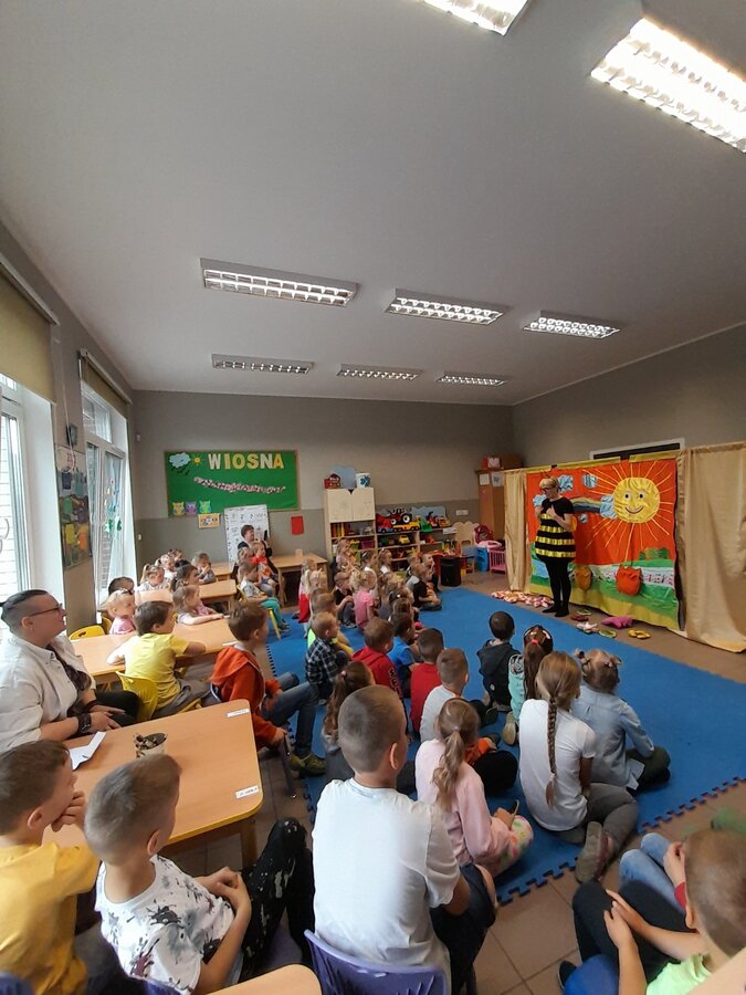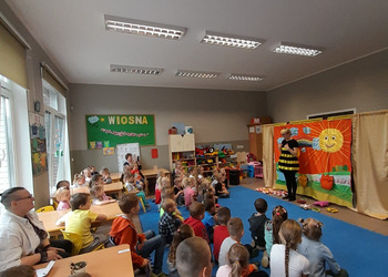 Wystawił dla dzieci z grup przedszkolnych i zerówki przedstawienie o pszczołach pt. „ Pszczoła miodna i pszczoła dzika”. Młodzi widzowie mieli okazję obejrzeć wspaniały teatrzyk pełen muzyki, tańca i humoru. Mogli też aktywnie brać udział w spotkaniu, co bardzo pozytywnie wpłynęło na odbiór wydarzenia przez dzieci. Ciekawostki zaprezentowane przez aktorów z całą pewnością pomogły im w ugruntowaniu wiedzy na temat życia pszczół w ulu, a także ich cennej pracy.