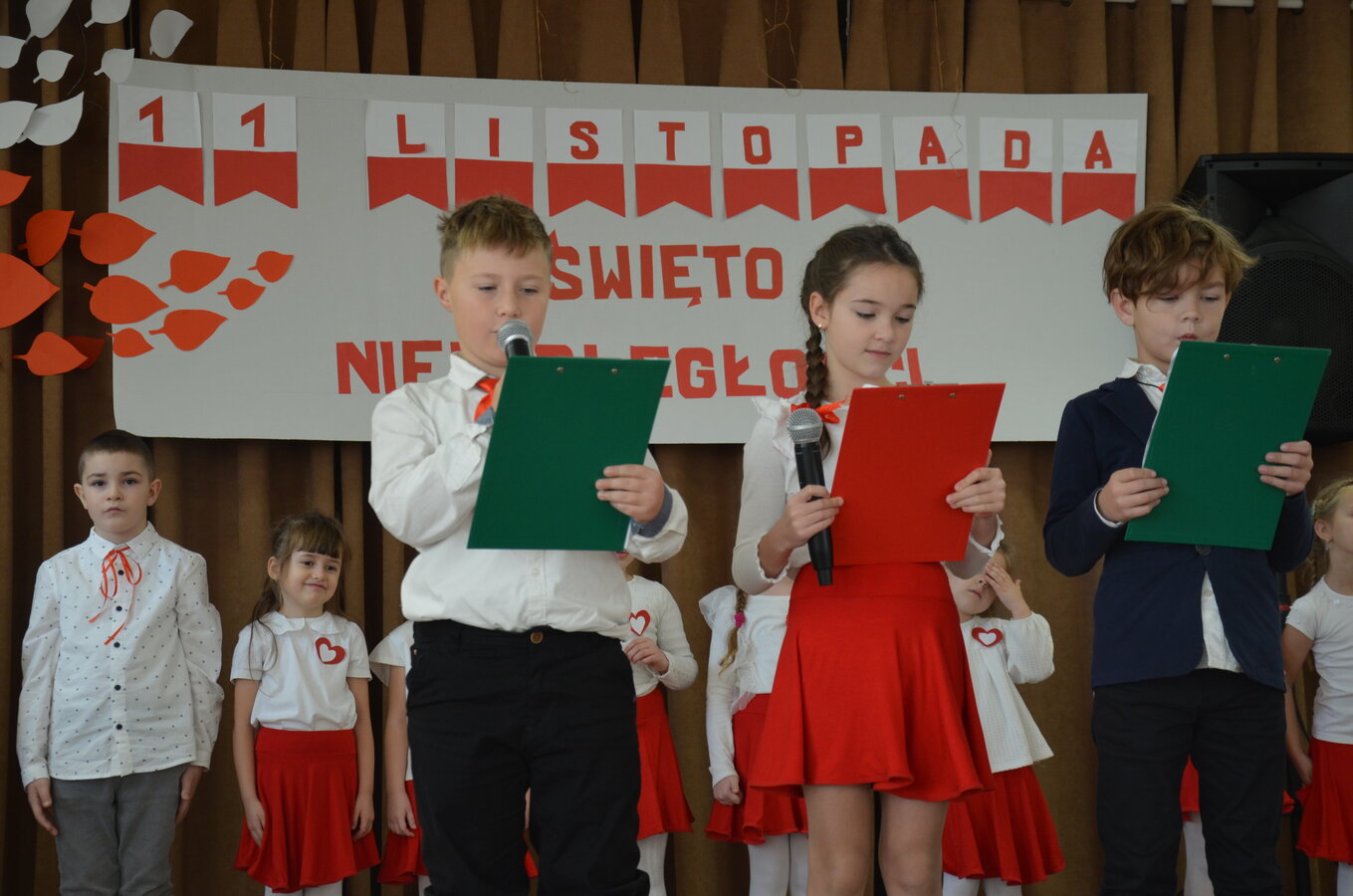 6 listopada w naszej szkole odbyła się uroczysta akademia z okazji Święta Niepodległości, które obchodzimy 11 listopada. Uczniowie z oddziału przedszkolnego oraz klasy III wraz z wychowawczyniami Panią Karoliną Mejza i Panią Bogusławą Krawczyk przygotowali piękny program artystyczny, przypominający o bohaterach walczących o wolność naszej ojczyzny. Podczas występu przypominano najważniejsze momenty długiej drogi do odzyskania niepodległości, śpiewano pieśni narodowe i wspólnie odśpiewano hymn Polski. Sala była udekorowana w barwy biało-czerwone, co podkreślało podniosły nastrój uroczystości. Akademia była nie tylko lekcją historii, ale także wyrazem szacunku i wdzięczności wobec tych, którzy walczyli o niepodległość naszego kraju. Na zakończenie obchodów odbył się Konkurs Pieśni Patriotycznych, w którym wzięli udział: