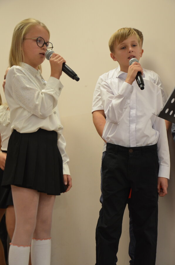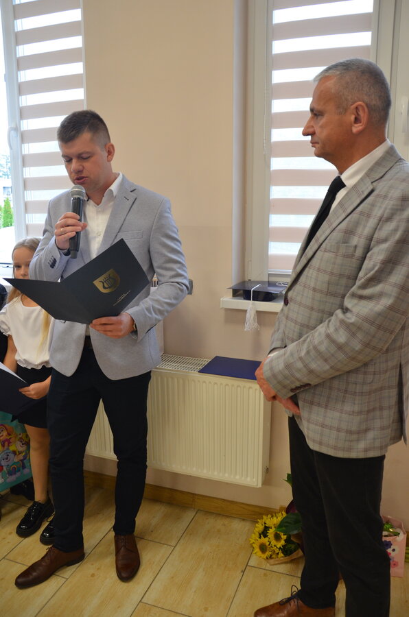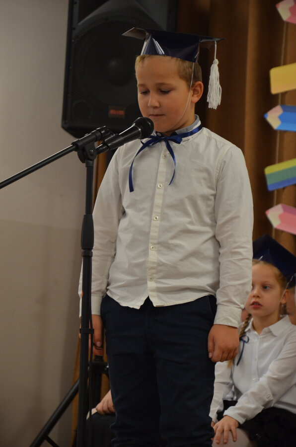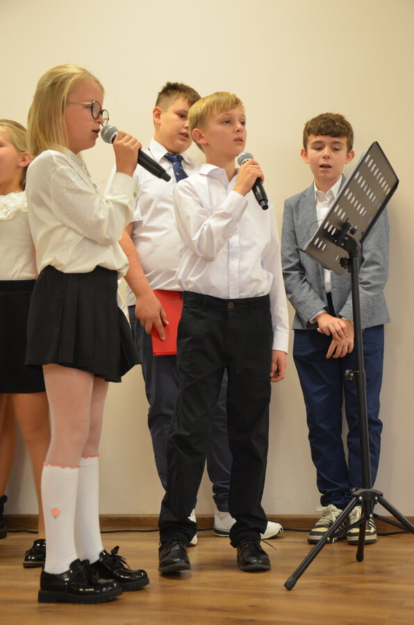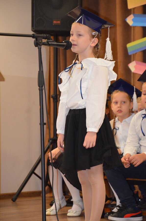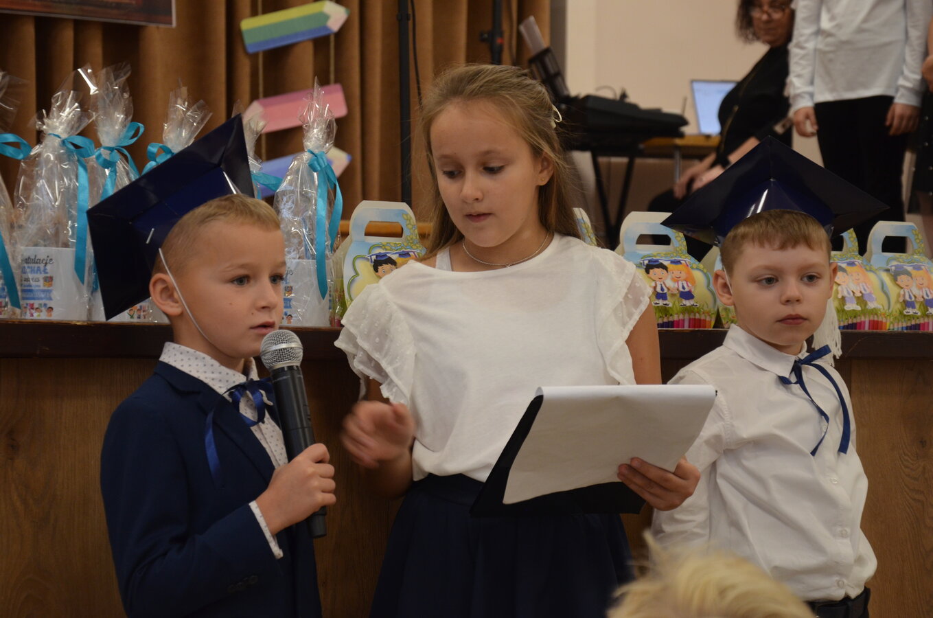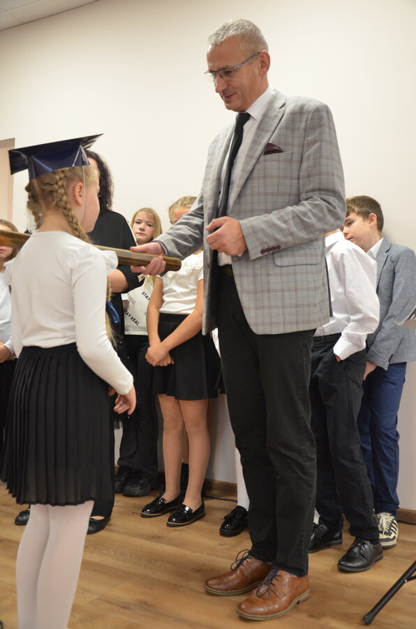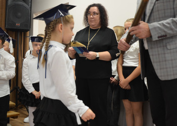 Dzisiaj 14.10.2025r. w naszej szkole odbyła się wyjątkowa uroczystość – Pasowanie dzieci z klasy pierwszej na Uczniów oraz uroczysta akademia z okazji Dnia Edukacji Narodowej. Był to dla nich szczególny dzień. Przybyły do szkoły w galowych strojach w towarzystwie Rodziców z dumą zaprezentowały swoje umiejętności zdobyte podczas pierwszego miesiąca nauki. Pokazały, jak pięknie potrafią śpiewać i recytować wiersze. Zostały serdecznie powitane w gronie społeczności uczniowskiej przez starszych kolegów. Następnie odbyło się uroczyste ślubowanie, zaś punktem kulminacyjnym imprezy był akt pasowania dokonany przez Pana Dyrektor . Od tej chwili wszystkie dziewczynki stały się pełnoprawnymi uczennicami, zaś chłopcy – pełnoprawnymi uczniami Szkoły Podstawowej im Tadeusza Kościuszki w Jezierzycach Kościelnych.
