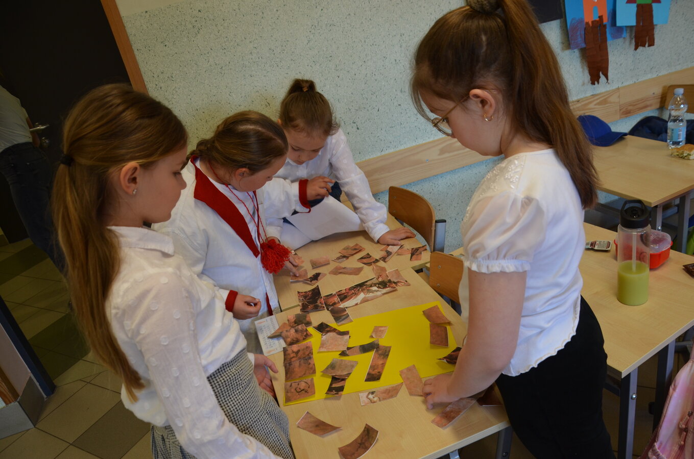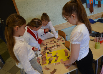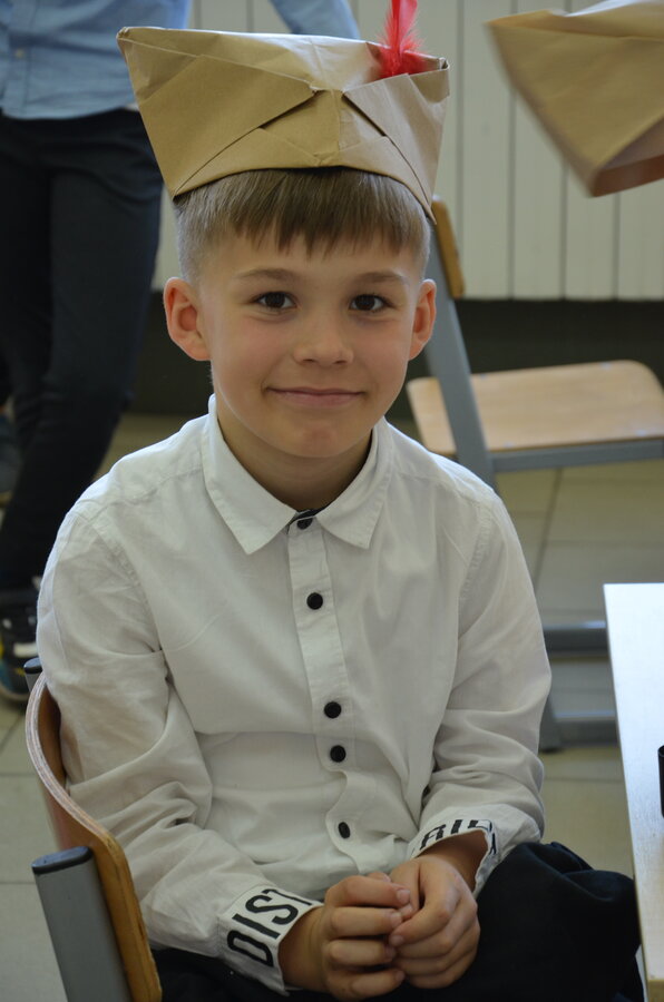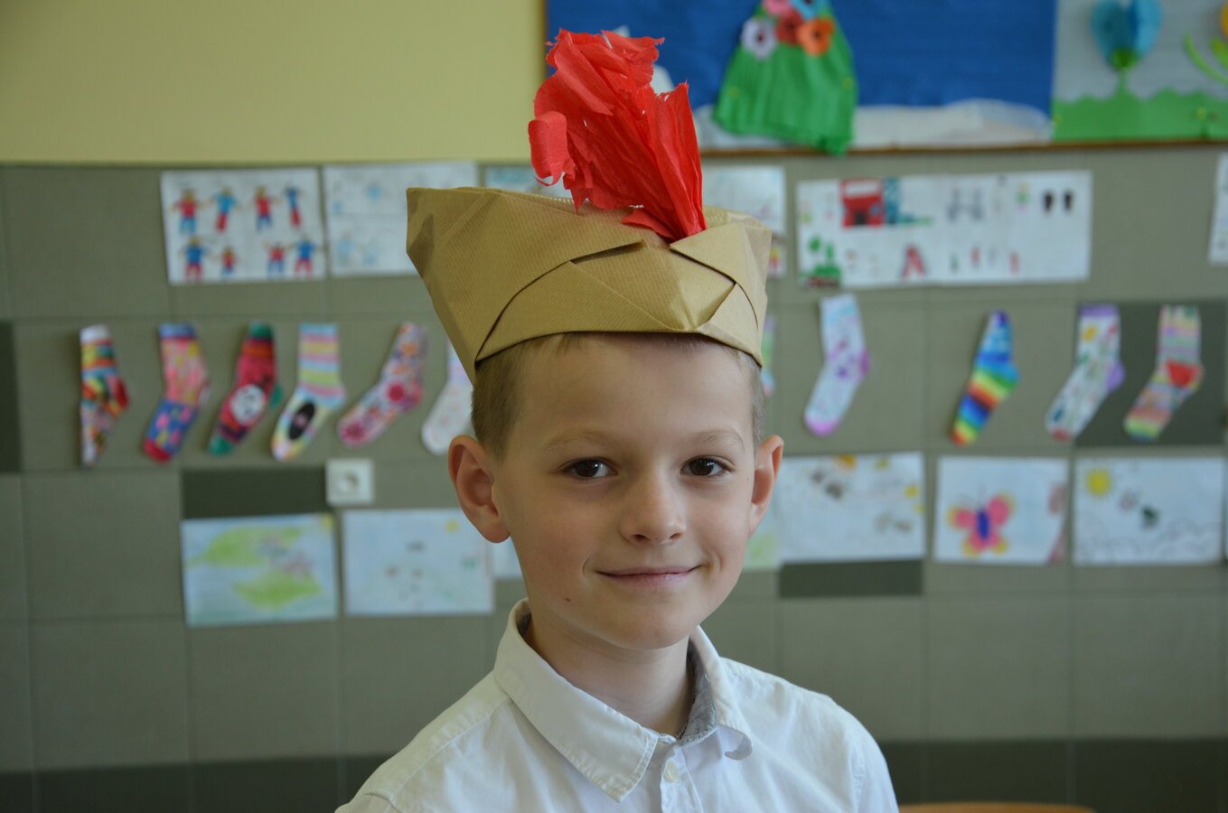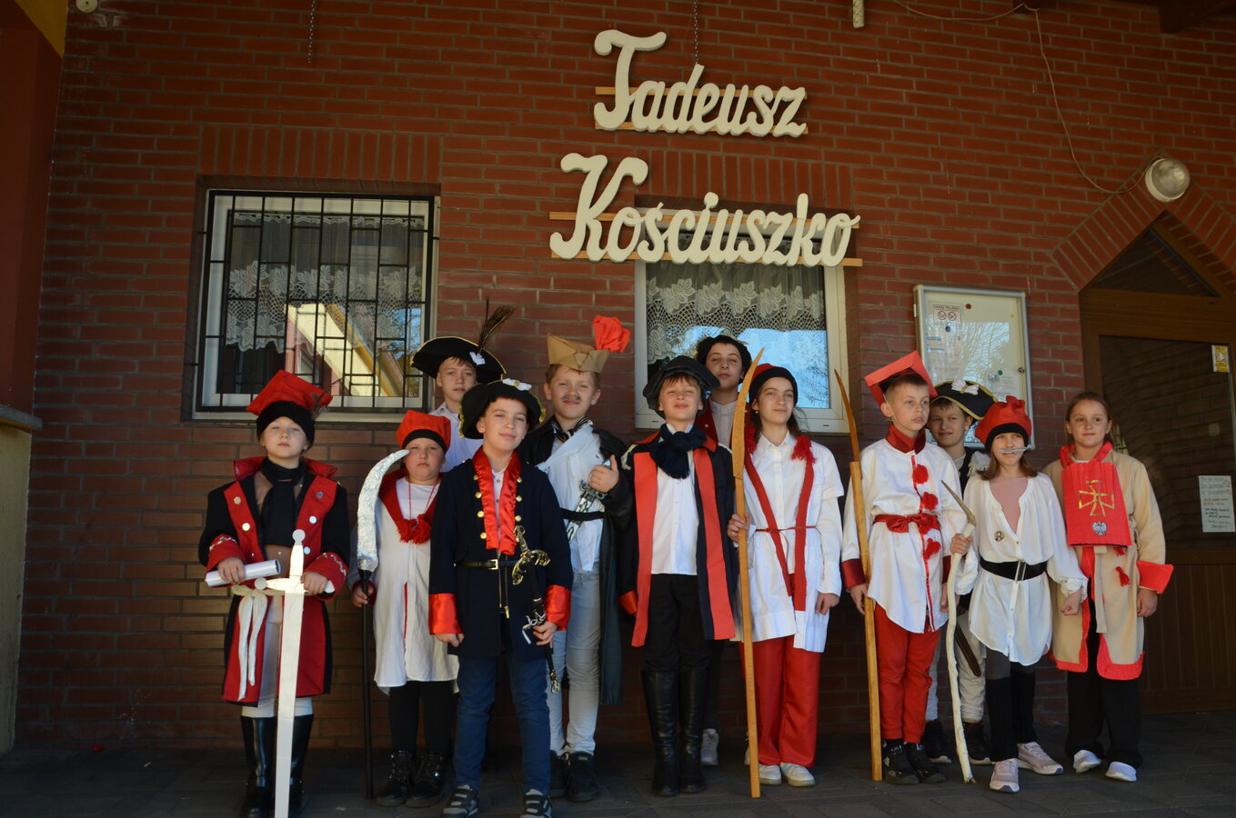 Dnia 4 kwietnia, w kolejną rocznicę bitwy pod Racławicami, obchodziliśmy Dzień Patrona Szkoły - Tadeusza Kościuszki. Niektóre dzieci przebrały się w stroje historyczne nawiązujące do czasów, w których żył nasz bohater. Można było podziwiać strój kadeta Szkoły Rycerskiej, Wojciecha Bartosa i samego Naczelnika powstania. Tego dnia mogliśmy poszerzyć swoją wiedzę o Tadeuszu Kościuszce: układaliśmy puzzle, wykonywaliśmy czapkę krakuskę metodą origami, budowaliśmy kopiec Kościuszki z klocków, układaliśmy plan lekcji, który mógłby obowiązywać w Szkole Rycerskiej, pracowaliśmy z mapą i tekstami źródłowymi, dowiedzieliśmy się co mają wspólnego samoloty myśliwskie z Kościuszką oraz poszukiwaliśmy współczesnych miejsc związanych z naszym bohaterem. Dziękujemy wszystkim, którzy zaangażowali się w naszą zabawę.