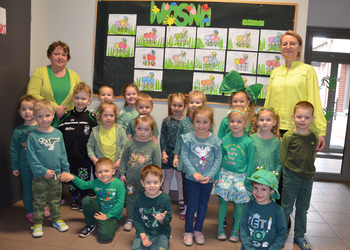 Co roku 17 marca w Irlandii jak i w wielu innych krajach anglosaskich obchodzony jest bardzo hucznie Dzień św. Patryka i my również postanowiliśmy z tej okazji się pobawić. Wcześniej został ogłoszony konkurs na "Najpiękniejszy kapelusz irlandzkiego skrzata-Leprikona". W konkursie wzięli udział zarówno przedszkolacy jak i uczniowie klas 1-8 Szkoły W Jezierzycach Kościelnych. W prace zaangażowali się również rodzice dzieci i powstały przepiękne kapelusze. Podczas lekcji języka angielskiego dzieci uczyły się tańca irlandzkiego i świetnie się przy tym bawiły. Oglądali również filmiki, które przybliżyły im postać św. Patryka i poznały legendę o Leprechaunie. Natomiast 21 marca uczniowie świętowali ten dzień całą szkołą w połączeniu z Pierwszym Dniem Wiosny. Brali udział w różnych konkurencjach językowych jak i sportowych. Dużym zainteresowaniem cieszyła Szkolna Księga Rekordów Guinnessa. Na koniec posilili się kiełbaską z ogniska.
