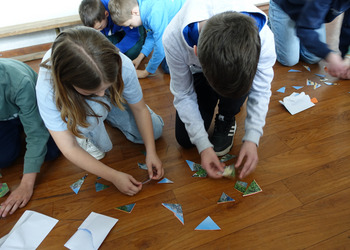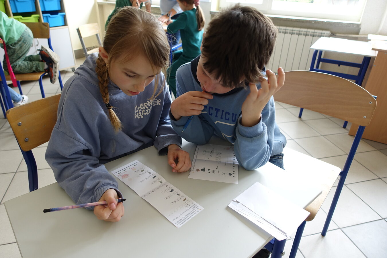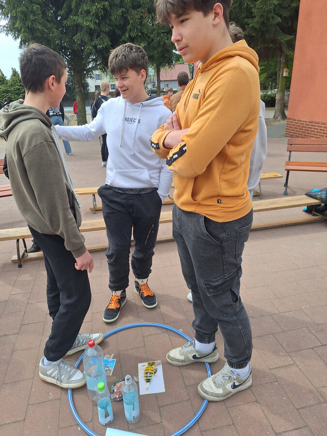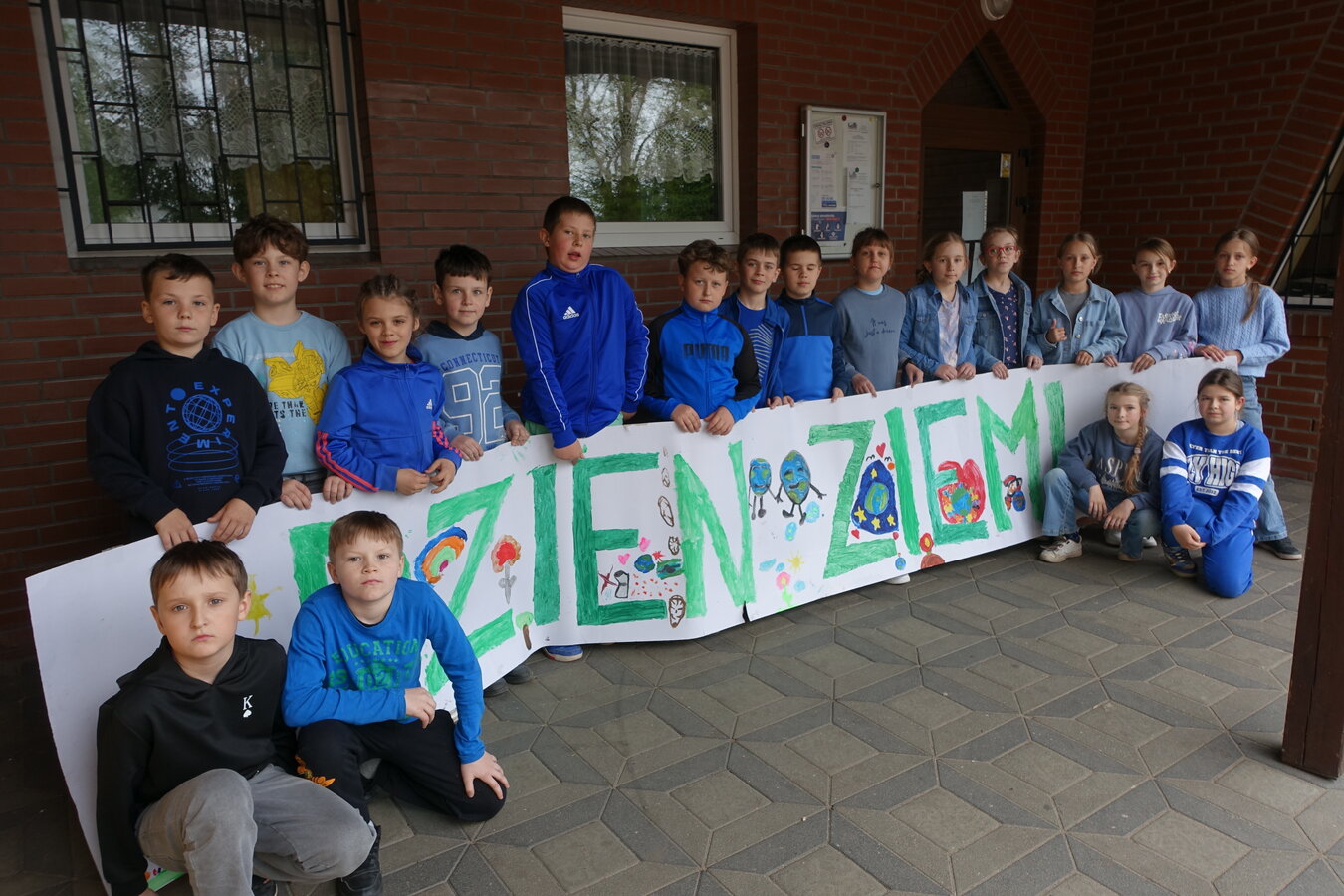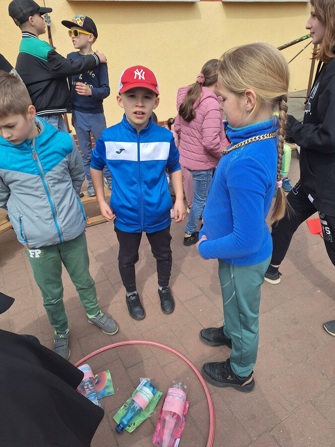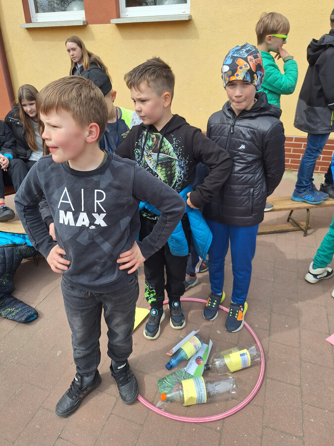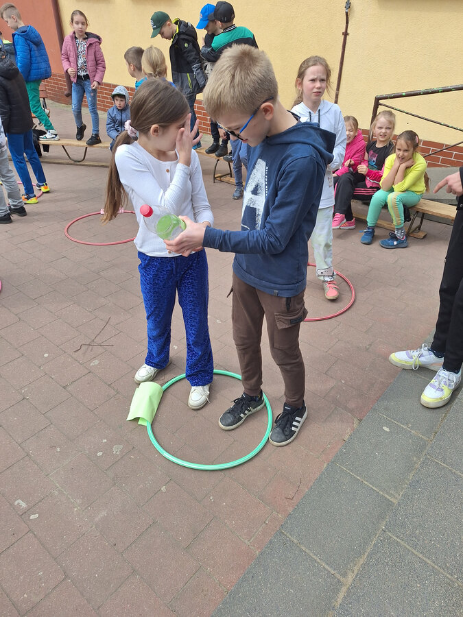 22 kwietnia obchodzony jest Dzień Ziemi. Tego dnia właśnie uczniowie naszej szkoły brali udział w różnych konkursach przyrodniczo - ekologicznych oraz sprawnościowych. Był test wiedzy ekologicznej, krzyżówki przyrodnicze, łamigłówki o lesie, pomysłowa główka, układanie puzzli, zabawy sprawnościowe, rzuty do celu oraz jedno z najciekawszych zadań czyli poszukiwanie na boisku butelek z zagadkami i szukanie ilustracji z rozwiązaniami na terenie szkoły. Zadań było wiele, więc każdy uczeń z klasy mógł spróbować swoich sił w różnych konkurencjach. Za wykonane zadanie przyznawane były pieniążki, więc wszyscy walczyli, aby nazbierać jak największą kwotę. W konkursie wiedzy ekologicznej zwyciężyli uczniowie klasy drugiej. W rozwiązywaniu krzyżówek i rzutach do celu największą kwotę zdobyła klasa siódma. Natomiast klasa pierwsza zdobyła, aż trzykrotnie największą sumę: w układaniu puzzli, torze sprawnościowym oraz szukaniu i rozwiązywaniu zagadek. Każda z klas otrzymała wcześniej wiersz o tematyce ekologicznej i ich zadaniem było przedstawienie go w formie rapu. Zwyciężyły dwie klasy, które wspaniale wykonały to zadanie - klasa druga i czwarta. Po podliczeniu wszystkich konkurencji najwięcej pieniędzy uzyskali uczniowie klasy pierwszej zdobywając kwotę - 1140 zł, za nimi klasa III zbierając 1120 zł i uczniowie klasy IV z kwotą 1050 zł. Zwycięzcy poszczególnych konkurencji otrzymali dyplomy.