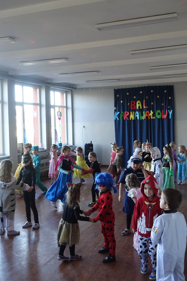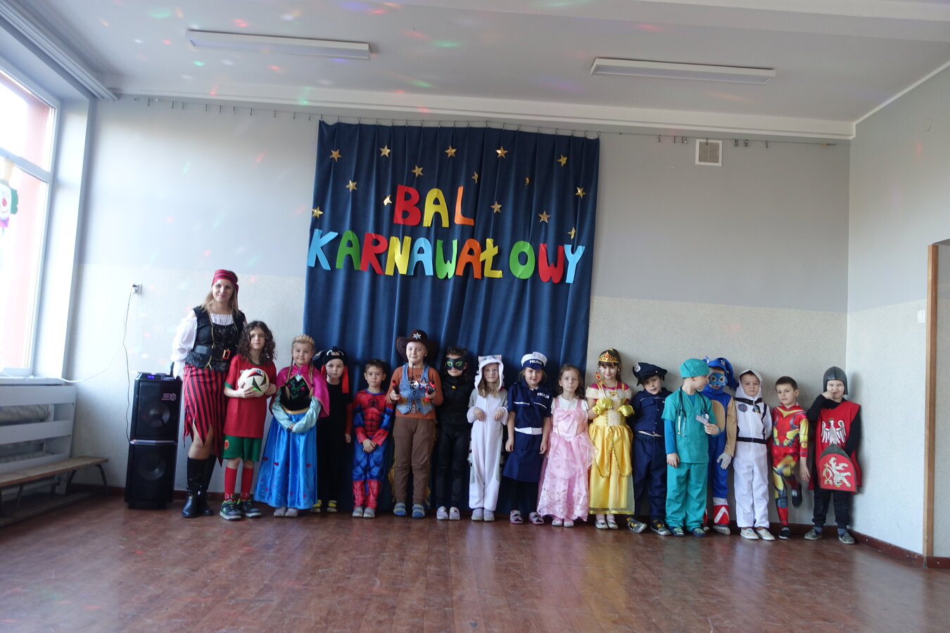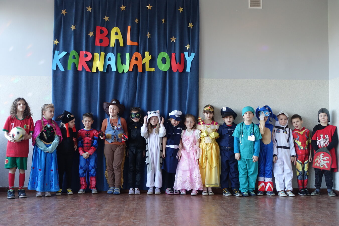 W piątek 17 stycznia wszystkie dzieci z oddziałów przedszkolnych spotkały się w świetlicy szkolnej aby wspólnie pobawić się przy muzyce. Na balu były księżniczki, wróżki, piraci, policjanci, strażacy, kotki, tygryski, lekarz, batman, spiderman, piłkarz, rycerz, oraz wiele innych postaci z bajek. Była prezentacja strojów, cudowna zabawa i tańce, a potem pamiątkowe zdjęcia i poczęstunek. Czekamy na następne bale w karnawale.