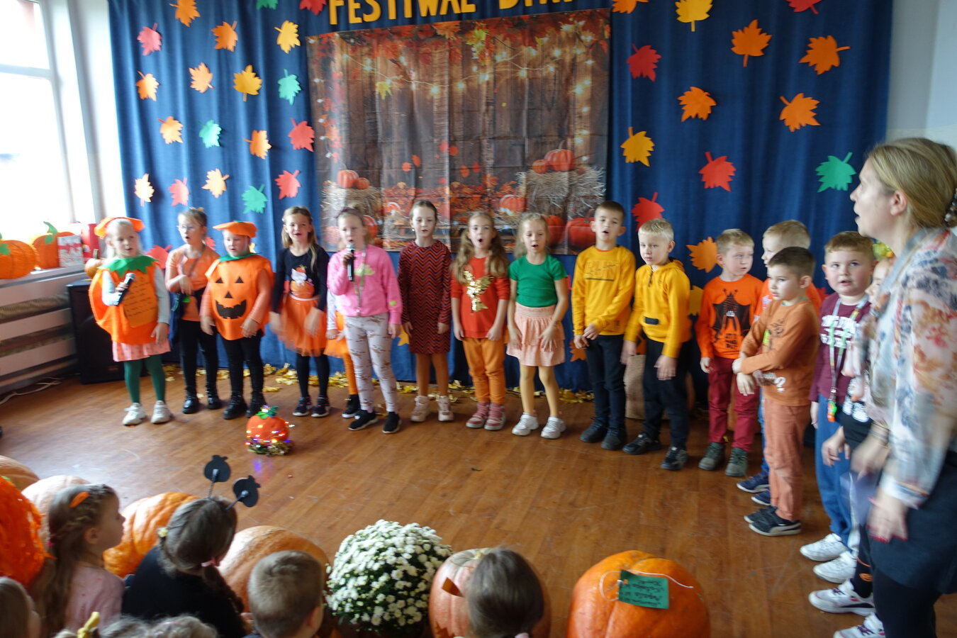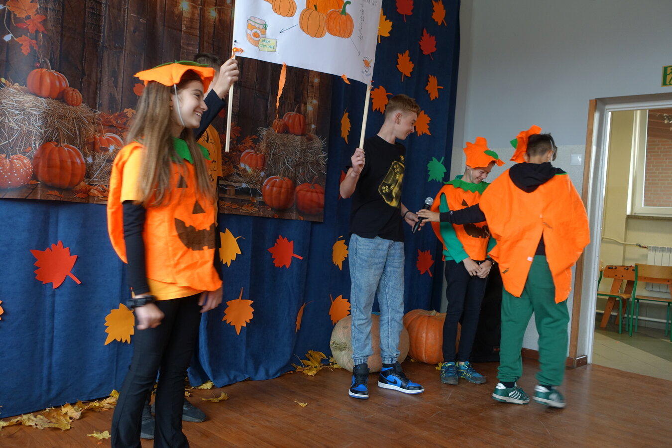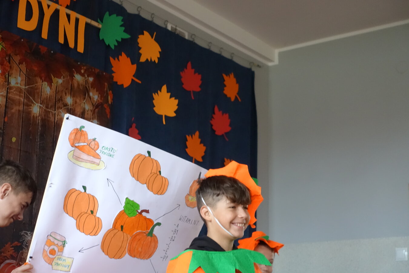 " Jesienna piosenka" dla klas I-III i utworzenie reklamy pt."Dynia - samo zdrowie", dla klas IV-VIII. Był też konkurs plastyczny dla przedszkolaków oraz konkurs na największą dynię.