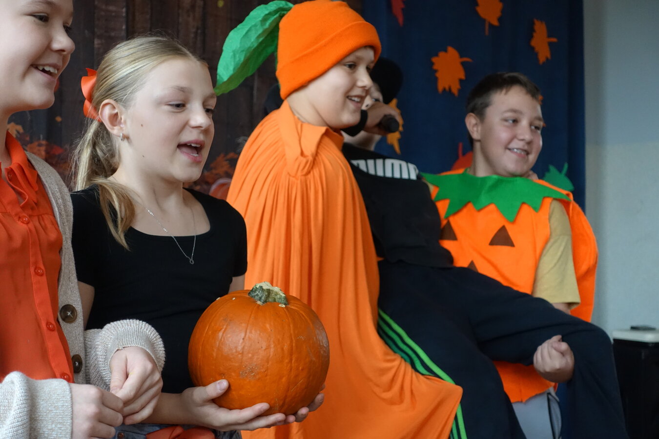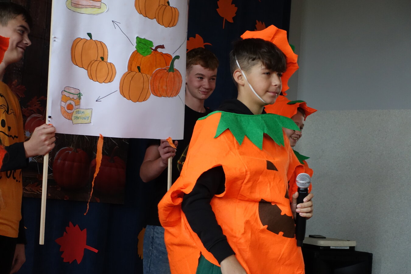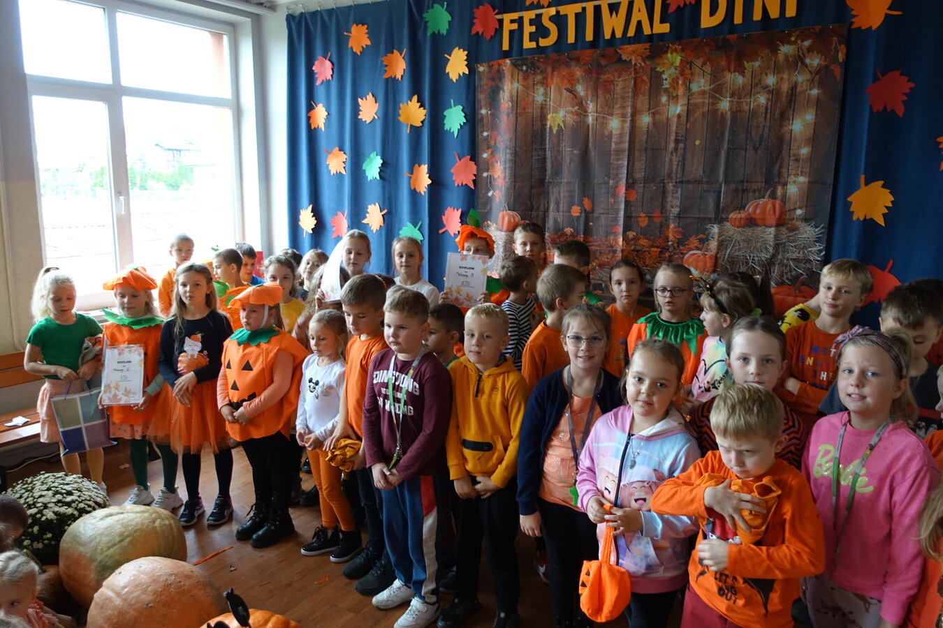 " Jesienna piosenka" dla klas I-III i utworzenie reklamy pt."Dynia - samo zdrowie", dla klas IV-VIII. Był też konkurs plastyczny dla przedszkolaków oraz konkurs na największą dynię.