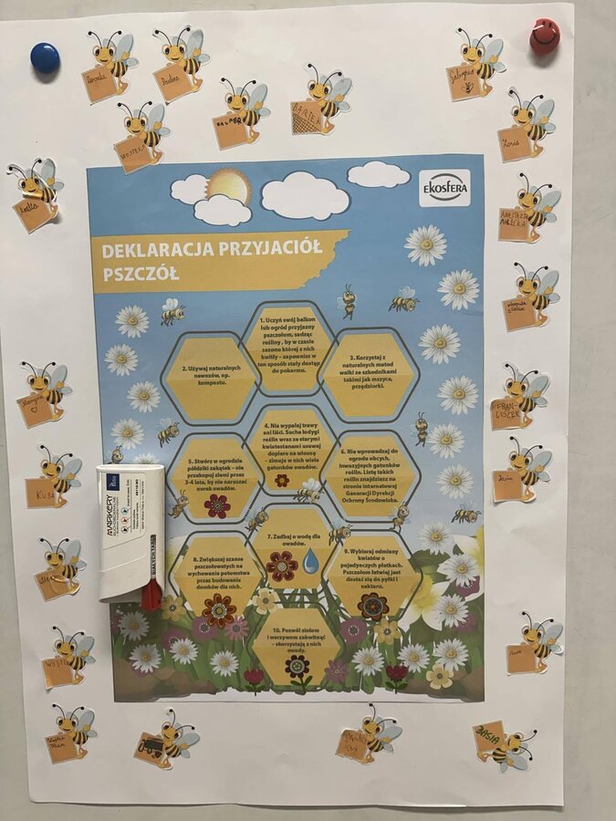 W środę 16 maja uczniowie klas 1-3 uczestniczyli w ekologicznych zajęciach warsztatowych prowadzonych przez panią Justynę Piwońską. Z okazji zbliżającego się Światowego Dnia Pszczół, który ma miejsce 21 maja, tematem były oczywiście pszczoły. Podczas zajęć poznaliśmy wiele ciekawych szczegółów z ich życia. Wiemy, że życie na naszej planecie bez tych owadów jest niemożliwe. Wiemy, co im zagraża i jak pomóc pszczółkom. Poznaliśmy wiele ekologicznych sposobów na ochronę roślin. Mogliśmy z bliska zobaczyć wiele rzeczy potrzebnych w pracy pszczelarzy. W drugiej części zajęć wykonaliśmy w grupach kwiatowe bomby, a na koniec zajęć złożyliśmy deklarację, że będziemy przyjaciółmi tych niezwykle potrzebnych i pożytecznych owadów.