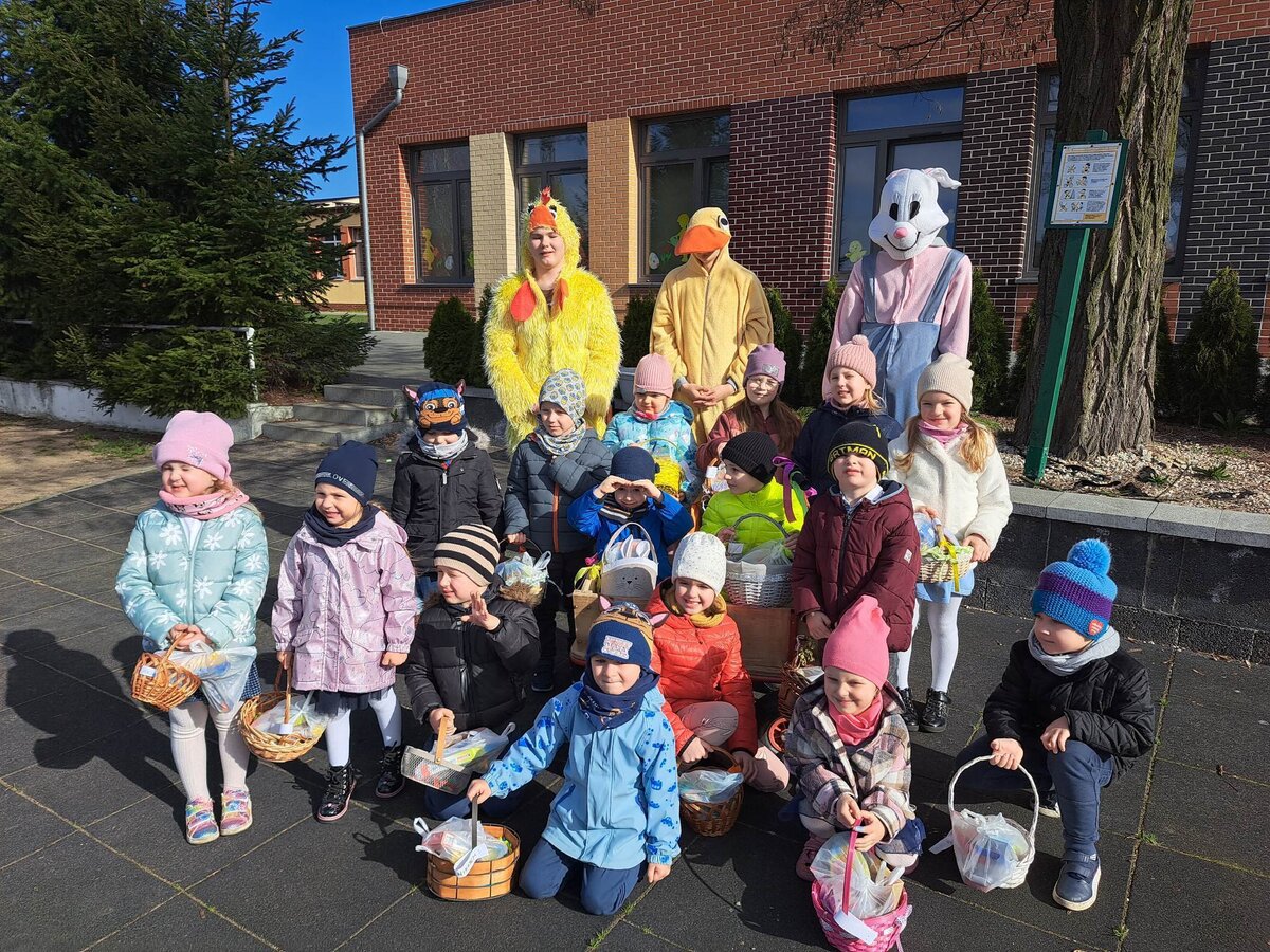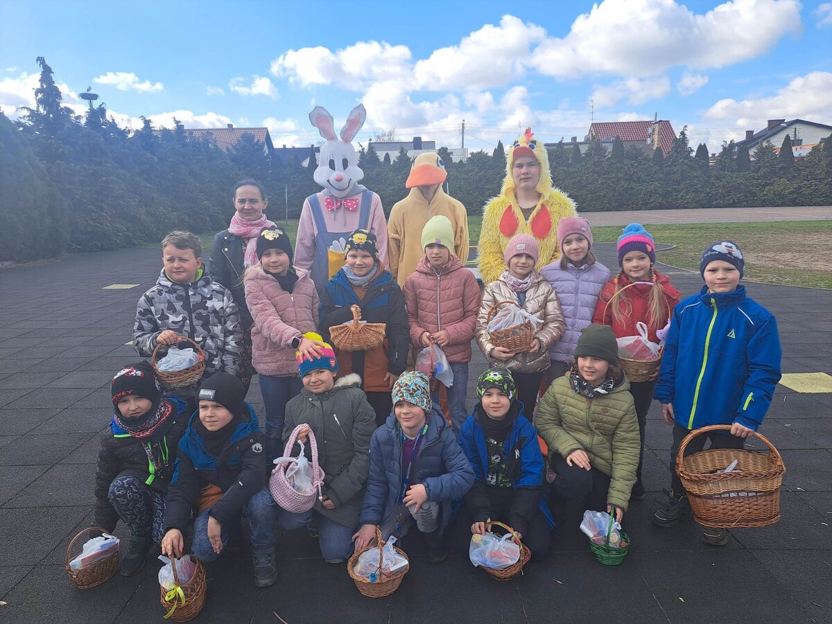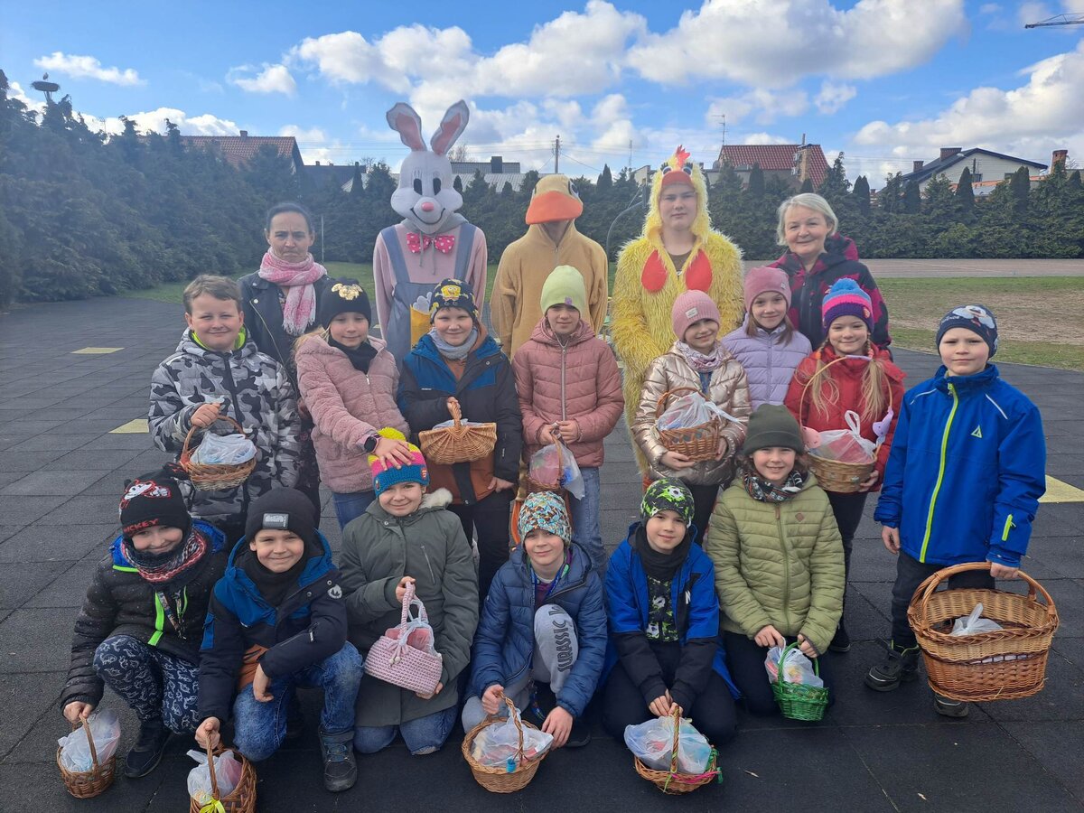 Radości było co niemiara, gdy wszystkie dzieci zobaczyły w drzwiach swoich sal tak nieoczekiwanego gościa. Zajączek w towarzystwie pomocników odwiedzał wszystkie klasy i częstował uczniów słodkościami, a nauczycielom życzył Wesołych Świąt. W szkole zapanowała świąteczna atmosfera, a to dzięki Radzie Rodziców. Był to wspaniały, pełen wrażeń dzień.
