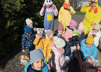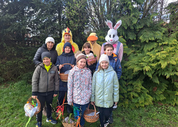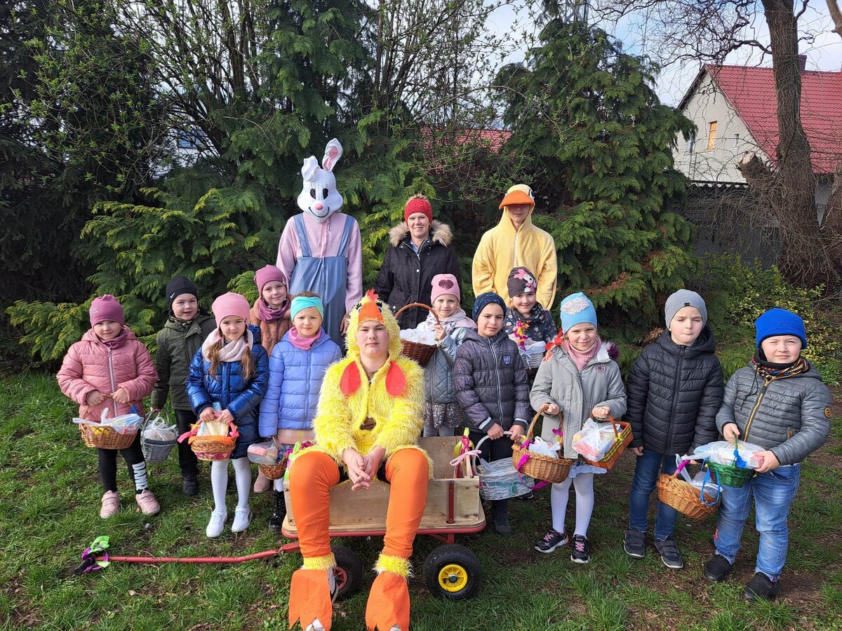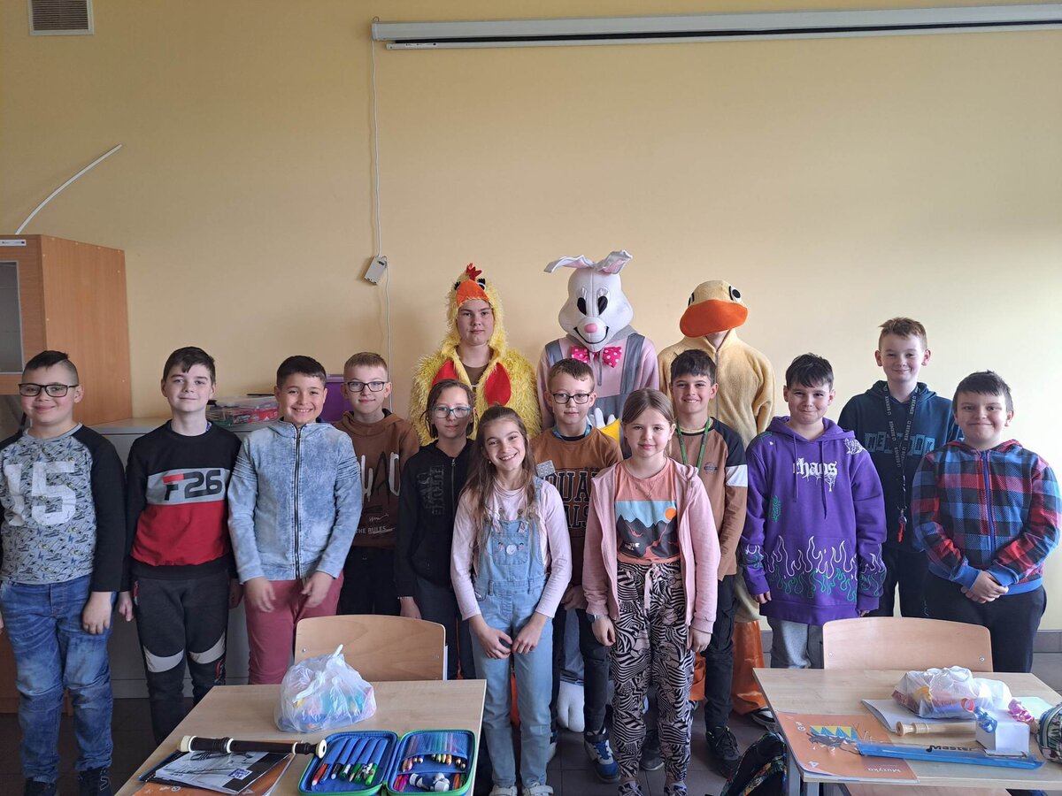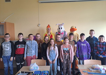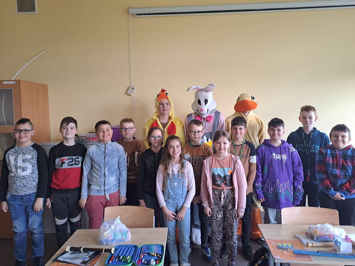Radości było co niemiara, gdy wszystkie dzieci zobaczyły w drzwiach swoich sal tak nieoczekiwanego gościa. Zajączek w towarzystwie pomocników odwiedzał wszystkie klasy i częstował uczniów słodkościami, a nauczycielom życzył Wesołych Świąt. W szkole zapanowała świąteczna atmosfera, a to dzięki Radzie Rodziców. Był to wspaniały, pełen wrażeń dzień.