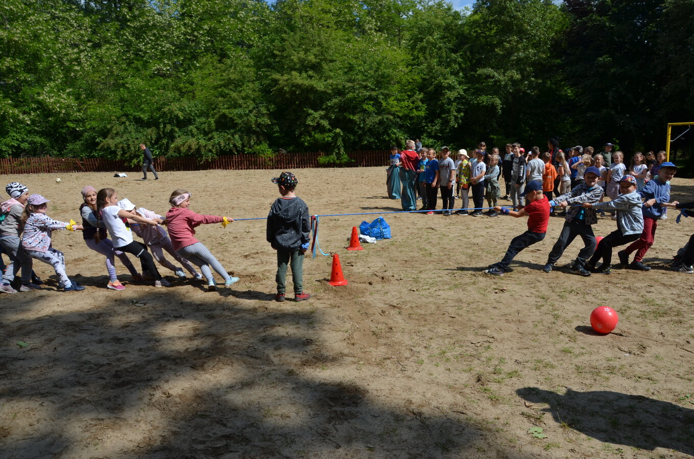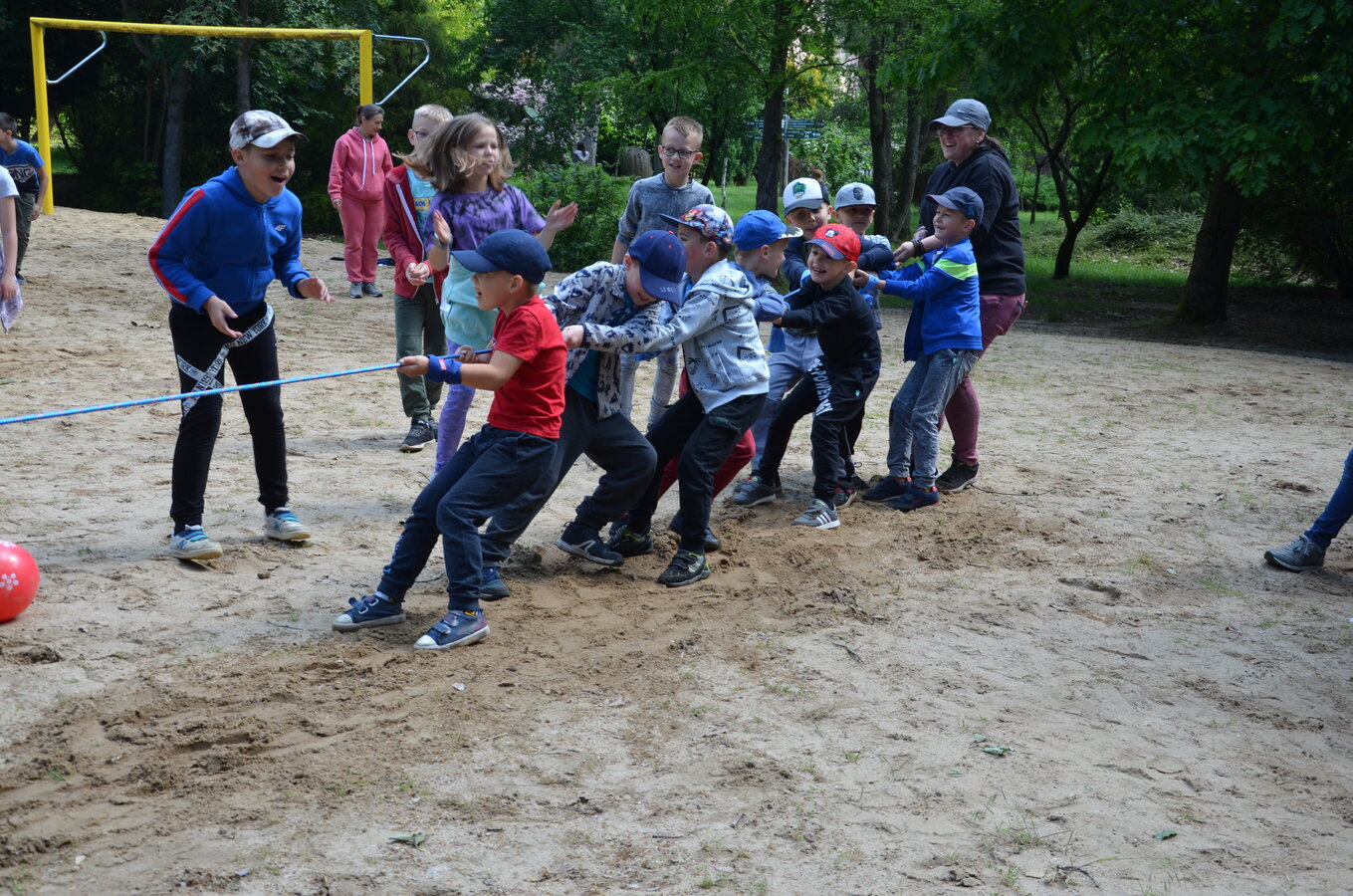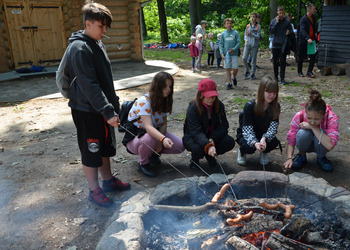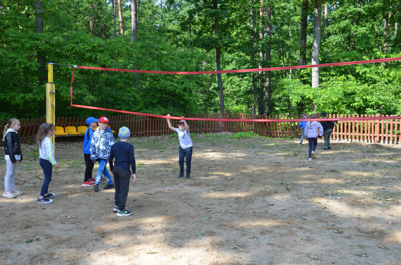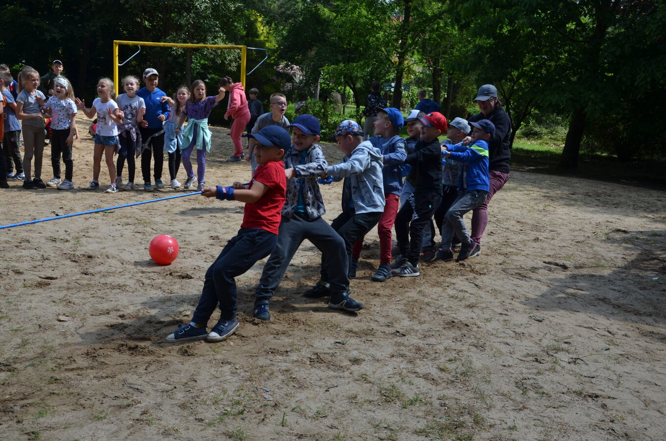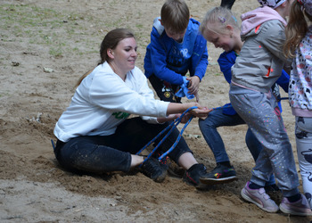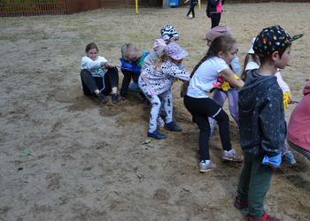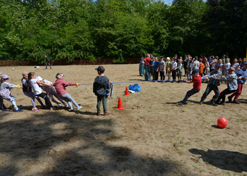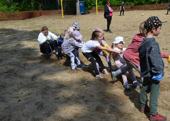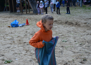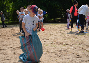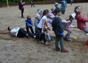 Dzieci z oddziałów przedszkolnych oraz uczniowie klas I-III miały okazję pospacerować po lesie oraz wziąć udział w grach i zabawach zorganizowanych przez opiekunów grup. Natomiast uczniowie klas 4 – 8 brali udział w grach terenowych. Klasa 4 i 5 uczestniczyła w grze „Wyspa skarbów”. Każda klasa miała za zadanie zakopać skarb w swojej bazie a następnie wykonać mapę z trasą dotarcia do tego skarbu i przekazać ją drużynie przeciwnej.