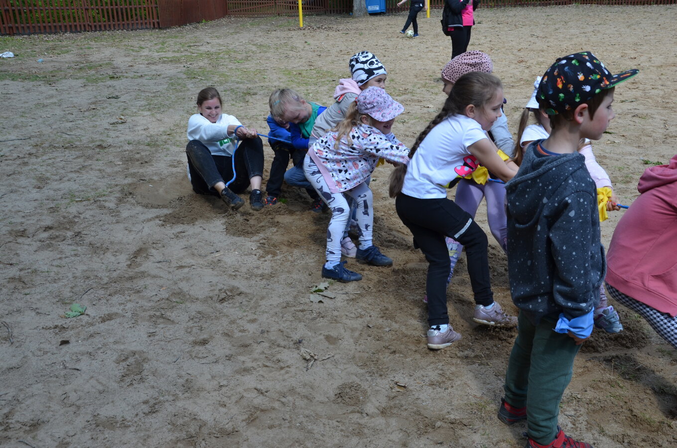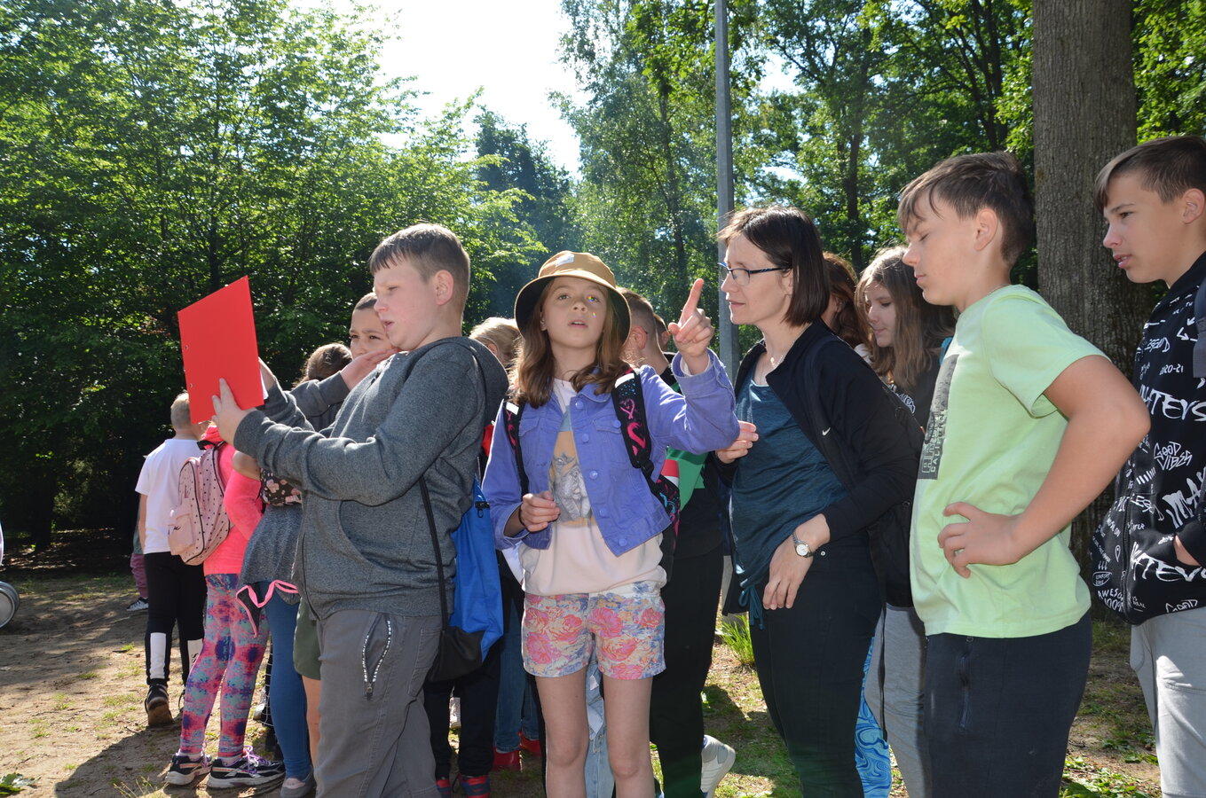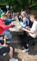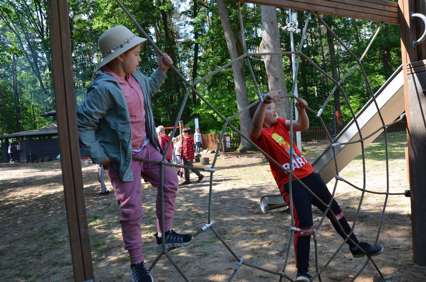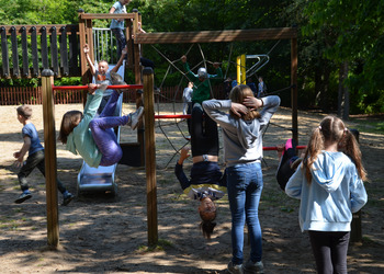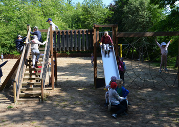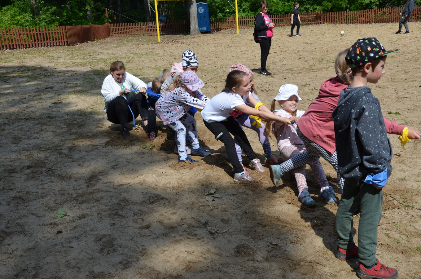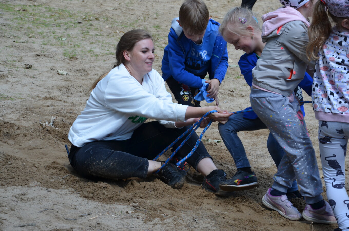 Dzieci z oddziałów przedszkolnych oraz uczniowie klas I-III miały okazję pospacerować po lesie oraz wziąć udział w grach i zabawach zorganizowanych przez opiekunów grup. Natomiast uczniowie klas 4 – 8 brali udział w grach terenowych. Klasa 4 i 5 uczestniczyła w grze „Wyspa skarbów”. Każda klasa miała za zadanie zakopać skarb w swojej bazie a następnie wykonać mapę z trasą dotarcia do tego skarbu i przekazać ją drużynie przeciwnej.