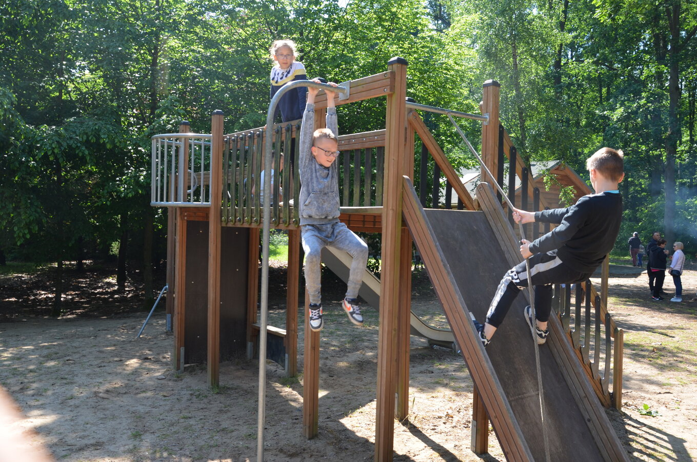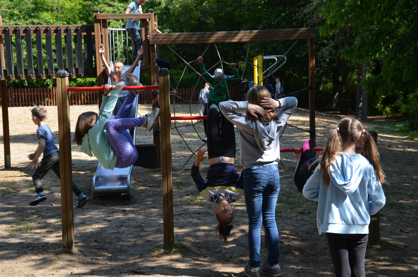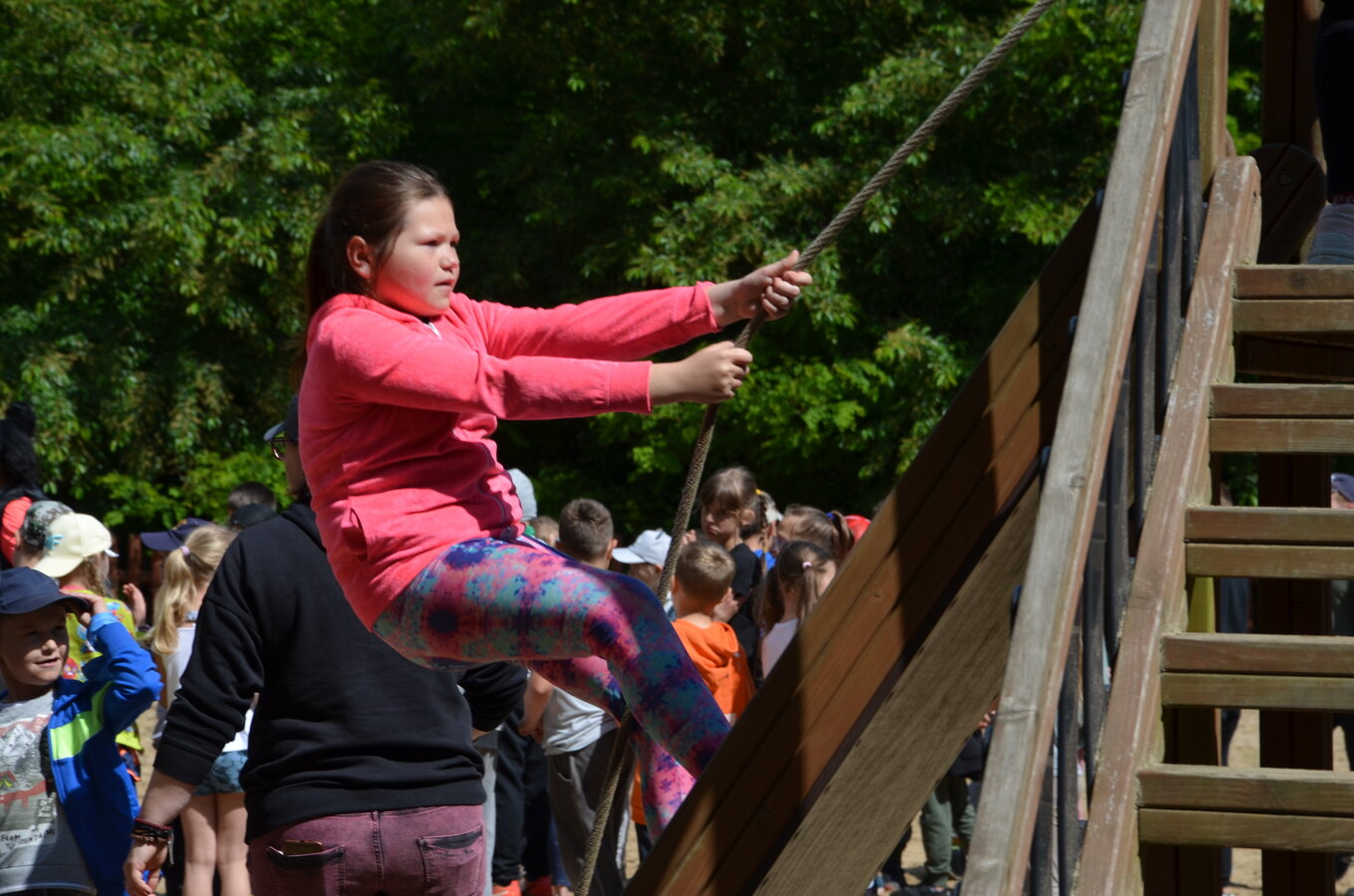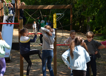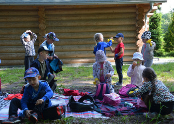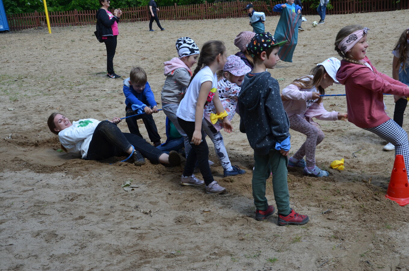 Dzieci z oddziałów przedszkolnych oraz uczniowie klas I-III miały okazję pospacerować po lesie oraz wziąć udział w grach i zabawach zorganizowanych przez opiekunów grup. Natomiast uczniowie klas 4 – 8 brali udział w grach terenowych. Klasa 4 i 5 uczestniczyła w grze „Wyspa skarbów”. Każda klasa miała za zadanie zakopać skarb w swojej bazie a następnie wykonać mapę z trasą dotarcia do tego skarbu i przekazać ją drużynie przeciwnej.