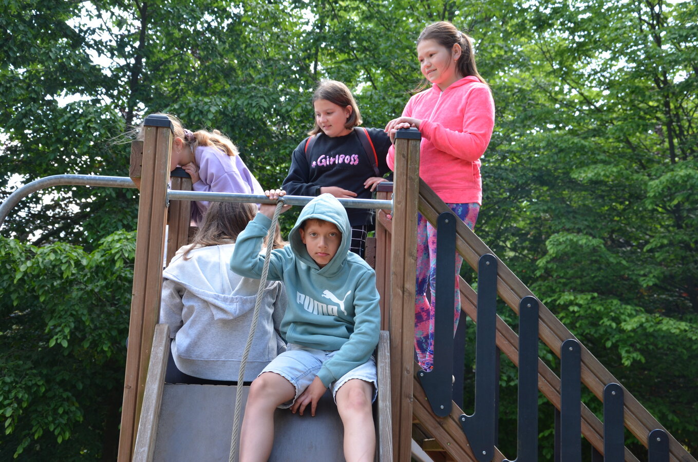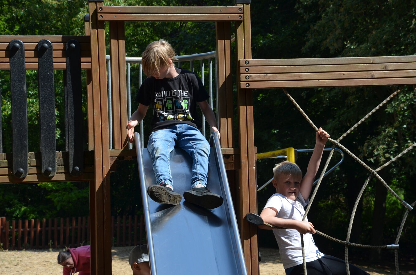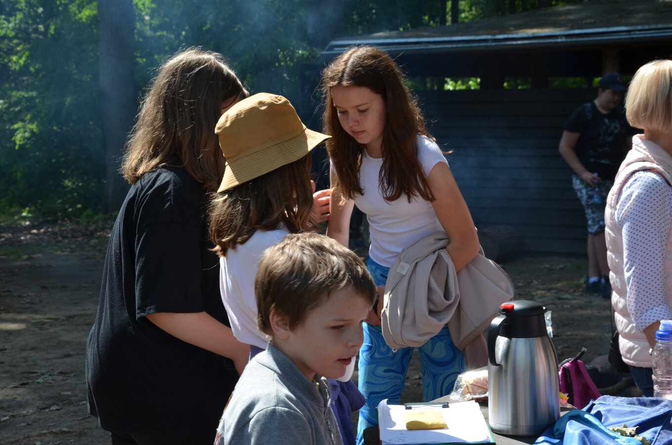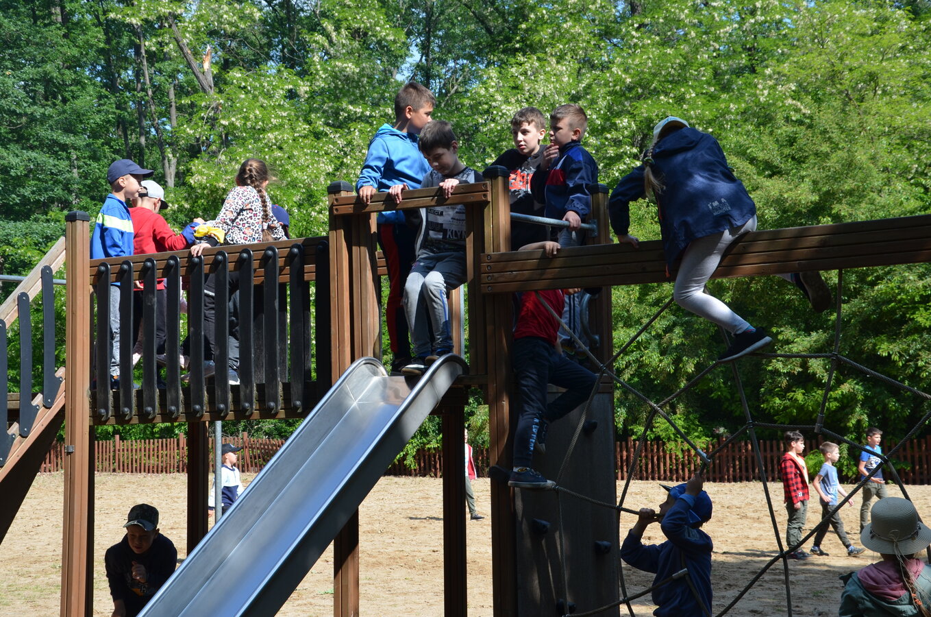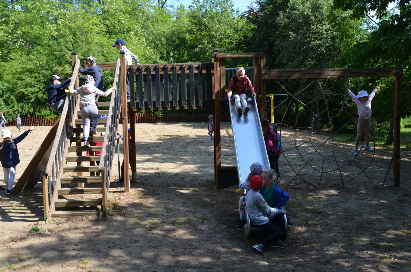 Dzieci z oddziałów przedszkolnych oraz uczniowie klas I-III miały okazję pospacerować po lesie oraz wziąć udział w grach i zabawach zorganizowanych przez opiekunów grup. Natomiast uczniowie klas 4 – 8 brali udział w grach terenowych. Klasa 4 i 5 uczestniczyła w grze „Wyspa skarbów”. Każda klasa miała za zadanie zakopać skarb w swojej bazie a następnie wykonać mapę z trasą dotarcia do tego skarbu i przekazać ją drużynie przeciwnej.