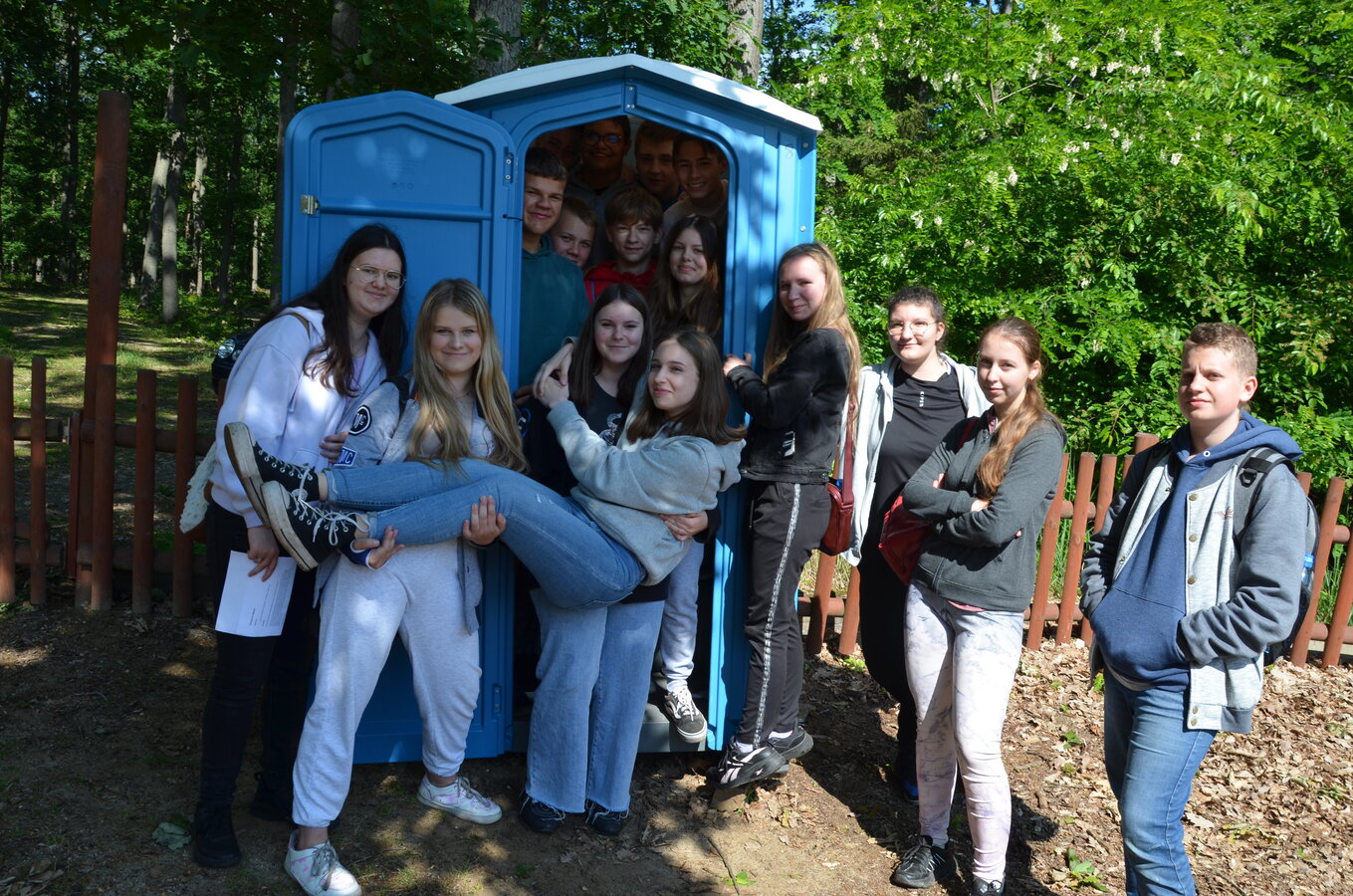 Najstarsi uczniowie szkoły, czyli klasy 7 i 8 brali udział w grze „Śmieszne zdjęcie”. Celem było zrobienie jak najciekawszych zdjęć odpowiadającym tematyce np. „Wykonajcie zdjęcie jednego z was z jak największą ilością szyszek na głowie”, „aresztowanie jednego z Was” lub „wymarzone oświadczyny”. Uczniowie podczas wykonywania zdjęć wykazali się dużą kreatywnością i ciekawym podejściem do zadanego tematu.