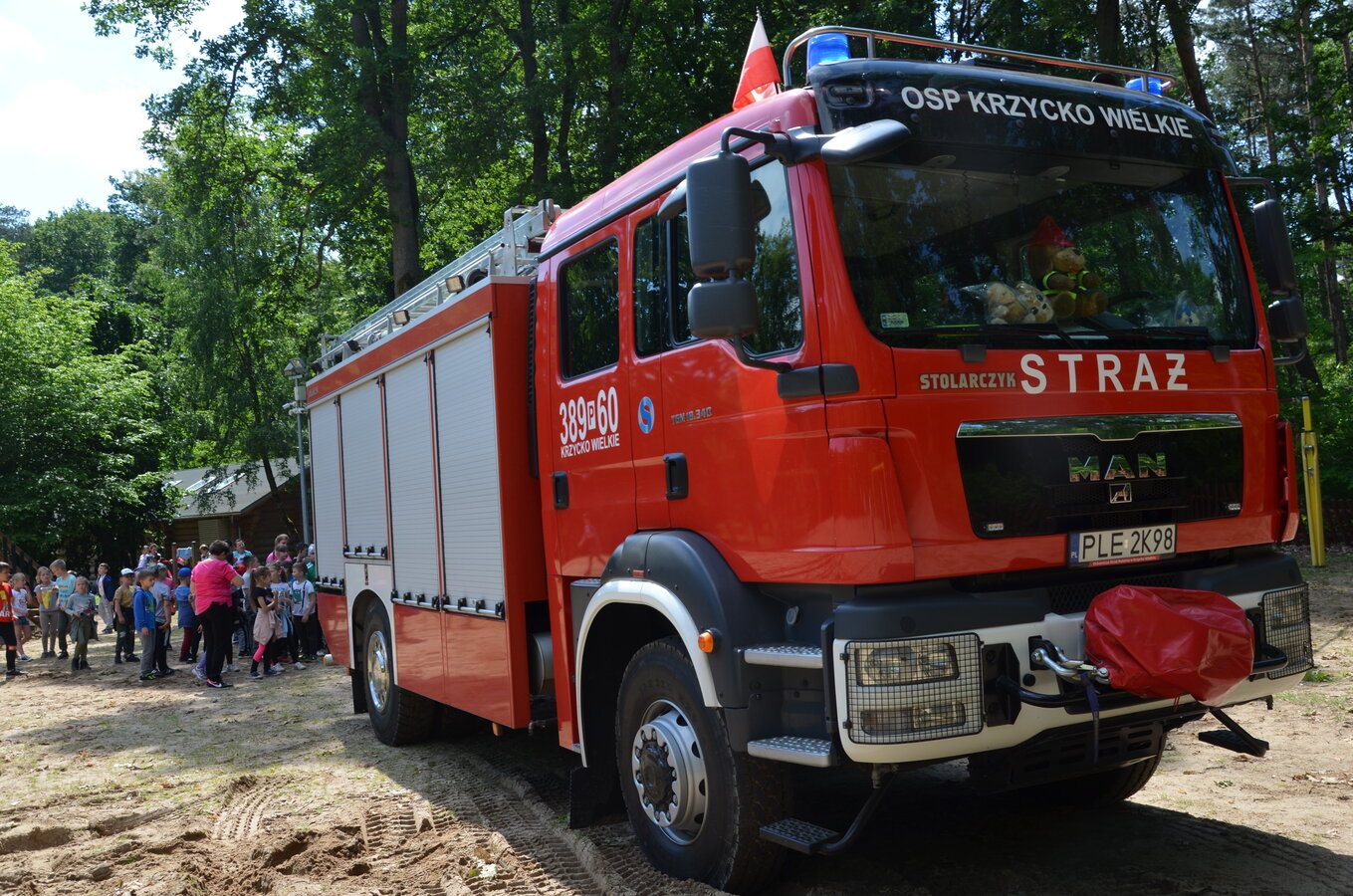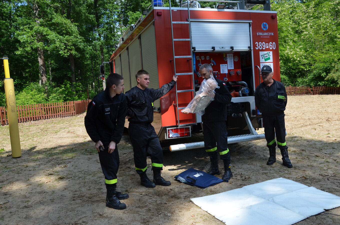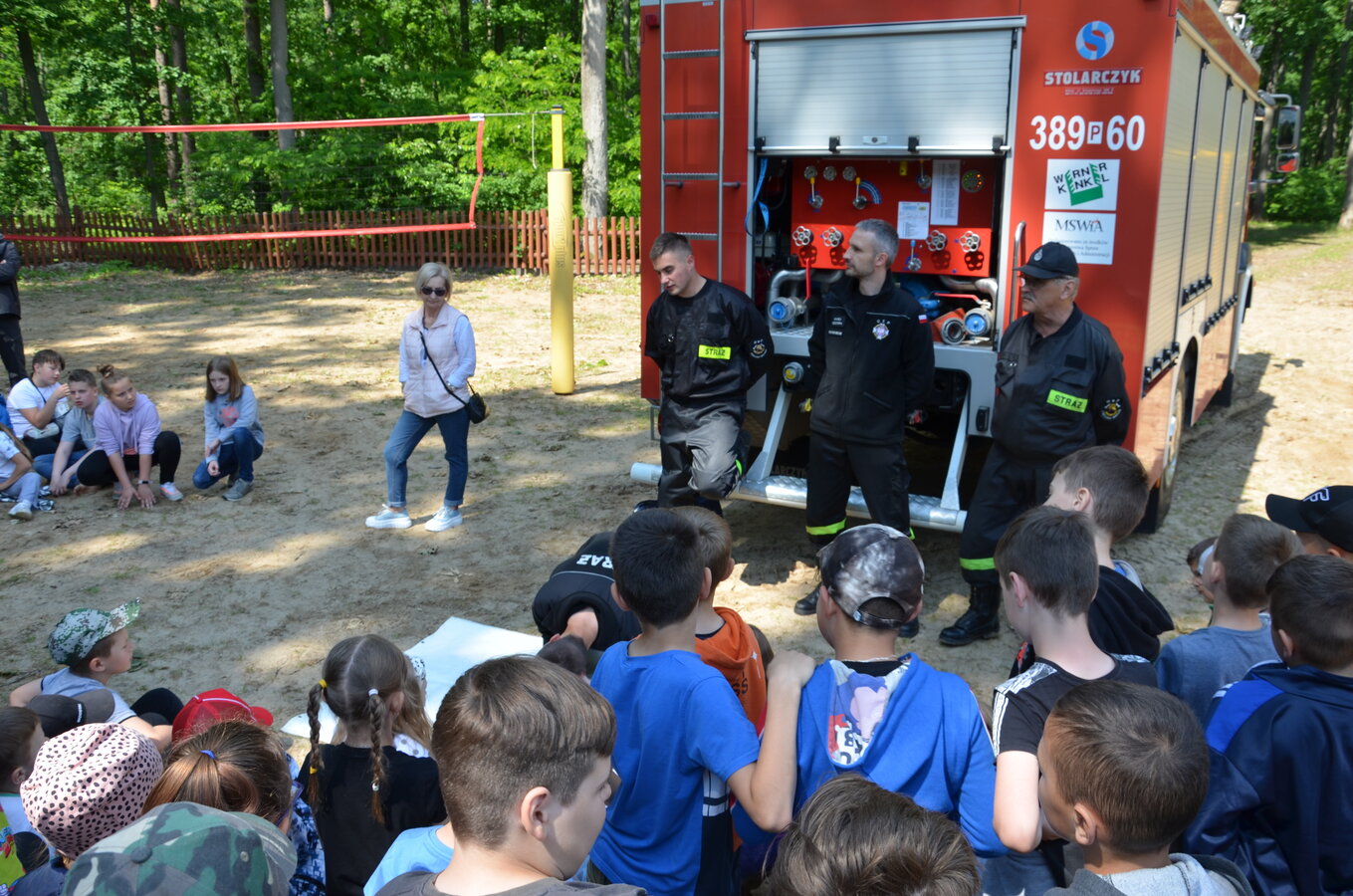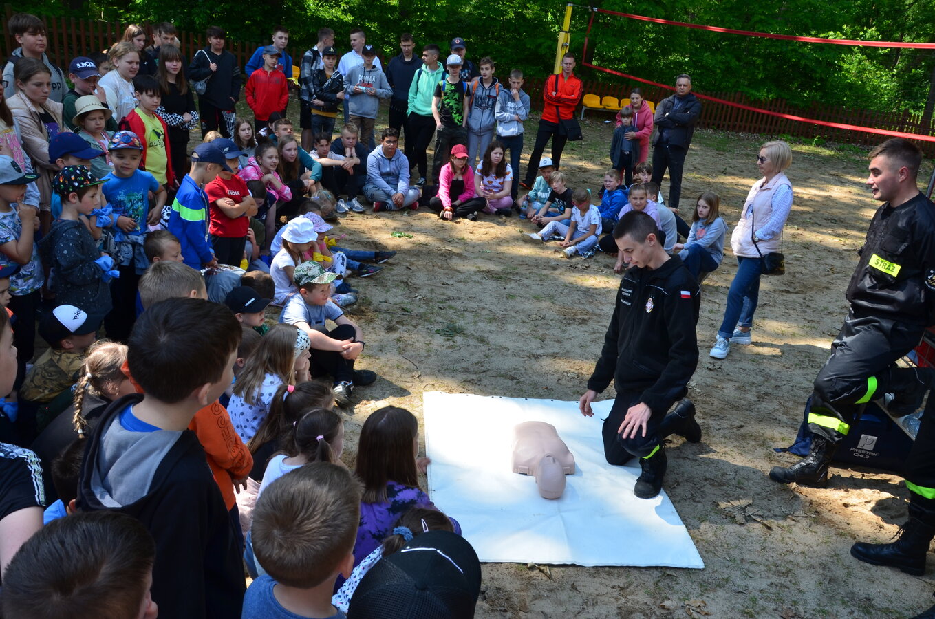 Ostatnim punktem zajęć terenowych była wizyta strażaków z OSP Krzycko Wielkie. Najmłodsi uczniowie mieli okazję obejrzeć z bliska wóz strażacki. Dla starszych uczniów strażacy przygotowali pokaz udzielania pierwszej pomocy przedmedycznej oraz odpowiadali na zadawane pytania.