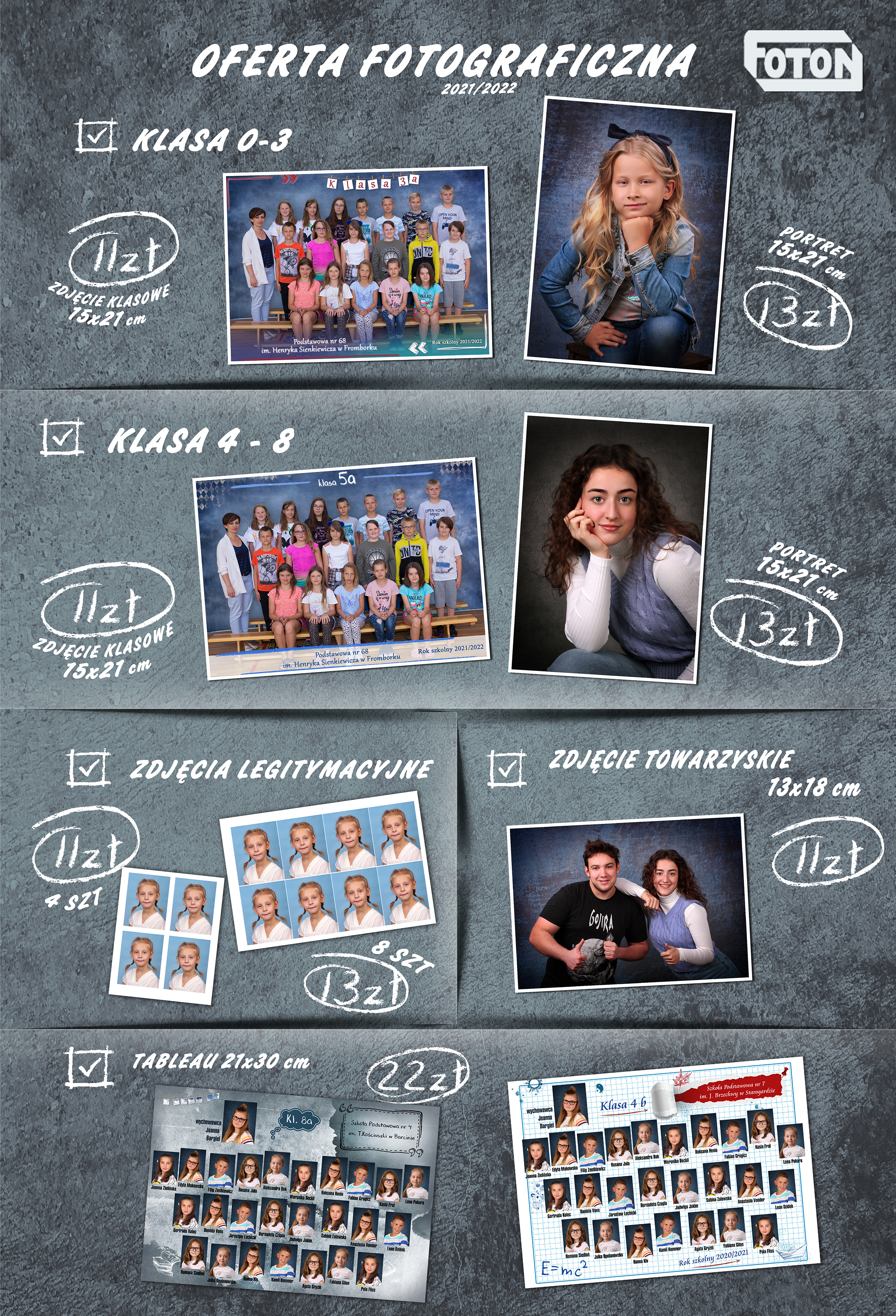 W dniu 16 maja 2022 r. tj. w poniedziałek do szkoły po przerwie spowodowanej pandemią COVID-19 przyjedzie fotograf z firmy FOTON.