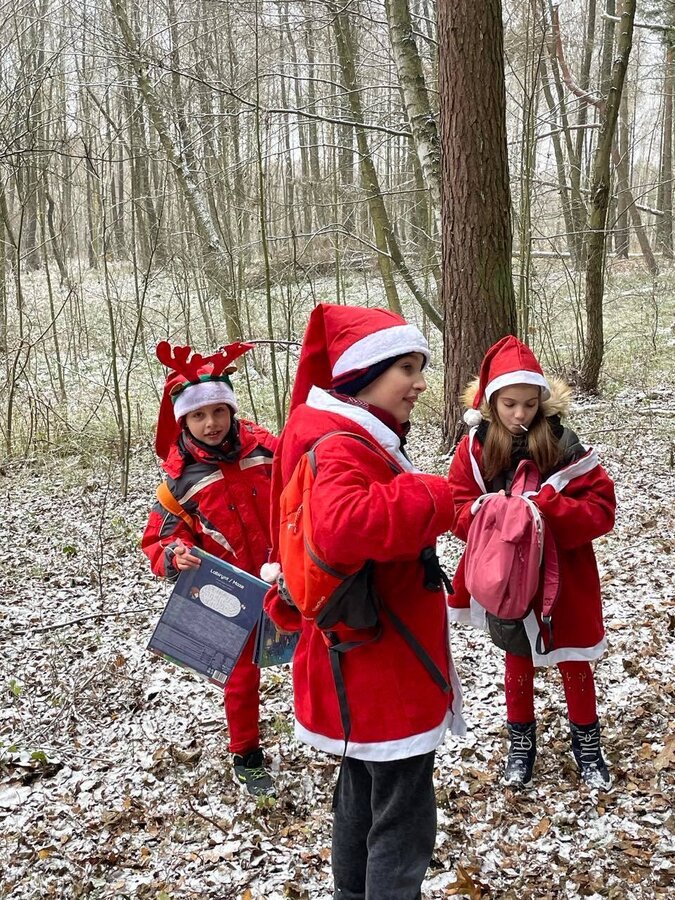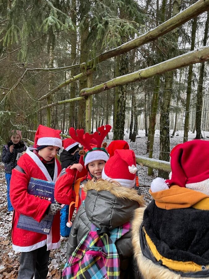3 grudnia uczniowie naszej szkoły uczestniczyli w rajdzie organizowanym przez PTTK Łaziki. Tym razem wędrowaliśmy na Koczury w poszukiwaniu Mikołaja. W dobrych humorach, pełni energii szybko stanęliśmy na mecie rajdu, gdzie czekało na nas ognisko, pyszne kiełbaski, ciepła herbata i mikołajkowa atmosfera. Odwiedziliśmy zwierzęta mieszkające przy leśniczówce.