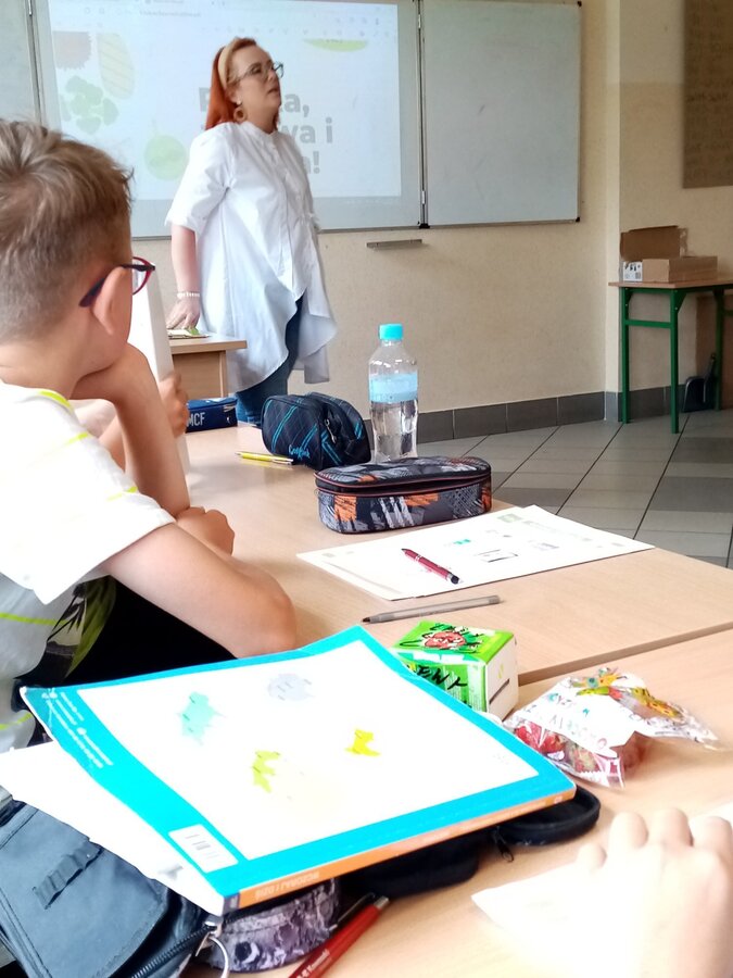 13 czerwca na zajęciach z wychowawcą klasa 5 gościła panią dietetyczkę Kingę Witczak. Uczniowie przypomnieli sobie zasady zdrowego odżywiania. Dowiedzieli się, dlaczego jedzenie śniadania w domu jest ważne, jak powinien wyglądać zdrowy posiłek oraz dlaczego powinno się unikać słodyczy i słodzonych napojów. Liczymy na to, że spotkanie rozbudzi refleksję wśród dzieci i rodziców nad nawykami żywieniowymi. Dziękujemy i serdecznie pozdrawiamy prelegentkę !