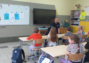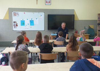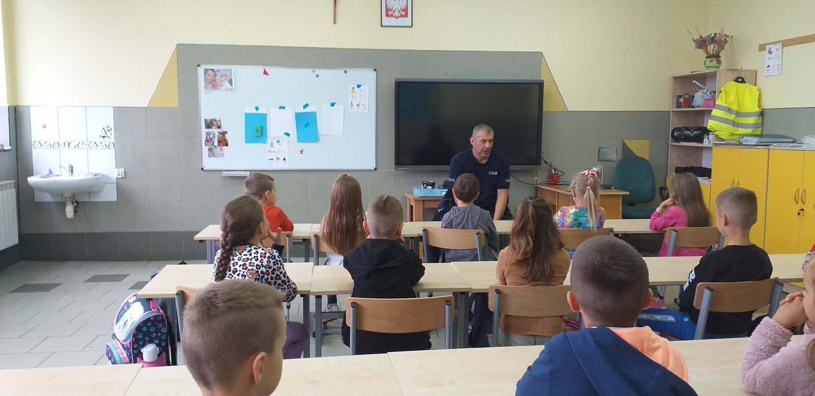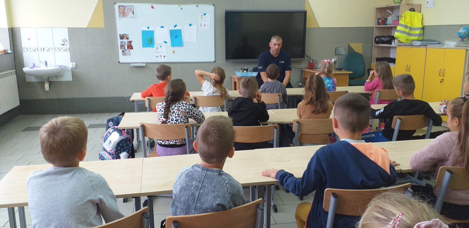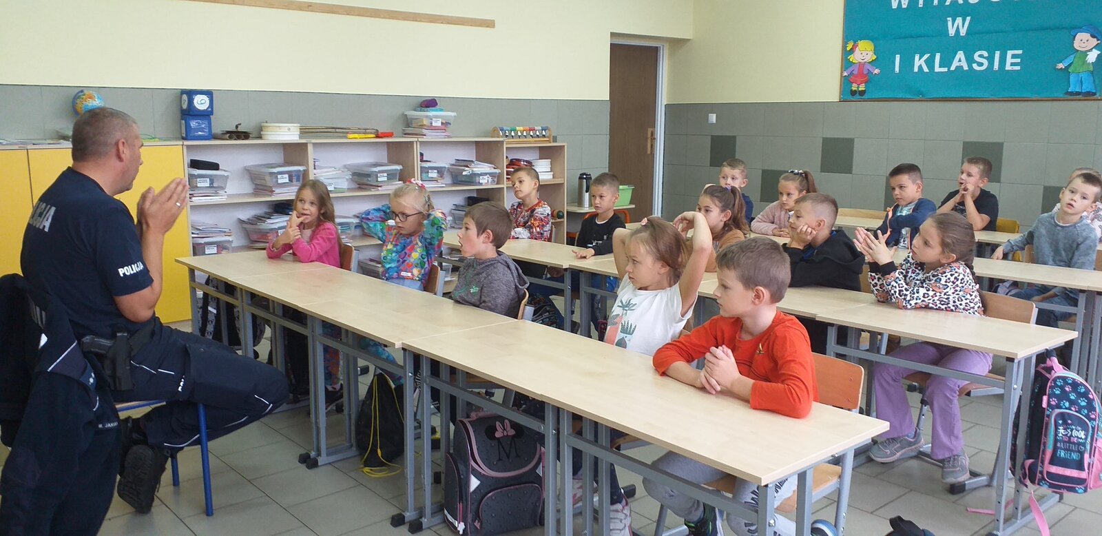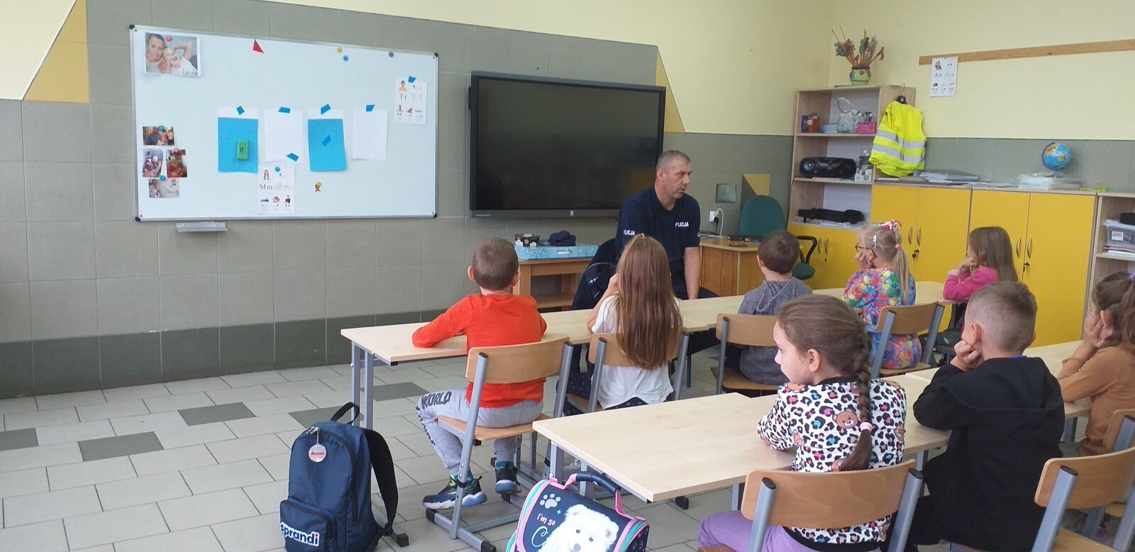 Co roku panowie policjanci odwiedzają klasę 1. I w tym roku również tak się wydarzyło. Była pogadanka dotycząca bezpieczeństwa i zachowania się w trudnych sytuacjach. Czekamy na kolejną wizytę.