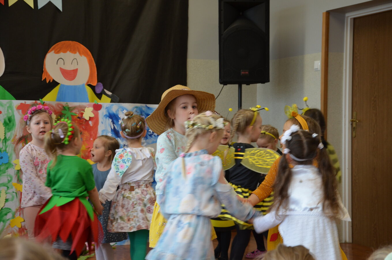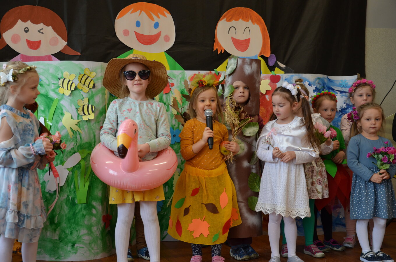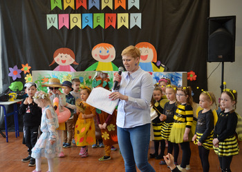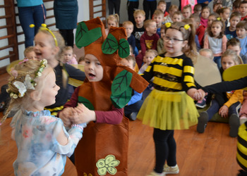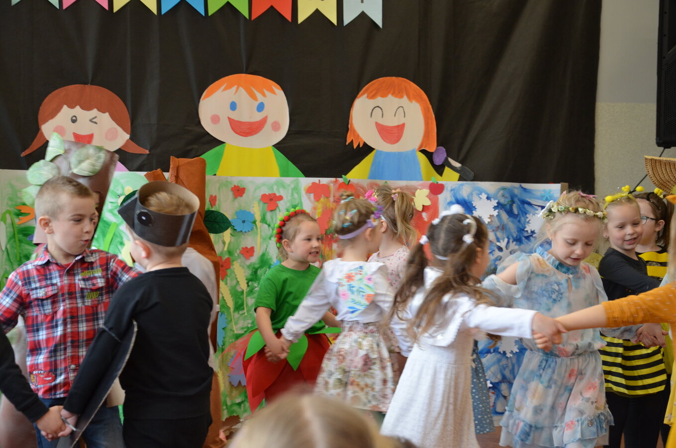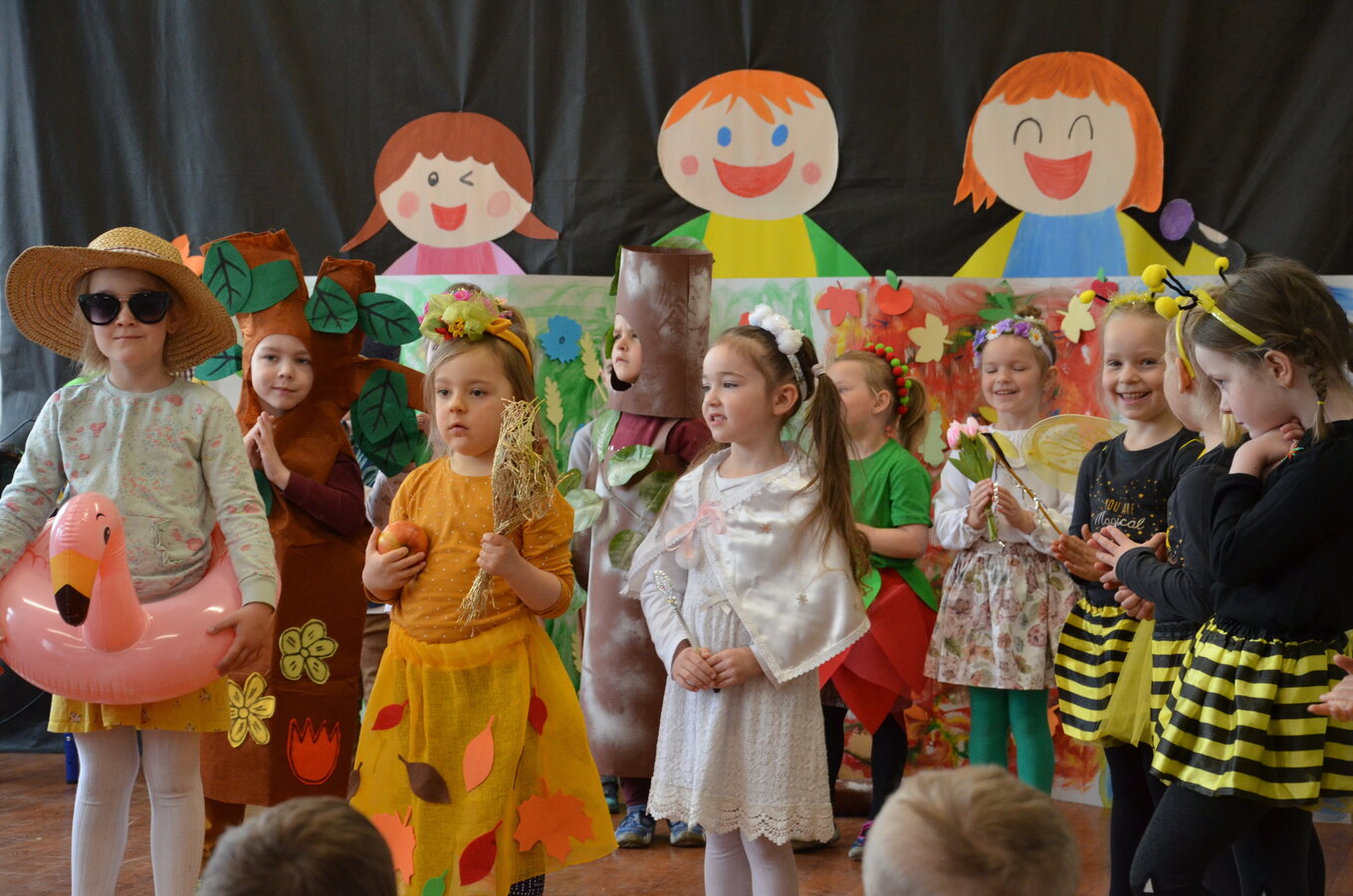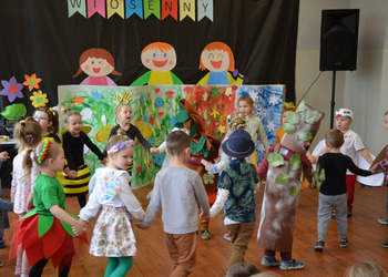 Dzieci z Oddziału Przedszkolnego z grupy "SÓWKI", przygotowały dla uczniów i przedszkolaków przedstawienie pt." Cztery pory roku - Wiosna". Przedszkolaki zaprezentowały swoje zdolności artystyczne w tańcu i w piosence. Wartość przedstawienia wzbogaciły piękne stroje, które przygotowali rodzice. Dzieci zostały nagrodzone dużymi brawami!.