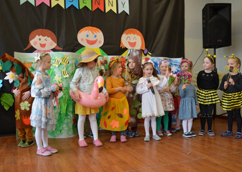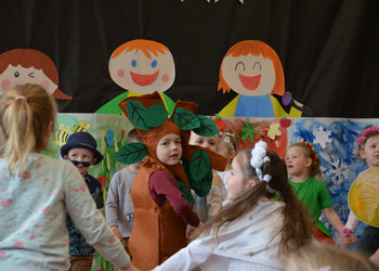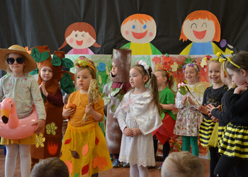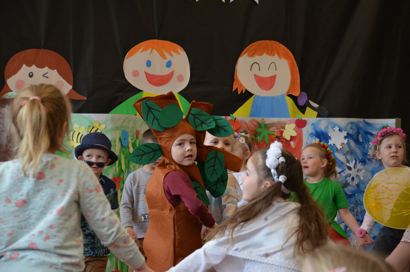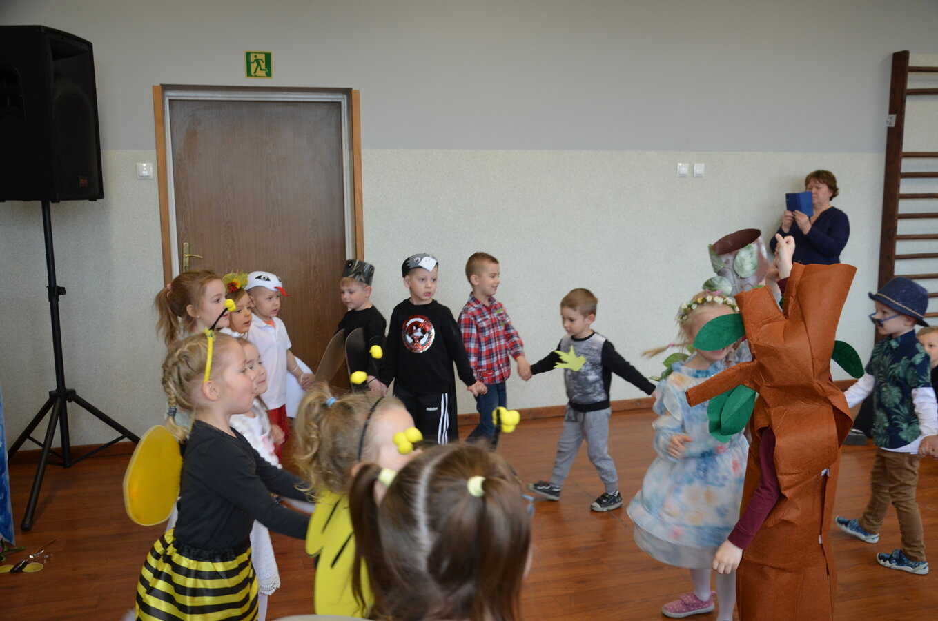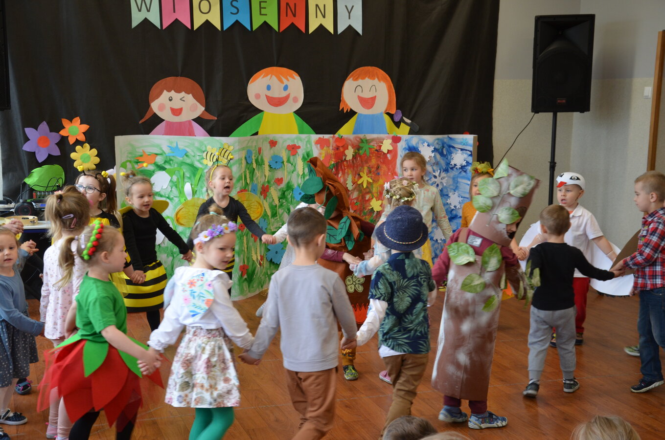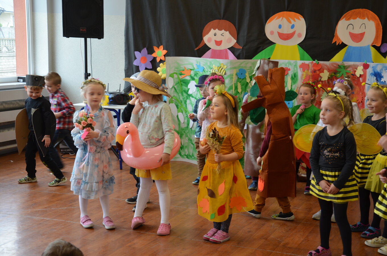 Dzieci z Oddziału Przedszkolnego z grupy "SÓWKI", przygotowały dla uczniów i przedszkolaków przedstawienie pt." Cztery pory roku - Wiosna". Przedszkolaki zaprezentowały swoje zdolności artystyczne w tańcu i w piosence. Wartość przedstawienia wzbogaciły piękne stroje, które przygotowali rodzice. Dzieci zostały nagrodzone dużymi brawami!.