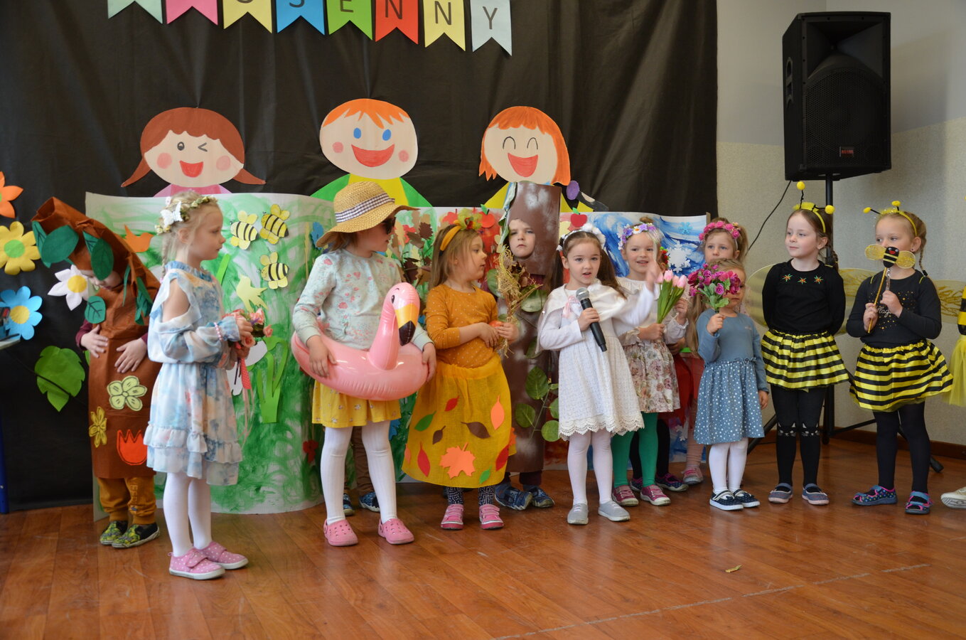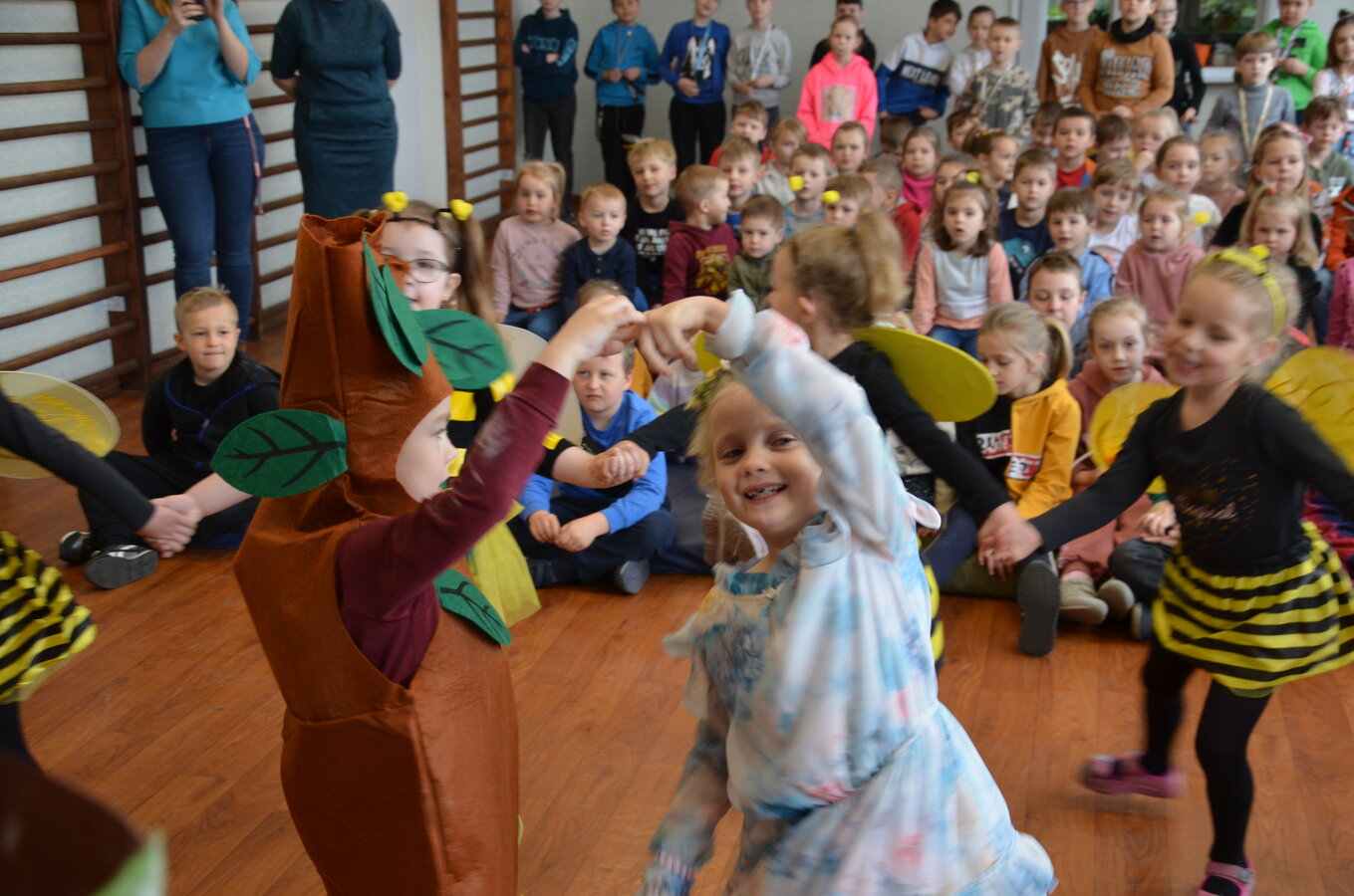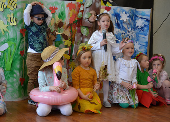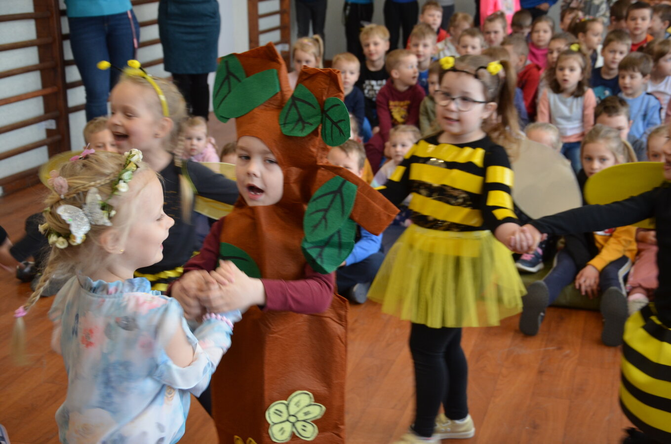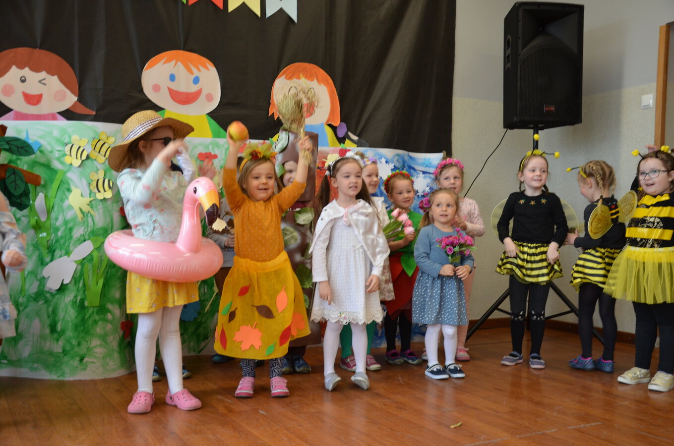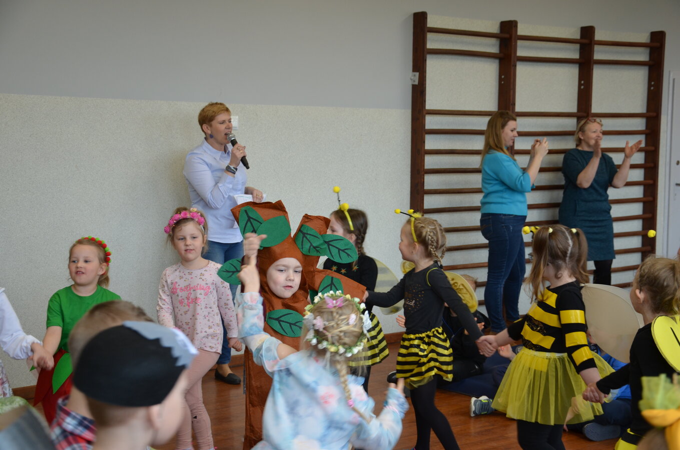 Dzieci z Oddziału Przedszkolnego z grupy "SÓWKI", przygotowały dla uczniów i przedszkolaków przedstawienie pt." Cztery pory roku - Wiosna". Przedszkolaki zaprezentowały swoje zdolności artystyczne w tańcu i w piosence. Wartość przedstawienia wzbogaciły piękne stroje, które przygotowali rodzice. Dzieci zostały nagrodzone dużymi brawami!.