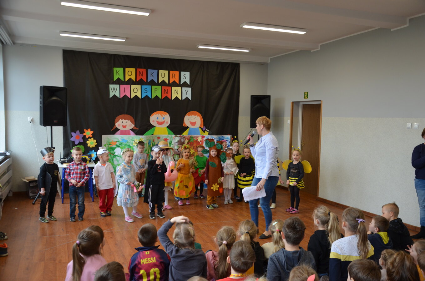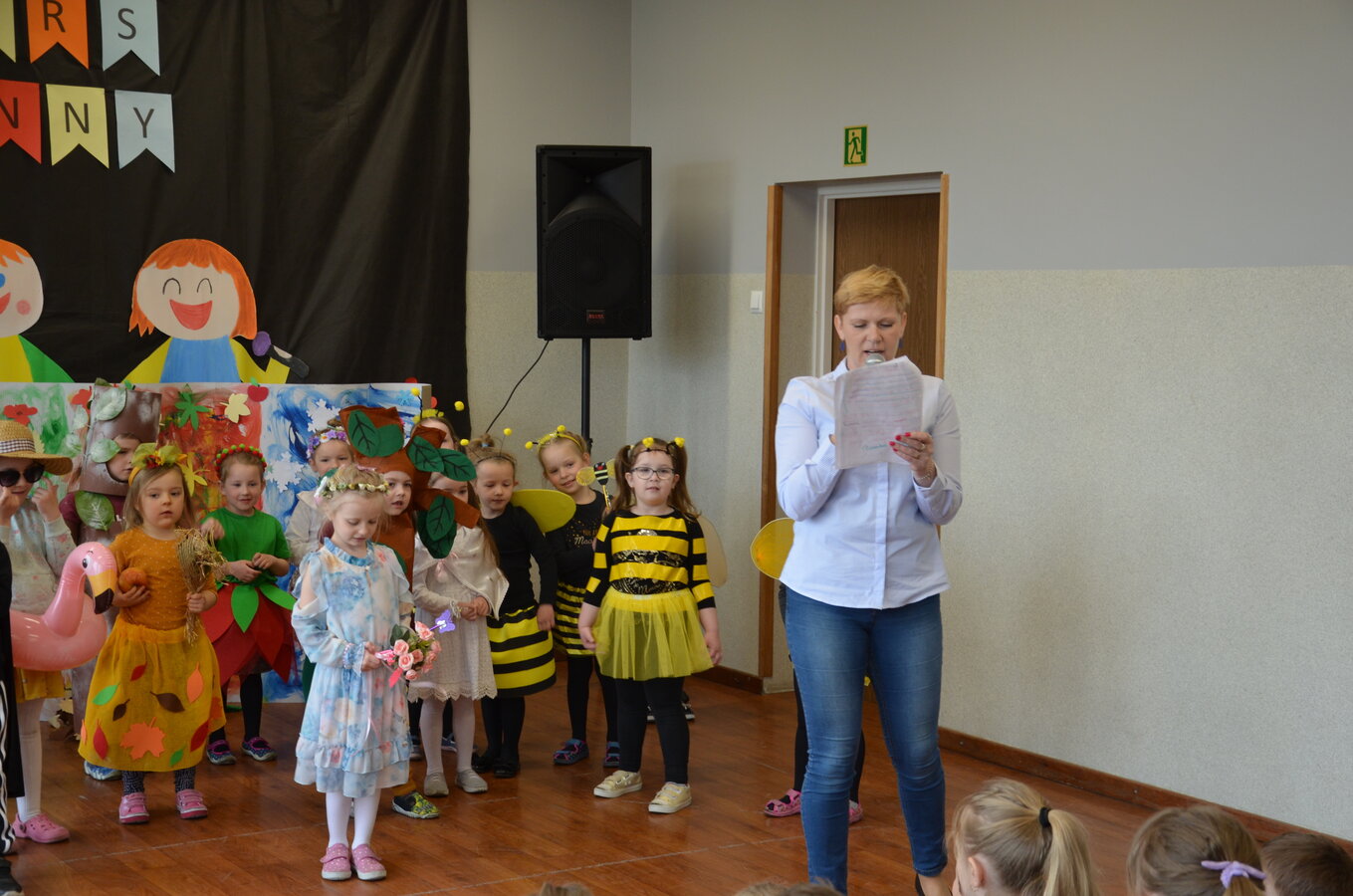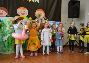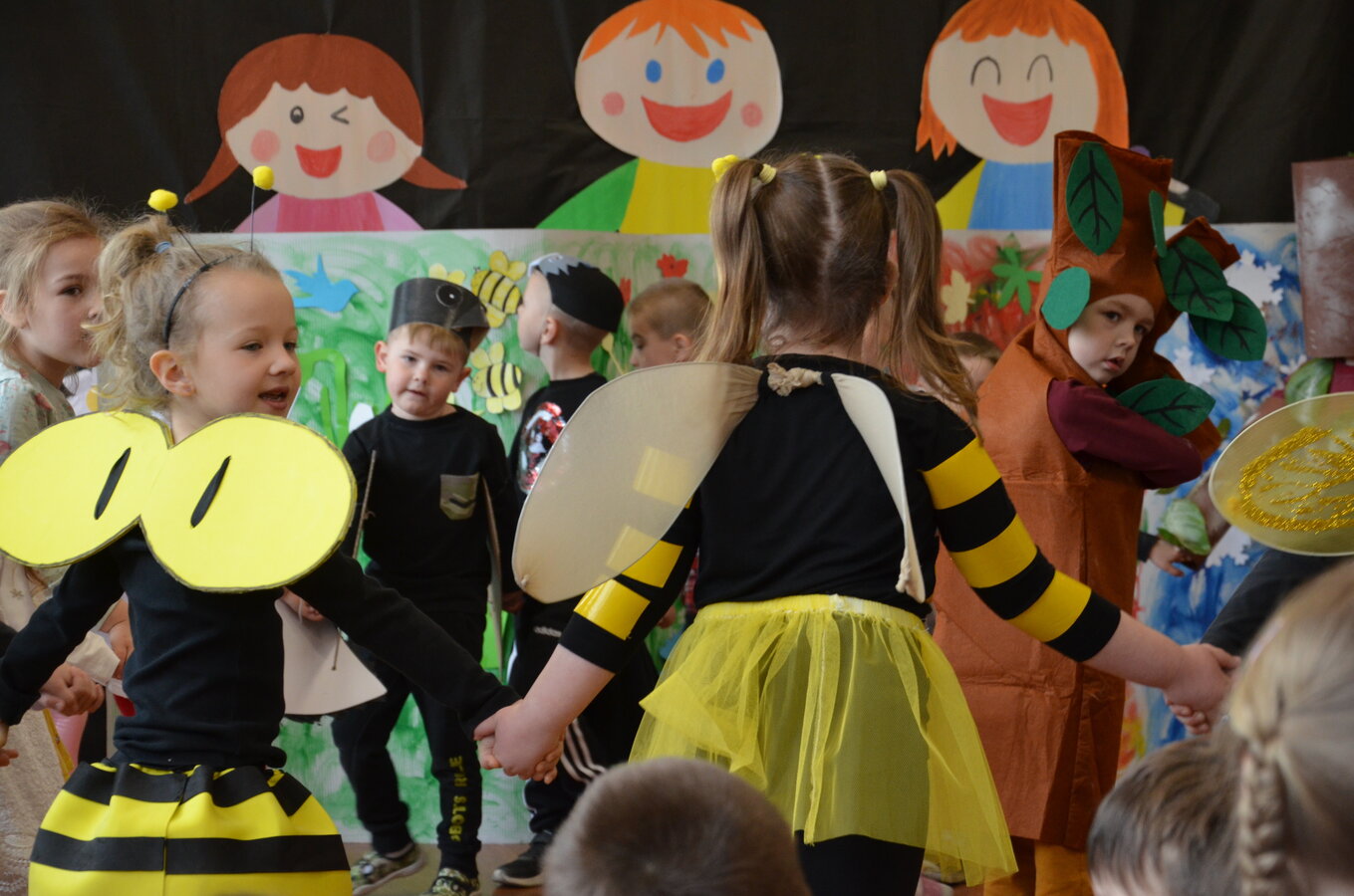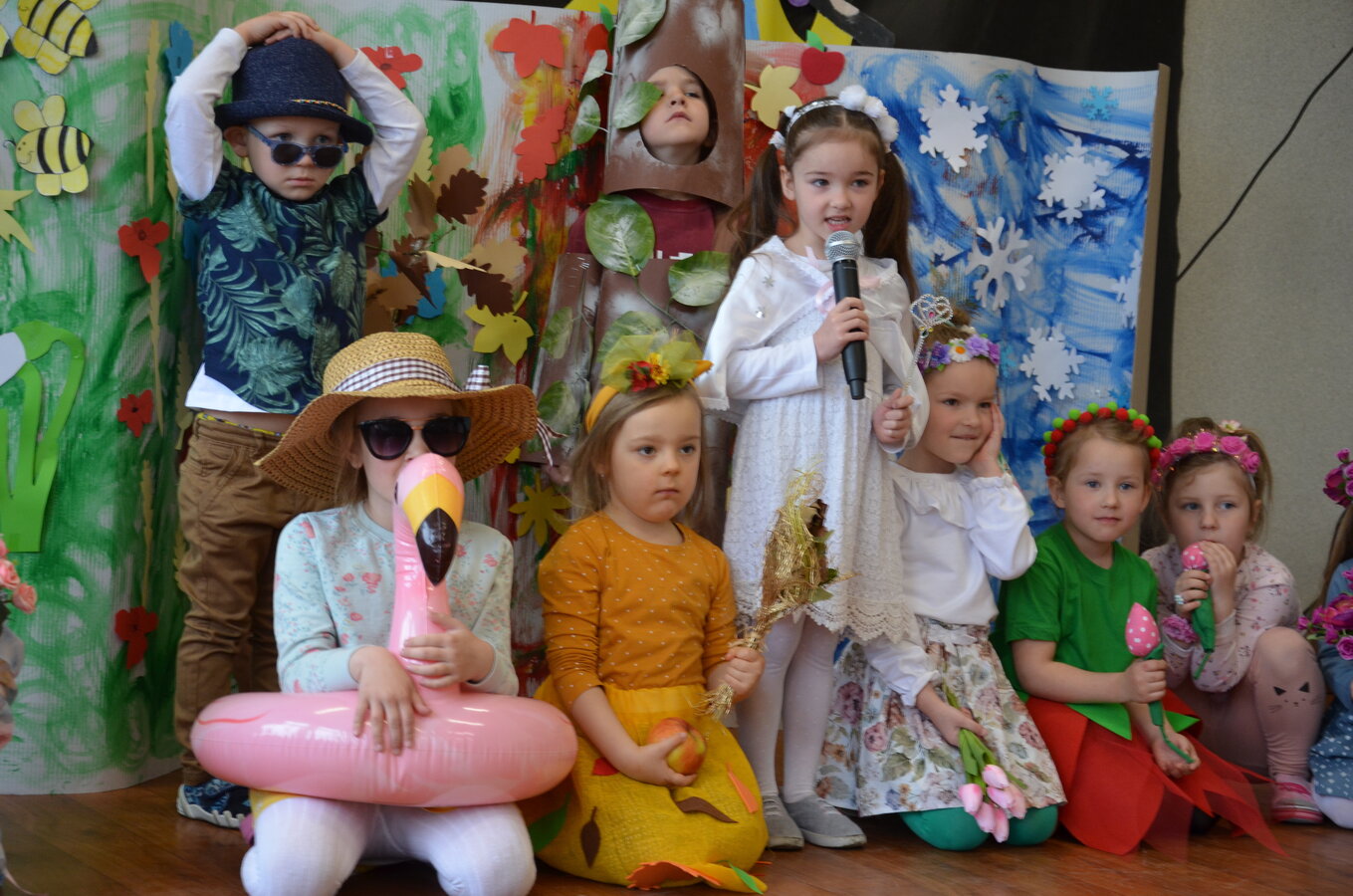 Dzieci z Oddziału Przedszkolnego z grupy "SÓWKI", przygotowały dla uczniów i przedszkolaków przedstawienie pt." Cztery pory roku - Wiosna". Przedszkolaki zaprezentowały swoje zdolności artystyczne w tańcu i w piosence. Wartość przedstawienia wzbogaciły piękne stroje, które przygotowali rodzice. Dzieci zostały nagrodzone dużymi brawami!.