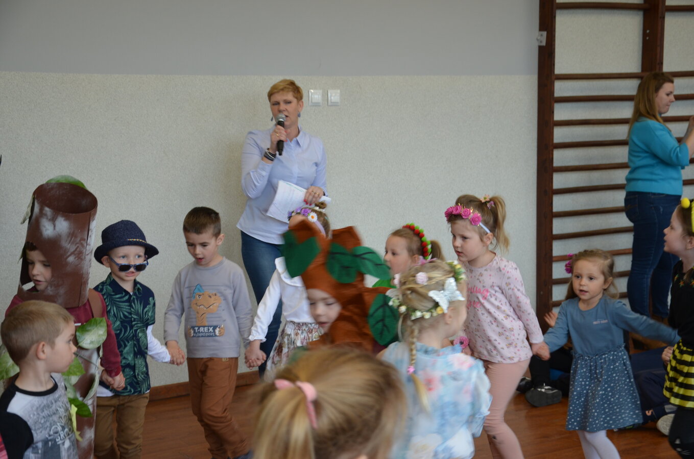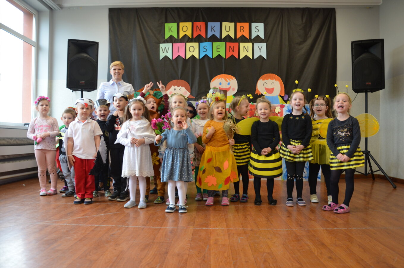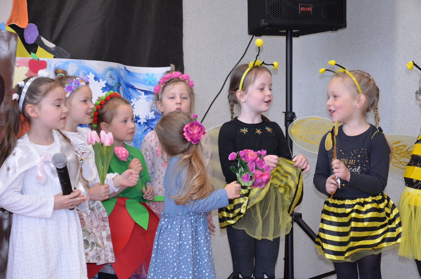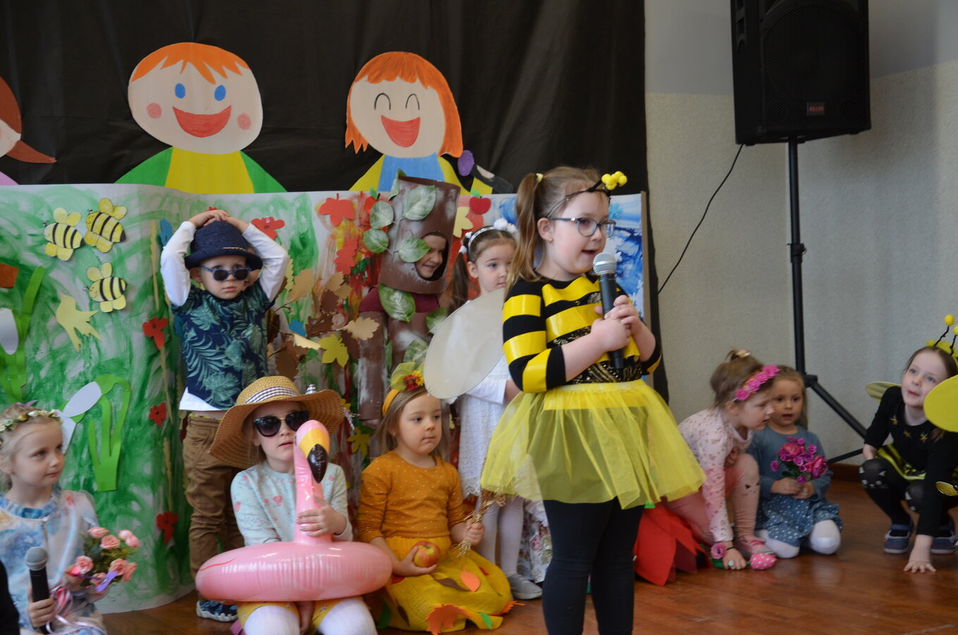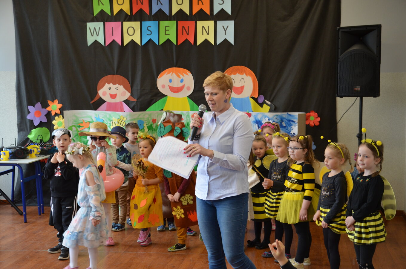 Dzieci z Oddziału Przedszkolnego z grupy "SÓWKI", przygotowały dla uczniów i przedszkolaków przedstawienie pt." Cztery pory roku - Wiosna". Przedszkolaki zaprezentowały swoje zdolności artystyczne w tańcu i w piosence. Wartość przedstawienia wzbogaciły piękne stroje, które przygotowali rodzice. Dzieci zostały nagrodzone dużymi brawami!.