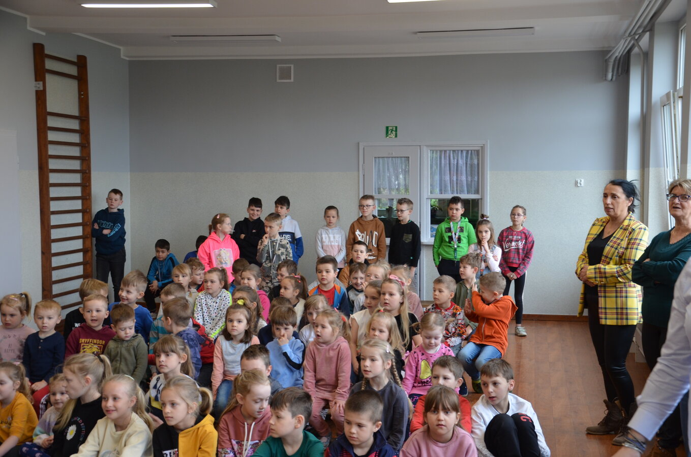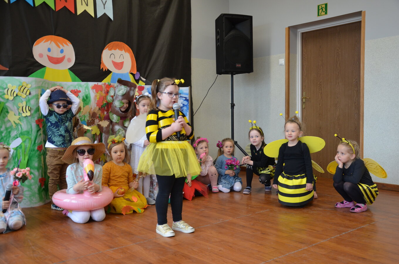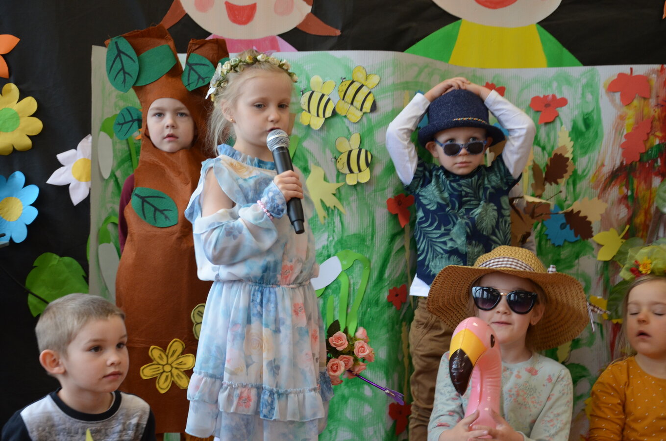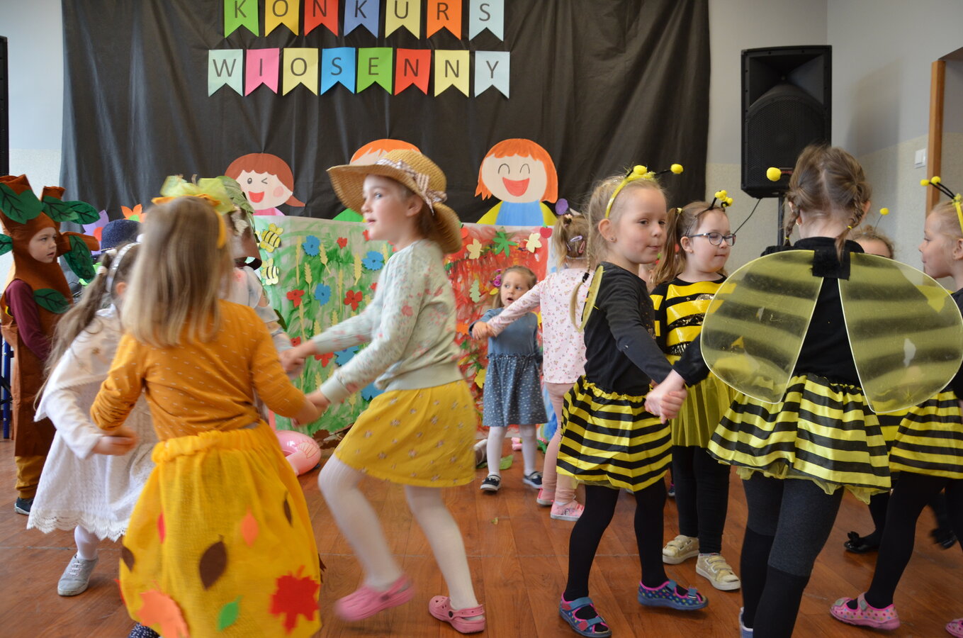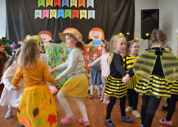 Dzieci z Oddziału Przedszkolnego z grupy "SÓWKI", przygotowały dla uczniów i przedszkolaków przedstawienie pt." Cztery pory roku - Wiosna". Przedszkolaki zaprezentowały swoje zdolności artystyczne w tańcu i w piosence. Wartość przedstawienia wzbogaciły piękne stroje, które przygotowali rodzice. Dzieci zostały nagrodzone dużymi brawami!.
