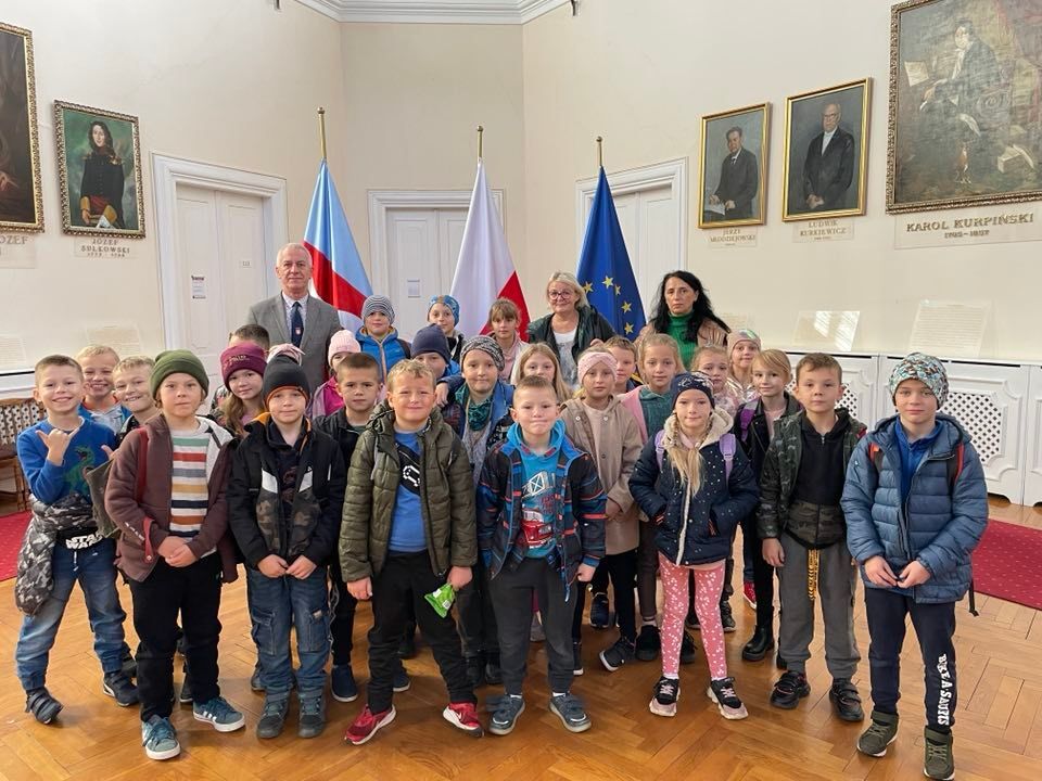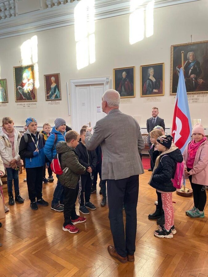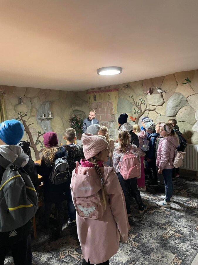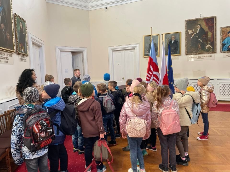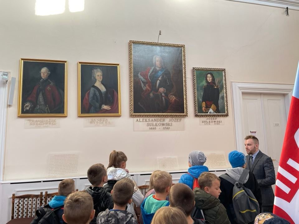 Dzisiaj klasa 2 i 3 pojechały na wycieczkę do Włoszakowic. Naszym celem był pałac Sułkowskich. Na miejscu czekał na nas pan Amadeusz Apolinarski, który był naszym przewodnikiem po tym wyjątkowym miejscu. Dzieci poznały historię pałacu, poznały jego kolejnych właścicieli. Zwiedzanie rozpoczęliśmy od salki masońskiej, poprzez salę trójkątną, aż po podziemia, owiane do tej pory tajemnicą. Podczas wędrówki pałacowymi korytarzami spotkała nas miła niespodzianka ze strony wójta, pana Roberta Kasperczaka. Poznaliśmy też różne historyczne postacie związane z historią naszej gminy. Po odpoczynku na placu zabaw i w kawiarni Szarlotka udaliśmy się do parku szukać zmian w przyrodzie, które zachodzą jesienią. Pełni wrażeń wróciliśmy do szkoły na dalsze zajęcia.
