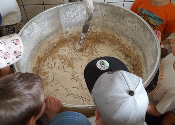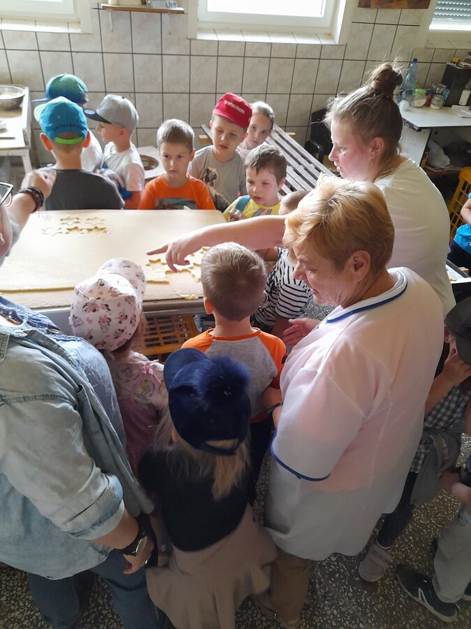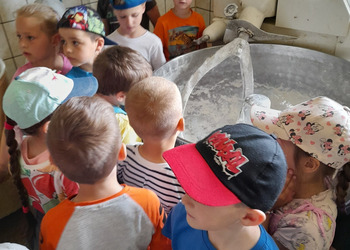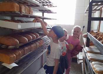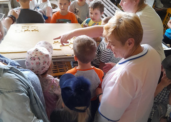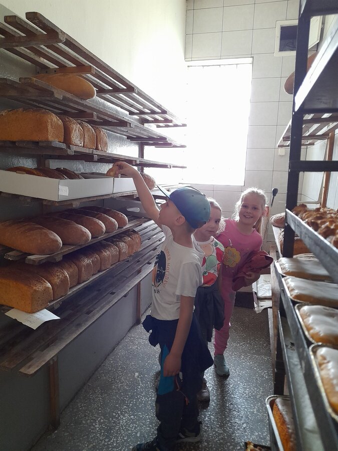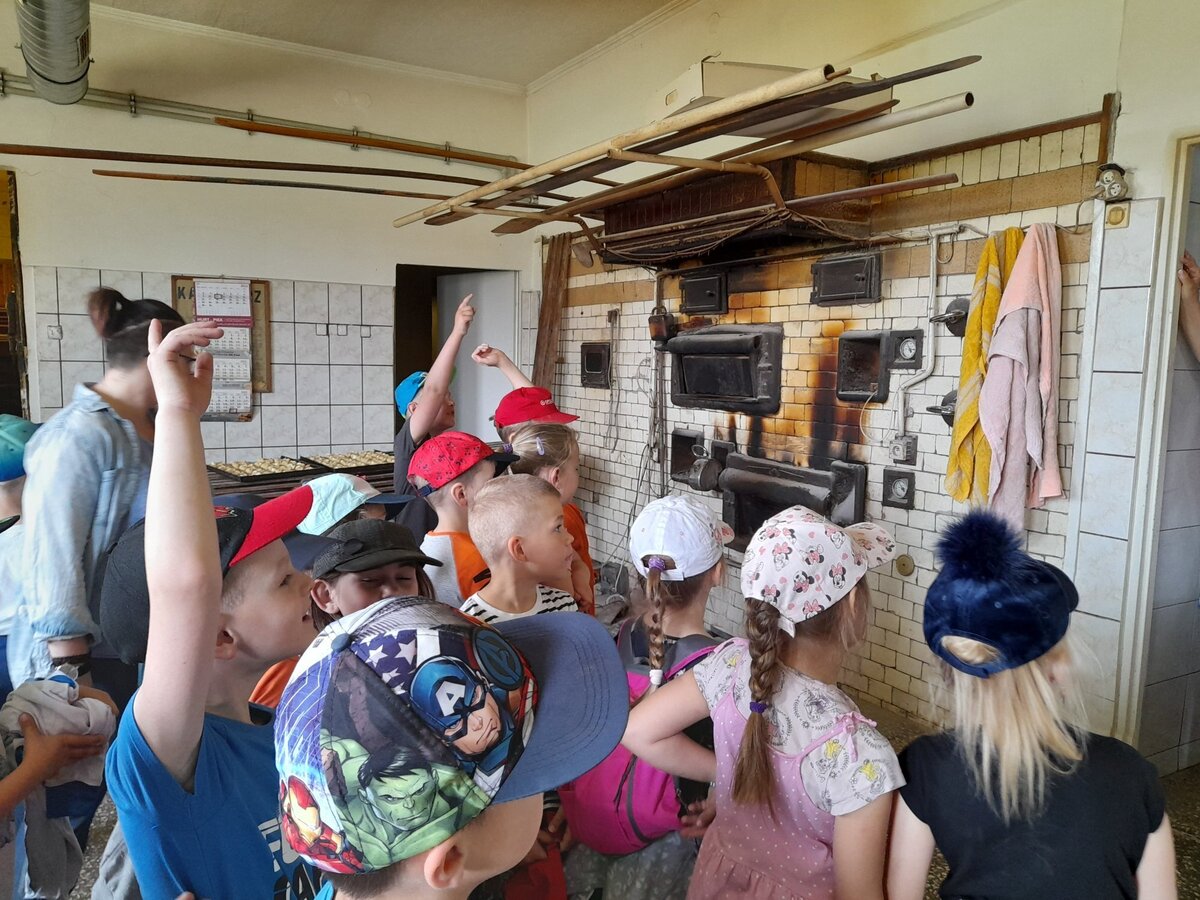 Dzieci z grupy Misie podczas realizacji tematu: „Moja miejscowość, mój region”, wybrały się na wycieczkę. Zajęcia zaczęliśmy od poznania herbu i obszaru gminy Włoszakowice oraz Święciechowa. Dzieci wymieniały według własnego pomysłu godne zobaczenia miejsca z każdej miejscowości ( Zbarzewo, Gołanice i Jezierzyce Kościelne), a później udaliśmy się na spacer podczas, którego tworzyliśmy mapę Jezierzyc Kościelnych. Pierwszego dnia widzieliśmy mleczarnię, pracę rolników na polu, a także bociana stojącego na lampie w pobliżu swojego gniazda. W drugim dniu nasza trasa objęła takie miejsca jak Kwiaciarnia gdzie Pani Kamila opowiadała nam o Kwiatach, warzywach i drzewkach a także rodzaju ziemi, która odgrywa ważną rolę przy uprawie roślin, sadzenia rozsad czy wsadzania drzew iglastych. Na zakończenie spotkania w kwiaciarni otrzymaliśmy piękne kwiaty, które zdobią naszą salę przedszkolną, a jednocześnie dzieci uczą się dbania o nie. Następnym przystankiem była Piekarnia tradycyjna. U Pana Romana mogliśmy zobaczyć jak wygląda piekarnia od środka. Z wielkim zainteresowaniem dzieci przyglądały się pracy piekarzy, utrwaliły sobie etapy powstawania pieczywa oraz produkty potrzebne do jego wypieku. Przedszkolaki zobaczyły duże maszyny niezbędne do pracy piekarza m.in. misy na ciasto, maszyny do wyrabiania ciasta na pieczywo oraz ogromny piec do jego wypiekania. Na podsumowanie tego spotkania każdy poczęstował się ciasteczkiem.