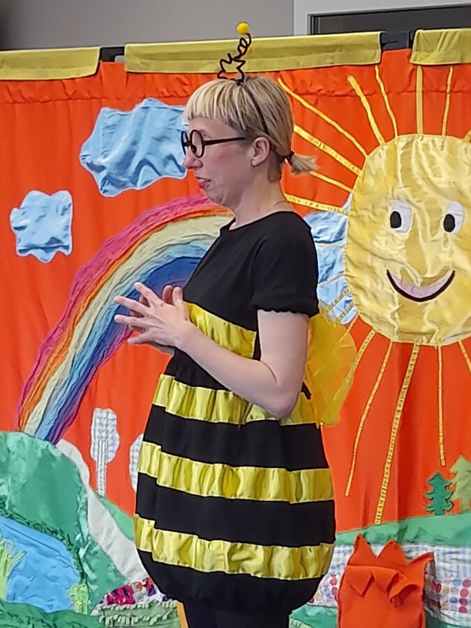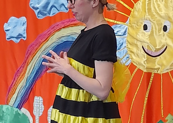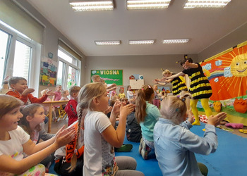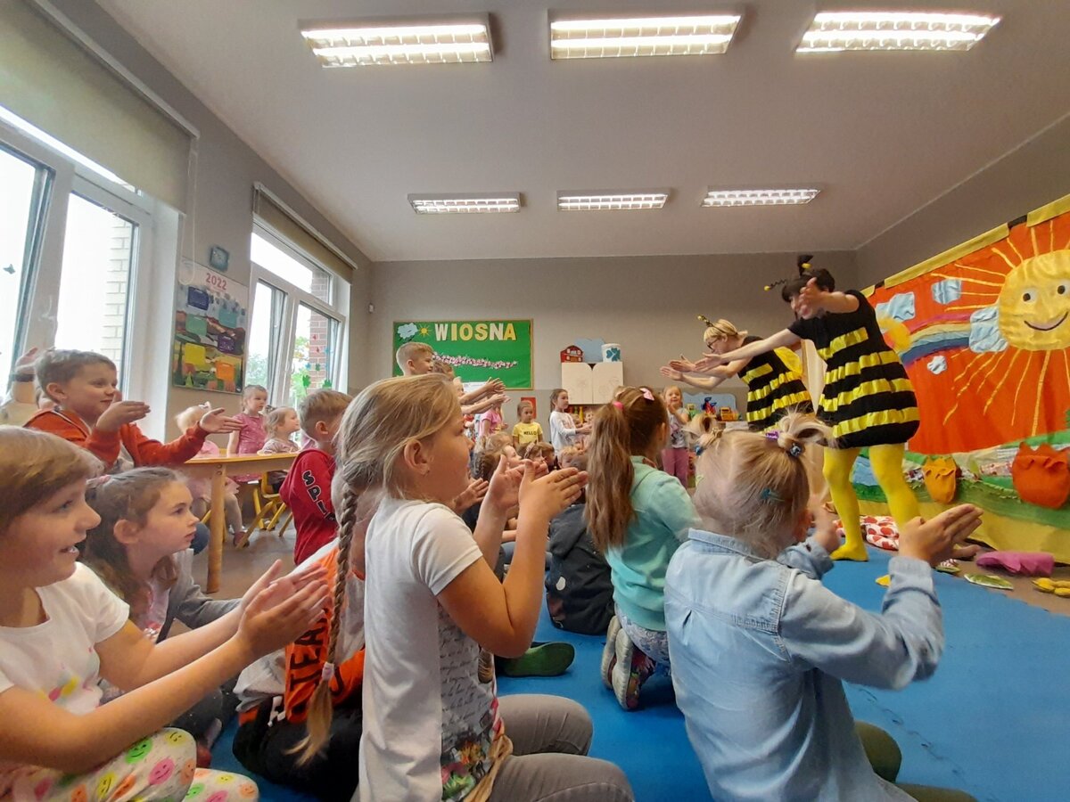 Wystawił dla dzieci z grup przedszkolnych i zerówki przedstawienie o pszczołach pt. „ Pszczoła miodna i pszczoła dzika”. Młodzi widzowie mieli okazję obejrzeć wspaniały teatrzyk pełen muzyki, tańca i humoru. Mogli też aktywnie brać udział w spotkaniu, co bardzo pozytywnie wpłynęło na odbiór wydarzenia przez dzieci. Ciekawostki zaprezentowane przez aktorów z całą pewnością pomogły im w ugruntowaniu wiedzy na temat życia pszczół w ulu, a także ich cennej pracy.