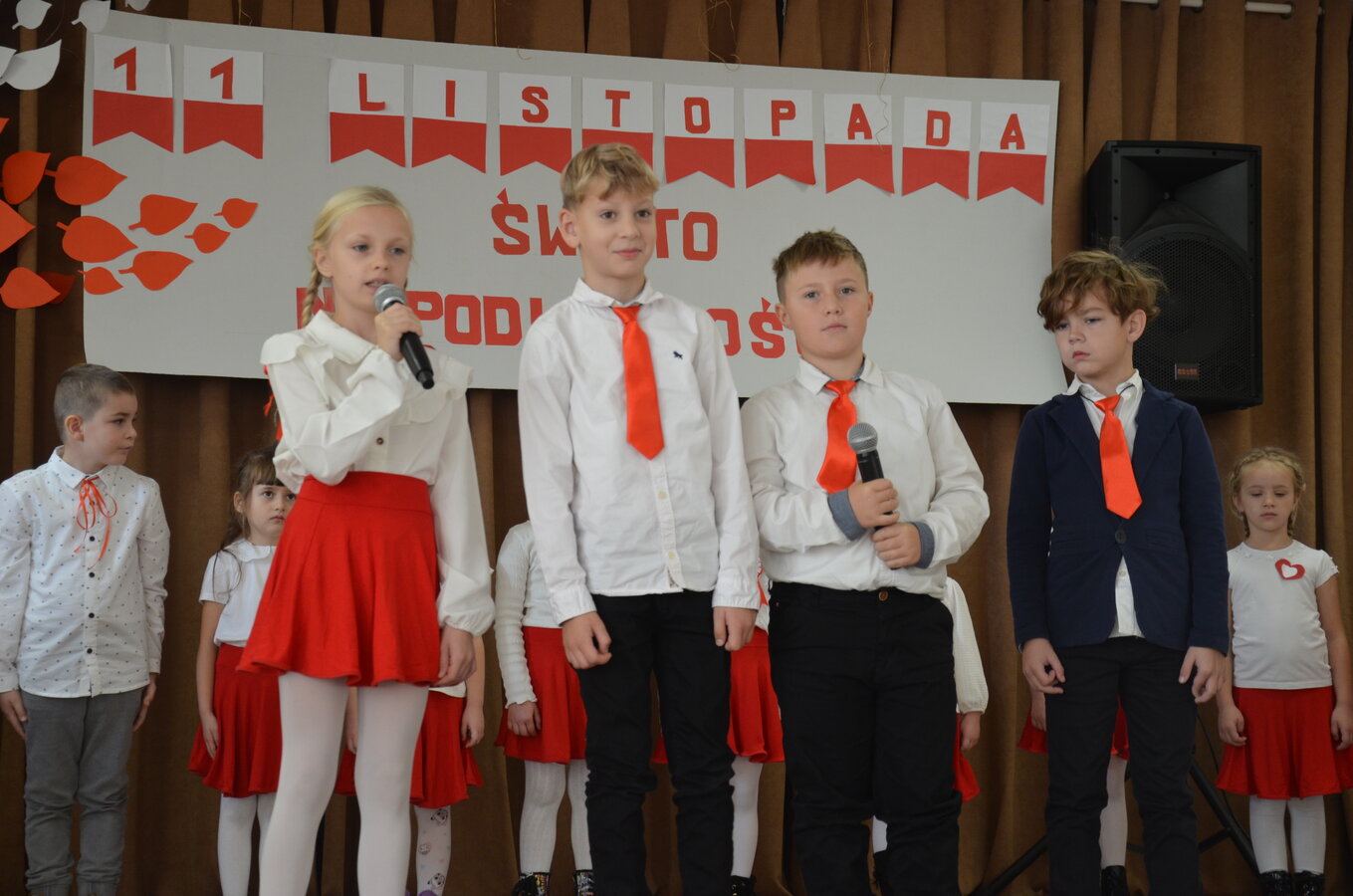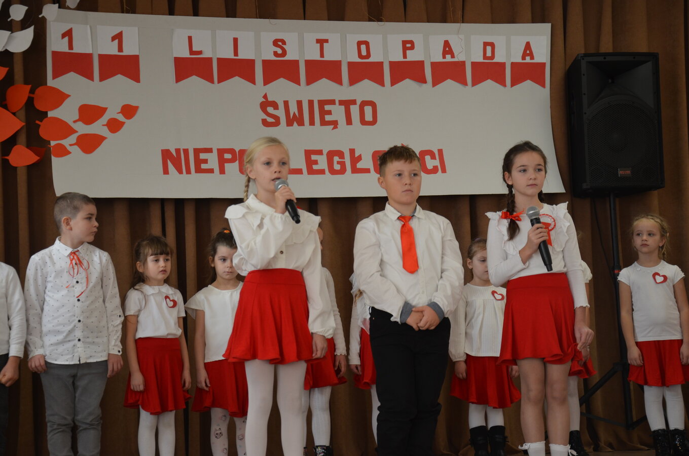 6 listopada w naszej szkole odbyła się uroczysta akademia z okazji Święta Niepodległości, które obchodzimy 11 listopada. Uczniowie z oddziału przedszkolnego oraz klasy III wraz z wychowawczyniami Panią Karoliną Mejza i Panią Bogusławą Krawczyk przygotowali piękny program artystyczny, przypominający o bohaterach walczących o wolność naszej ojczyzny. Podczas występu przypominano najważniejsze momenty długiej drogi do odzyskania niepodległości, śpiewano pieśni narodowe i wspólnie odśpiewano hymn Polski. Sala była udekorowana w barwy biało-czerwone, co podkreślało podniosły nastrój uroczystości. Akademia była nie tylko lekcją historii, ale także wyrazem szacunku i wdzięczności wobec tych, którzy walczyli o niepodległość naszego kraju. Na zakończenie obchodów odbył się Konkurs Pieśni Patriotycznych, w którym wzięli udział: