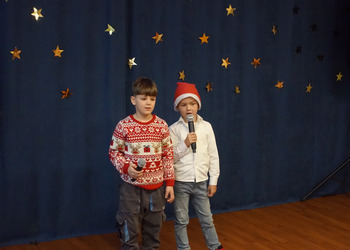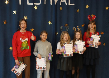 Poza konkursem wystąpiła również klasa II z piosenką „I’m the happiest Christmas tree”. Konkurs prowadzony przez Emilię Rudawska i Julię Michalak przebiegał w miłej atmosferze, która udzieliła się zarówno uczestnikom jak i widzom.
