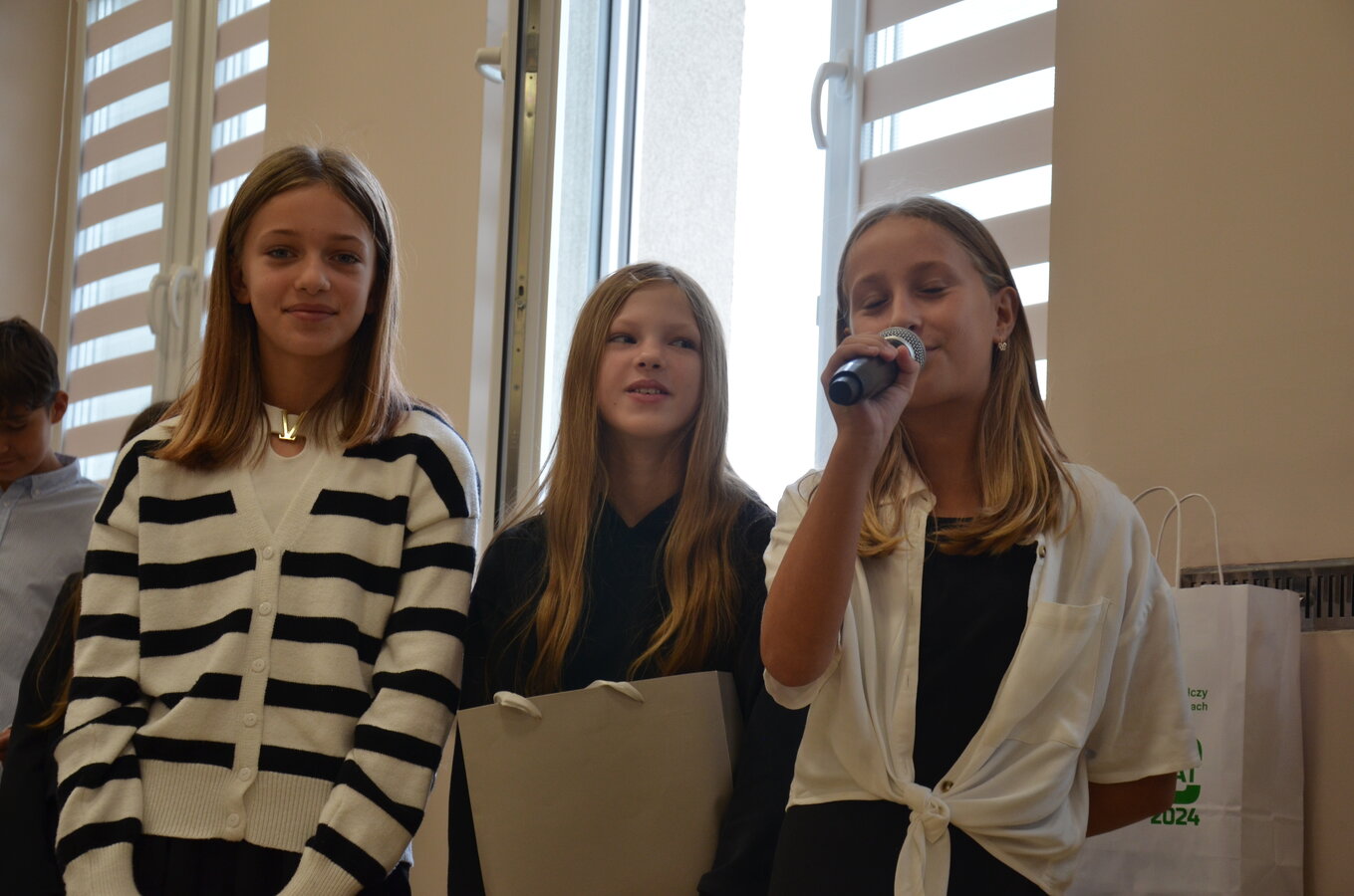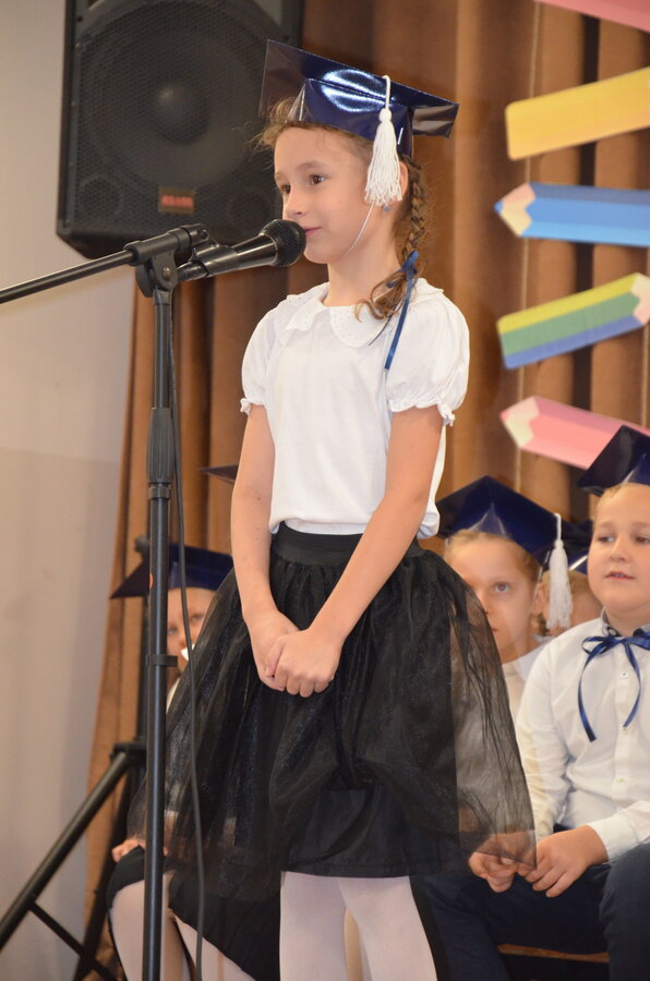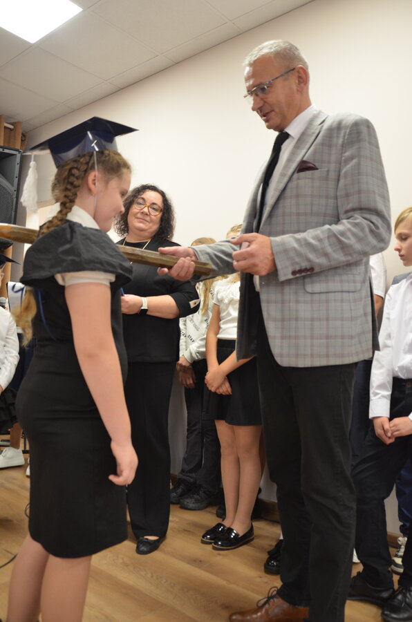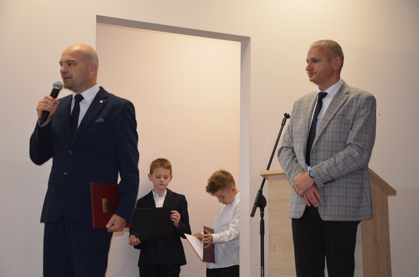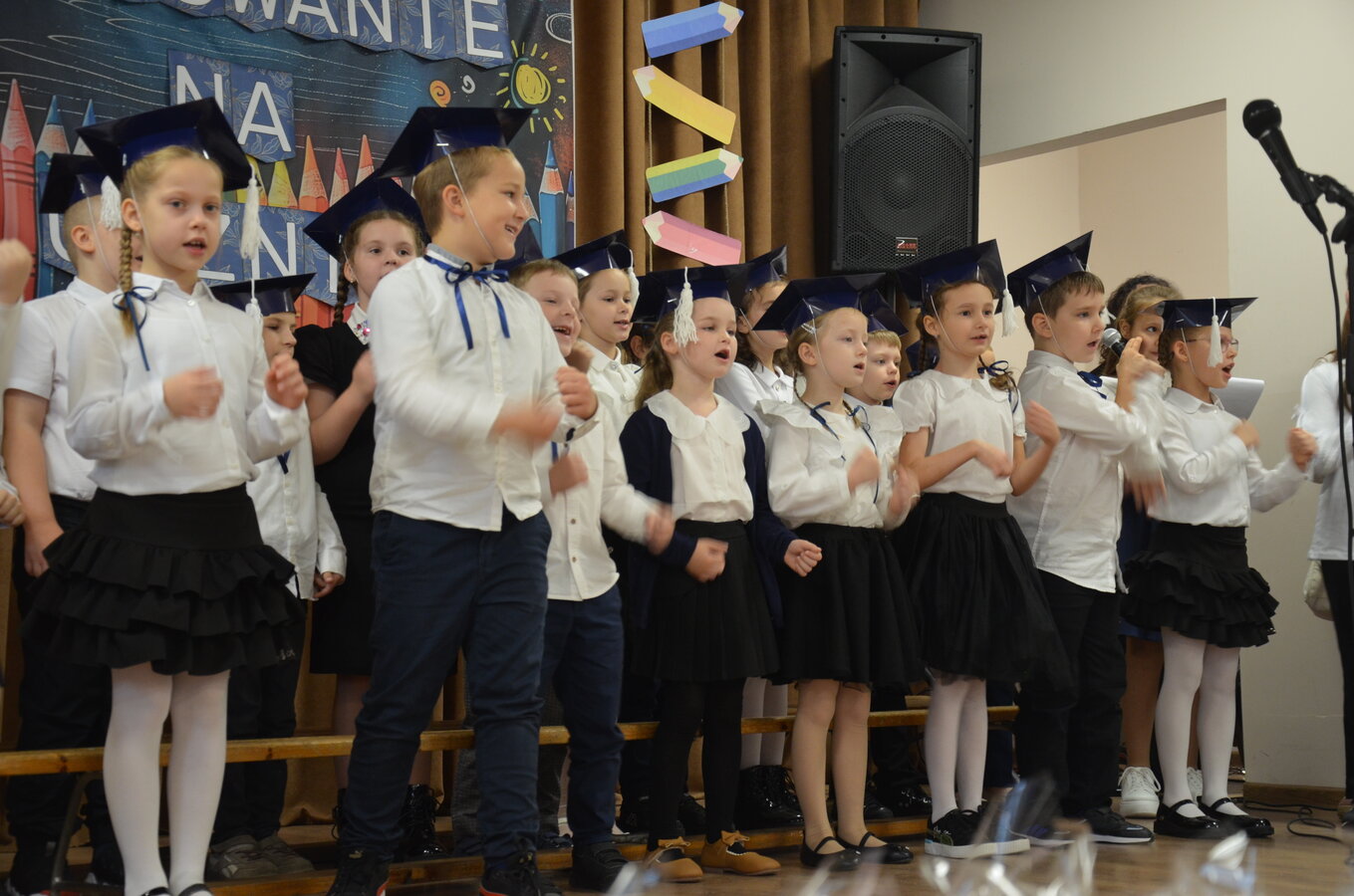 Dzisiaj 14.10.2025r. w naszej szkole odbyła się wyjątkowa uroczystość – Pasowanie dzieci z klasy pierwszej na Uczniów oraz uroczysta akademia z okazji Dnia Edukacji Narodowej. Był to dla nich szczególny dzień. Przybyły do szkoły w galowych strojach w towarzystwie Rodziców z dumą zaprezentowały swoje umiejętności zdobyte podczas pierwszego miesiąca nauki. Pokazały, jak pięknie potrafią śpiewać i recytować wiersze. Zostały serdecznie powitane w gronie społeczności uczniowskiej przez starszych kolegów. Następnie odbyło się uroczyste ślubowanie, zaś punktem kulminacyjnym imprezy był akt pasowania dokonany przez Pana Dyrektor . Od tej chwili wszystkie dziewczynki stały się pełnoprawnymi uczennicami, zaś chłopcy – pełnoprawnymi uczniami Szkoły Podstawowej im Tadeusza Kościuszki w Jezierzycach Kościelnych.