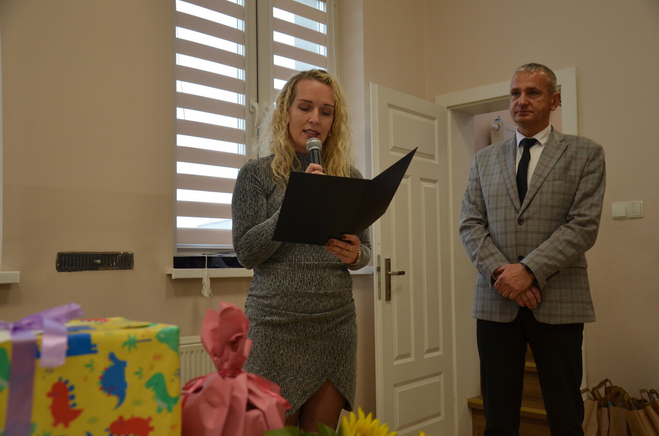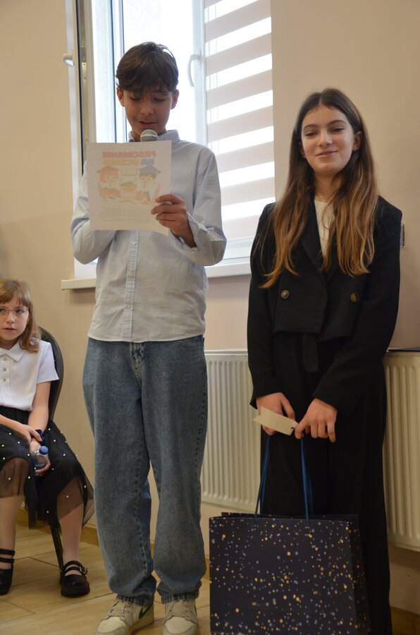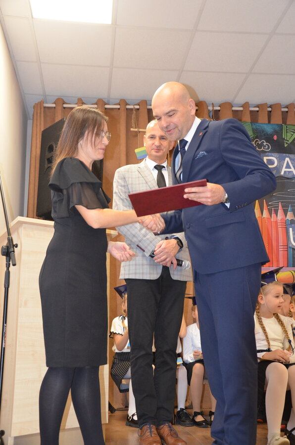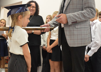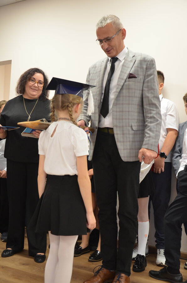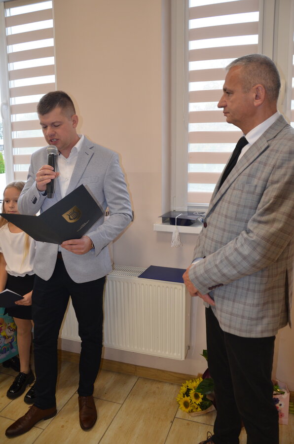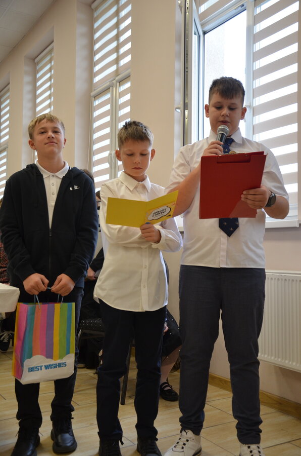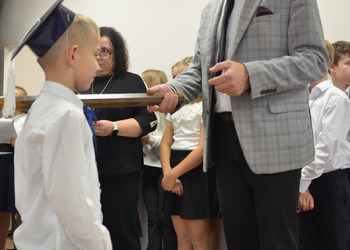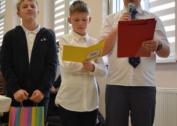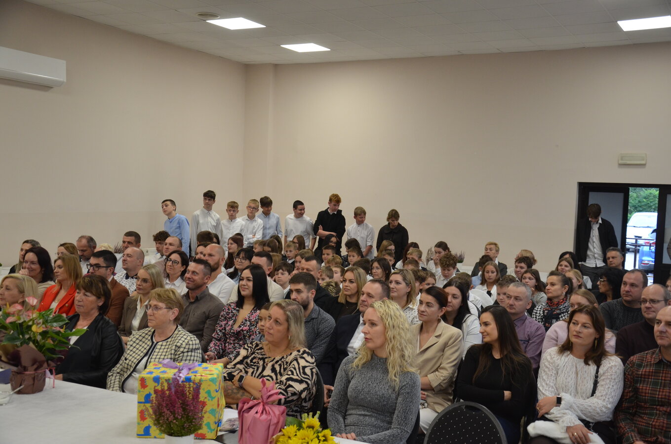 Dzisiaj 14.10.2025r. w naszej szkole odbyła się wyjątkowa uroczystość – Pasowanie dzieci z klasy pierwszej na Uczniów oraz uroczysta akademia z okazji Dnia Edukacji Narodowej. Był to dla nich szczególny dzień. Przybyły do szkoły w galowych strojach w towarzystwie Rodziców z dumą zaprezentowały swoje umiejętności zdobyte podczas pierwszego miesiąca nauki. Pokazały, jak pięknie potrafią śpiewać i recytować wiersze. Zostały serdecznie powitane w gronie społeczności uczniowskiej przez starszych kolegów. Następnie odbyło się uroczyste ślubowanie, zaś punktem kulminacyjnym imprezy był akt pasowania dokonany przez Pana Dyrektor . Od tej chwili wszystkie dziewczynki stały się pełnoprawnymi uczennicami, zaś chłopcy – pełnoprawnymi uczniami Szkoły Podstawowej im Tadeusza Kościuszki w Jezierzycach Kościelnych.
