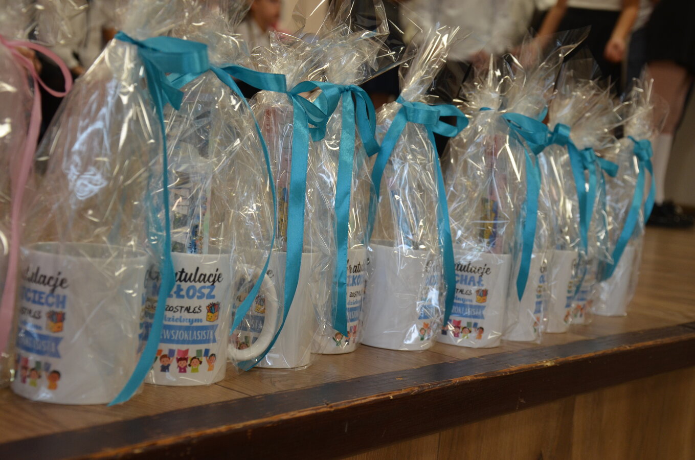 Na pamiątkę wydarzenia dzieci otrzymały dyplomy, legitymacje szkolne oraz liczne upominki od zaproszonych gości m.in.: Wójta Gminy Włoszakowice Pana Marka Wąsowicza, Radnego Gminy Włoszakowice Pana Dawida Kuśnierka, przedstawiciela Banku Spółdzielczego we Włoszakowicach Panią Danutę Brożyńską, Sołtysa wsi Jezierzyce Kościelne Panią Agnieszkę Przewoźną, przedstawicielki Klubu Seniora z Jezierzyc Kościelnych oraz Zespołu "Jezioranki" Panią Hannę Michalską oraz Panią Marię Kiąca, przedstawicielki Rady Rodziców – Panią Partycję Gąd oraz Panią Agnieszkę Przewoźną a także od swoich starszych kolegów i koleżanek ze szkoły. Po uroczystym apelu pierwszoklasiści udali się na słodki poczęstunek przygotowany przez Rodziców. Te ważne chwile związane ze szkołą utkwią im na długo w ich pamięci. Na pewno Uczniowie będą starali się „swoim zachowaniem i nauką sprawiać radość Rodzicom i Nauczycielom”.