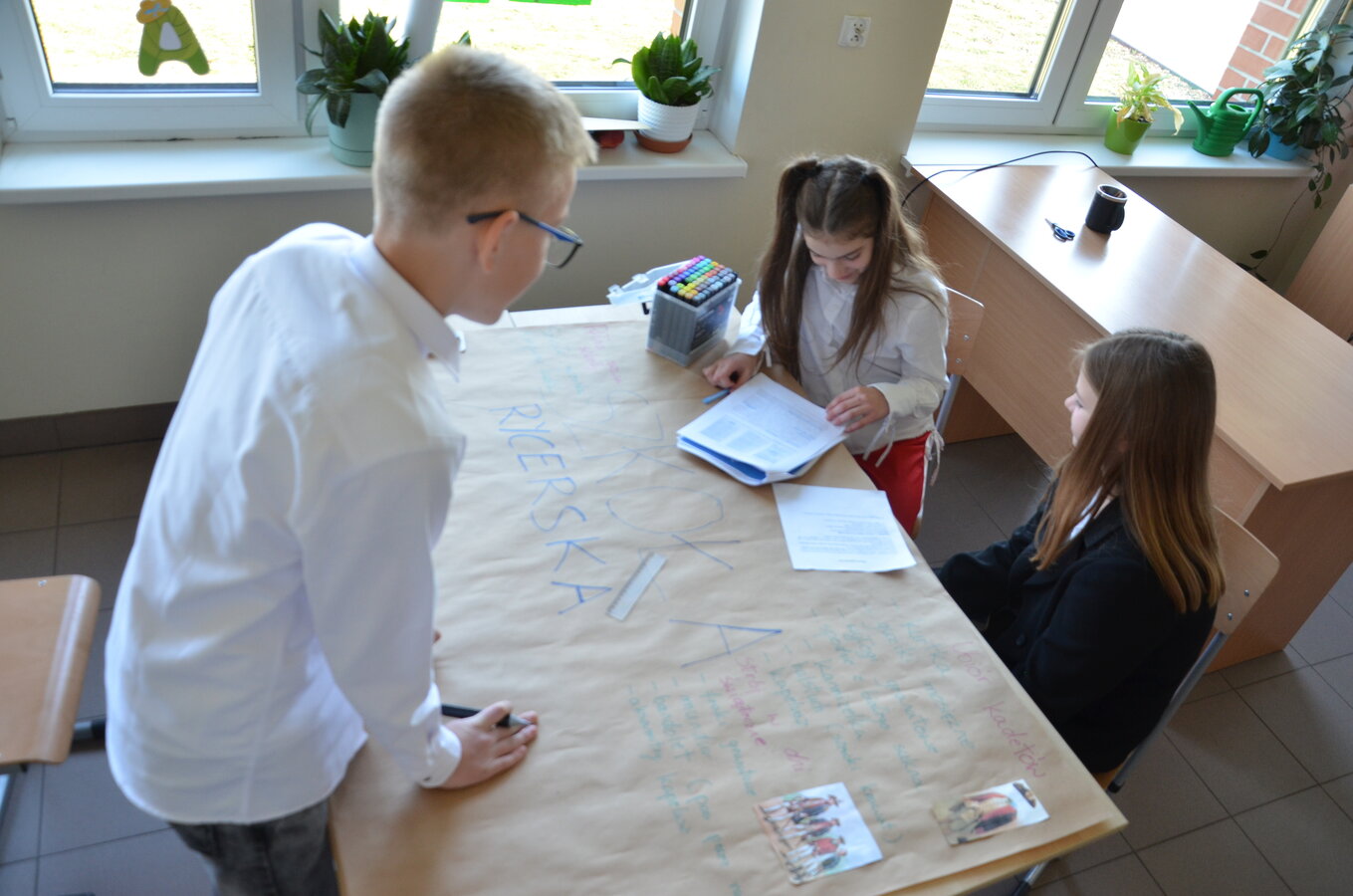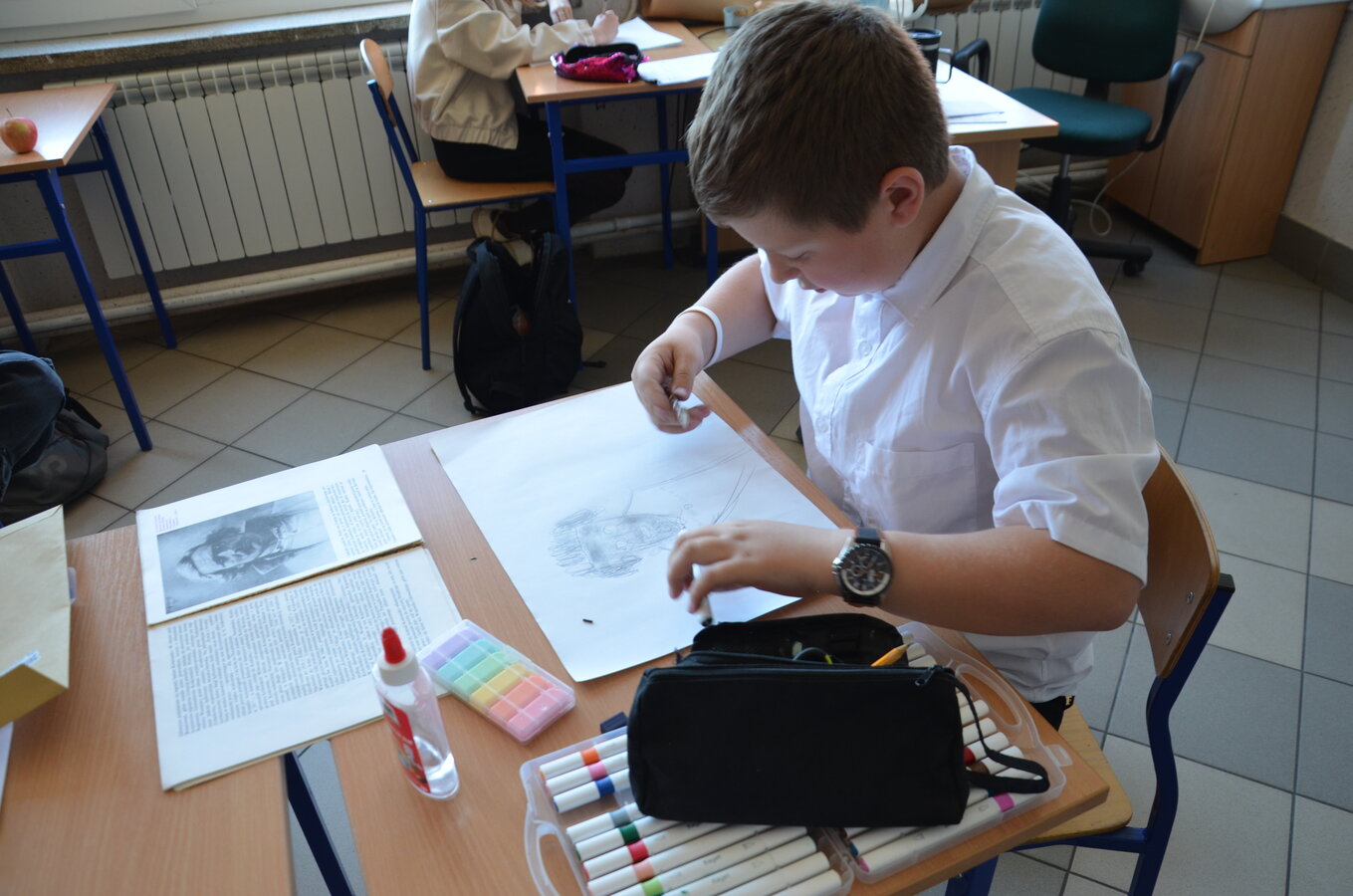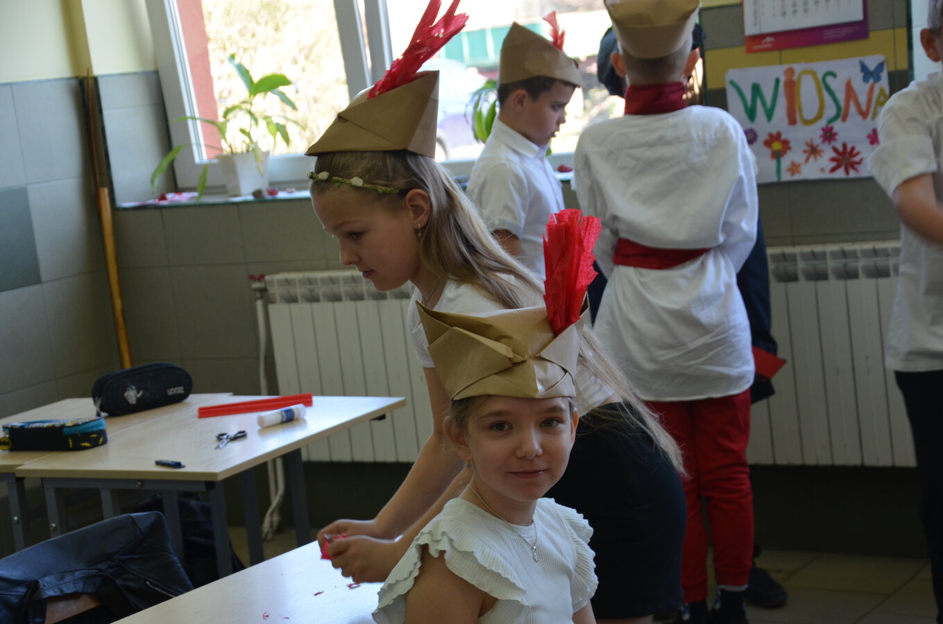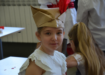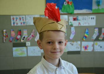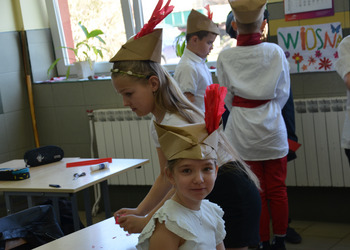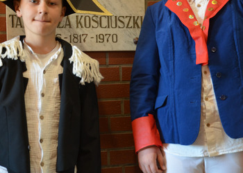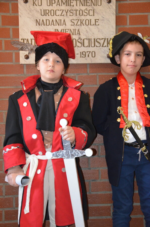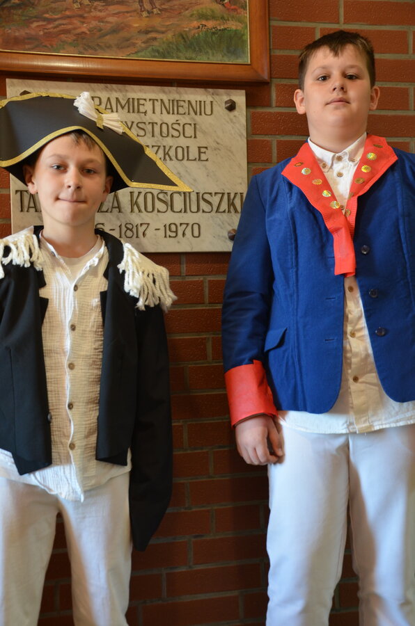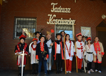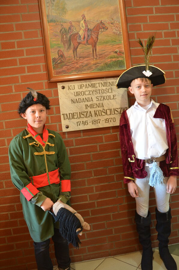 Dnia 4 kwietnia, w kolejną rocznicę bitwy pod Racławicami, obchodziliśmy Dzień Patrona Szkoły - Tadeusza Kościuszki. Niektóre dzieci przebrały się w stroje historyczne nawiązujące do czasów, w których żył nasz bohater. Można było podziwiać strój kadeta Szkoły Rycerskiej, Wojciecha Bartosa i samego Naczelnika powstania. Tego dnia mogliśmy poszerzyć swoją wiedzę o Tadeuszu Kościuszce: układaliśmy puzzle, wykonywaliśmy czapkę krakuskę metodą origami, budowaliśmy kopiec Kościuszki z klocków, układaliśmy plan lekcji, który mógłby obowiązywać w Szkole Rycerskiej, pracowaliśmy z mapą i tekstami źródłowymi, dowiedzieliśmy się co mają wspólnego samoloty myśliwskie z Kościuszką oraz poszukiwaliśmy współczesnych miejsc związanych z naszym bohaterem. Dziękujemy wszystkim, którzy zaangażowali się w naszą zabawę.