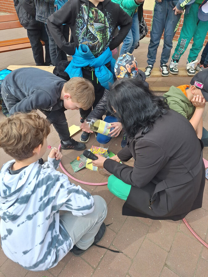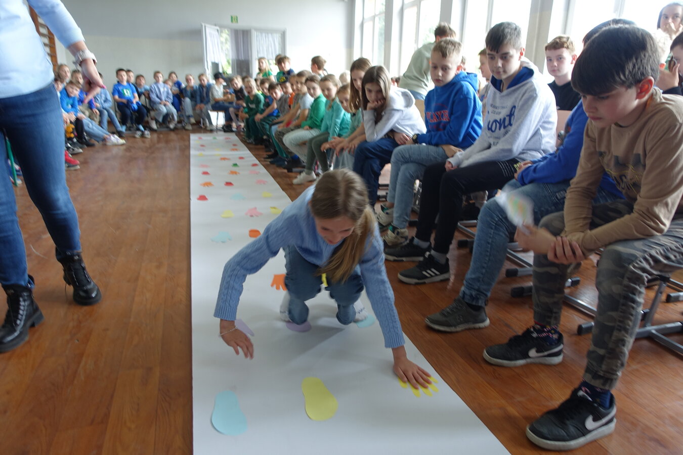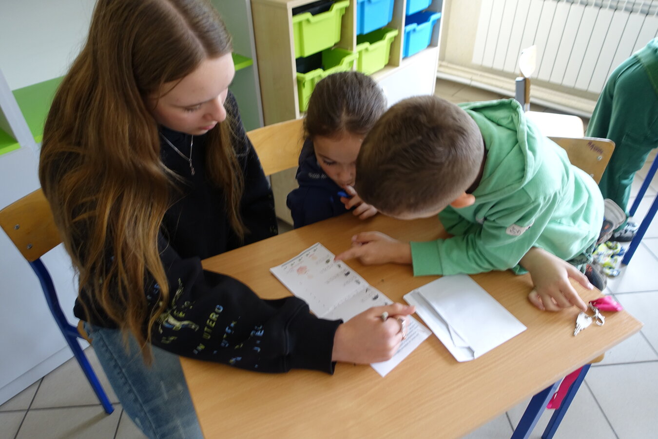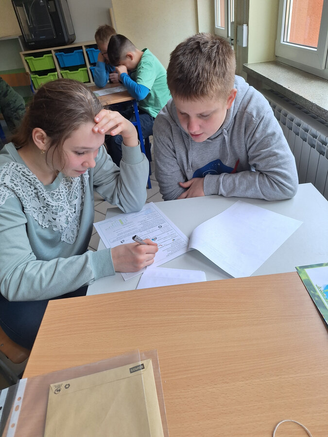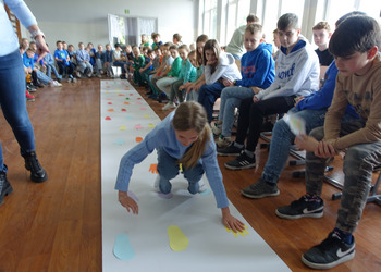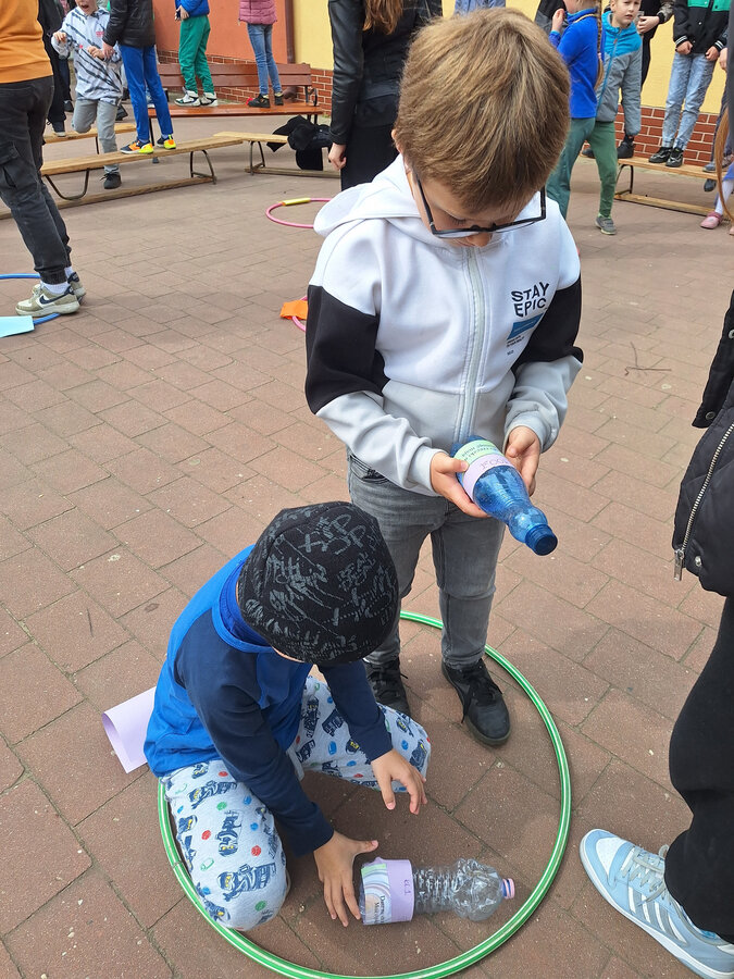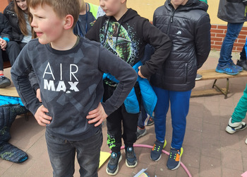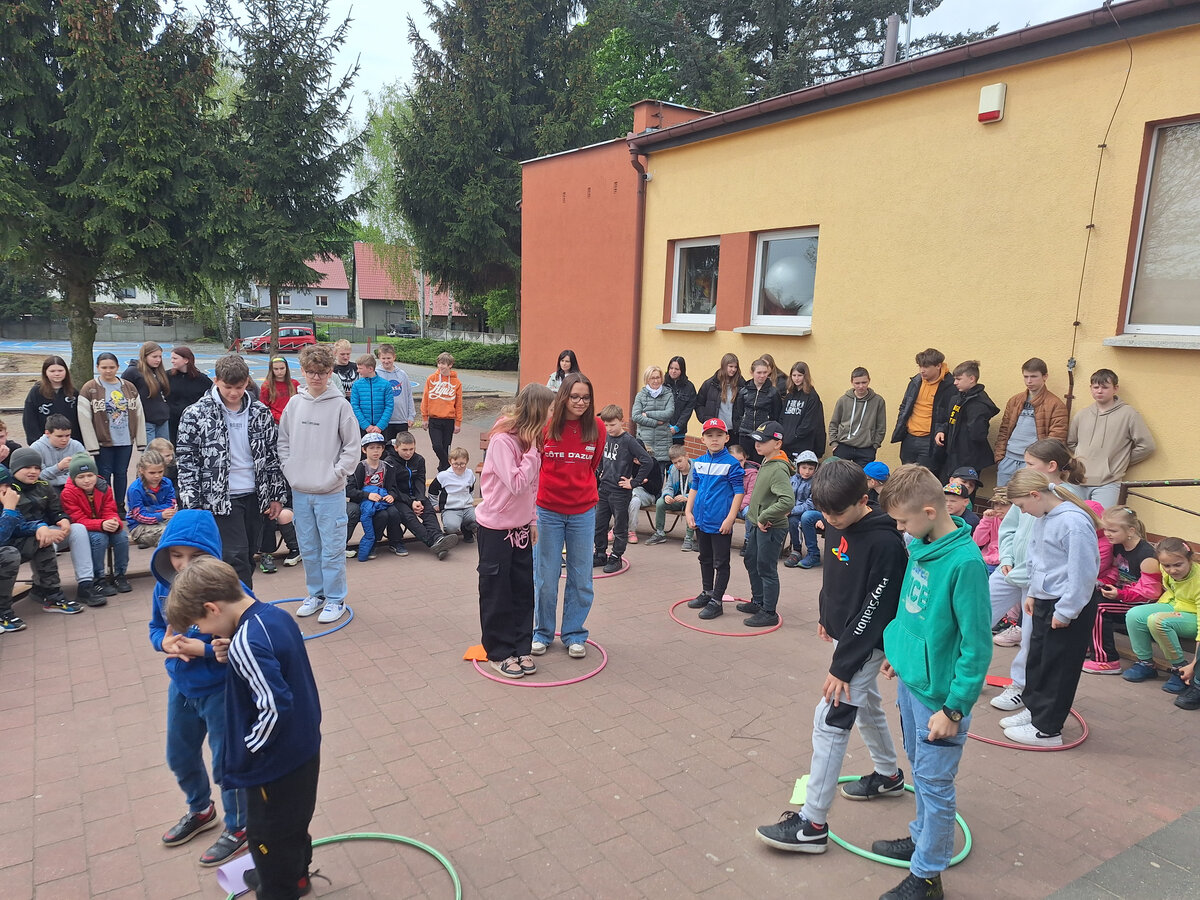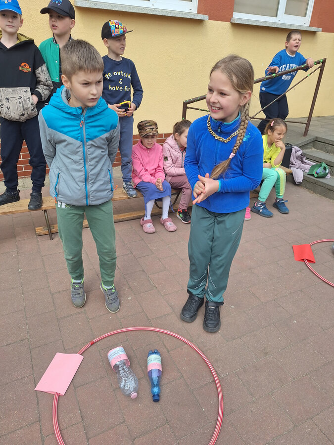 22 kwietnia obchodzony jest Dzień Ziemi. Tego dnia właśnie uczniowie naszej szkoły brali udział w różnych konkursach przyrodniczo - ekologicznych oraz sprawnościowych. Był test wiedzy ekologicznej, krzyżówki przyrodnicze, łamigłówki o lesie, pomysłowa główka, układanie puzzli, zabawy sprawnościowe, rzuty do celu oraz jedno z najciekawszych zadań czyli poszukiwanie na boisku butelek z zagadkami i szukanie ilustracji z rozwiązaniami na terenie szkoły. Zadań było wiele, więc każdy uczeń z klasy mógł spróbować swoich sił w różnych konkurencjach. Za wykonane zadanie przyznawane były pieniążki, więc wszyscy walczyli, aby nazbierać jak największą kwotę. W konkursie wiedzy ekologicznej zwyciężyli uczniowie klasy drugiej. W rozwiązywaniu krzyżówek i rzutach do celu największą kwotę zdobyła klasa siódma. Natomiast klasa pierwsza zdobyła, aż trzykrotnie największą sumę: w układaniu puzzli, torze sprawnościowym oraz szukaniu i rozwiązywaniu zagadek. Każda z klas otrzymała wcześniej wiersz o tematyce ekologicznej i ich zadaniem było przedstawienie go w formie rapu. Zwyciężyły dwie klasy, które wspaniale wykonały to zadanie - klasa druga i czwarta. Po podliczeniu wszystkich konkurencji najwięcej pieniędzy uzyskali uczniowie klasy pierwszej zdobywając kwotę - 1140 zł, za nimi klasa III zbierając 1120 zł i uczniowie klasy IV z kwotą 1050 zł. Zwycięzcy poszczególnych konkurencji otrzymali dyplomy.