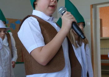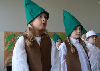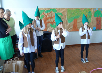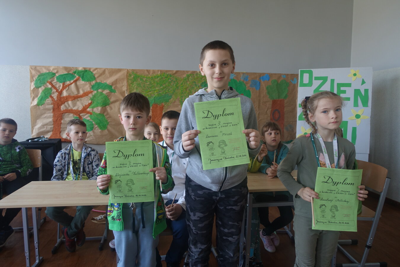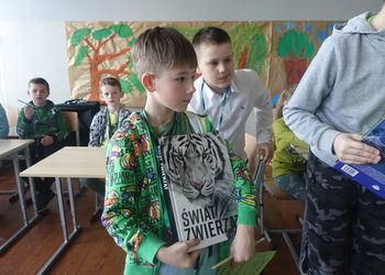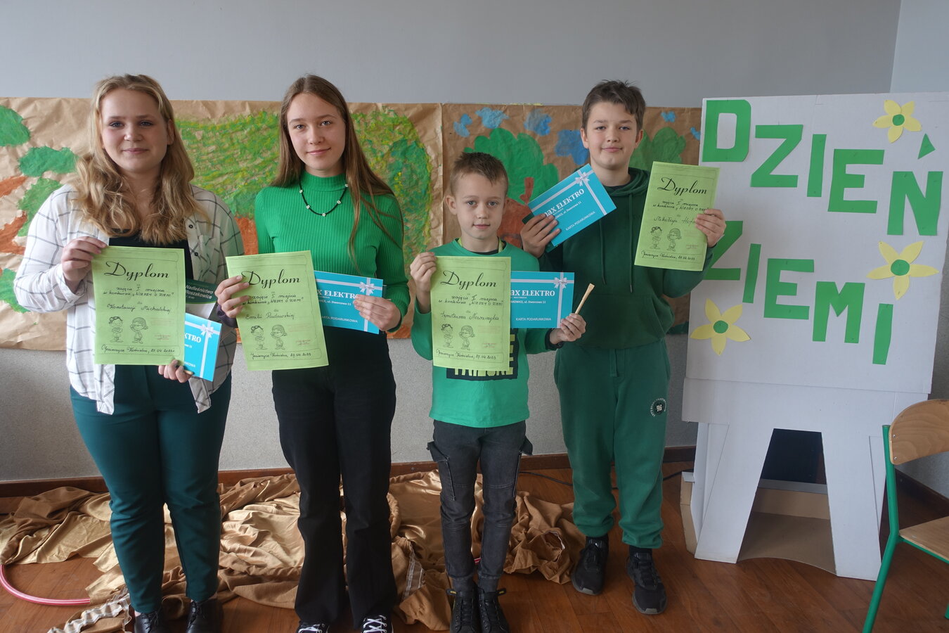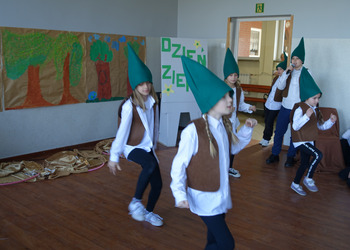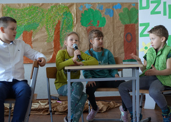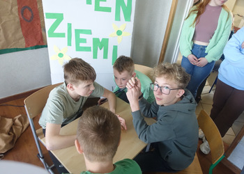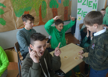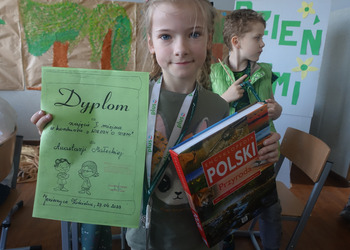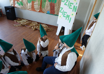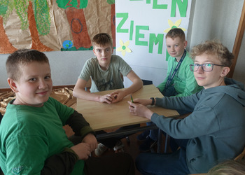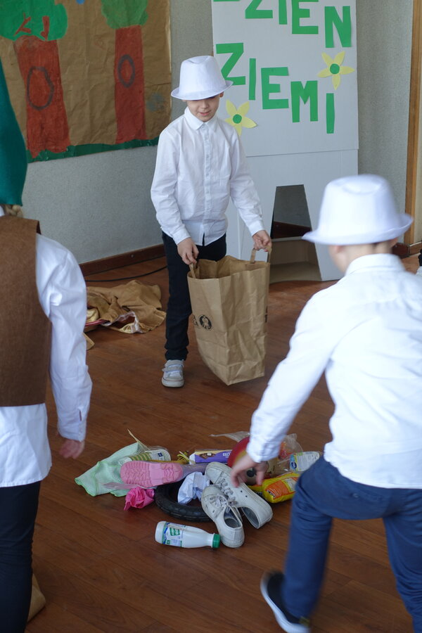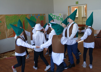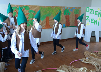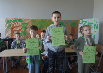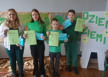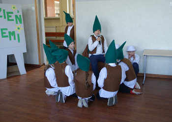 27 kwietnia świętowaliśmy w naszej szkole Dzień Ziemi. Z tej okazji wszyscy uczniowie obejrzeli przedstawienie przygotowane przez uczniów klasy 2 i 3 o tematyce ekologicznej. Potem uczniowie mogli sprawdzić swoje wiadomości w turnieju wiedzy ekologiczno- przyrodniczej. Turniej odbył się z podziałem na kategorie wiekowe. Najpierw drużyny z klas 1-3, a na kolejnej lekcji uczniowie z klas 4-8. W obu grupach startowały 4 drużyny. W klasach młodszych rywalizowali: drużyna 1-Lilka Małecka, Jagna Olejniczak, Antek Kruk. Drużyna 2 to Korneliusz Michalski, Zosia Pieprzyk, Szymon Dwornik. W skład drużyny 3 weszli Wiktoria Musielak, Franek Ciesielski i Zuzia Gąd, a drużyna 4 to Darek Mocek, Anastazja Małecka i Wojtek Kutkowski. Turniej klas młodszych wygrała drużyna 4, która w nagrodę otrzymała piękne atlasy przyrodnicze i dyplomy. Kolejne drużyny utworzyli uczniowie klas 8, Gabrysia Kruk, Adrian Jaworski, Konstancja Michalska i Stefan Gjeka. Drużyna Gabrysi to Michał Łyczyński, Bartosz Gorzelniak, Olga Kutkowska. Adrian do drużyny dobrał Nikodema Przewoźnego, Dominikę Małecką i Filipa Lewandowskiego. Konstancja współpracowała z Tymkiem Nowaczykiem, Emilią Rudawską i Mikołajem Hofmanem. Natomiast Stefana wspierali Bartek Dwornik, Olivier Witczak i Krzysztof Pusiak. Walka była zacięta i w ostateczności wygrała drużyna Konstancji. Zwycięzcy otrzymali bony o wartości 50 zł firmy Max Elektro ufundowane przez Radę Rodziców naszej szkoły. W obchodach Dnia Ziemi uczestniczyły również dzieci z przedszkola, które po obejrzeniu przedstawienia bawiły się z leśnymi skrzatami. Wszystkim uczniom dziękujemy za wspólną zabawę i zaangażowanie.