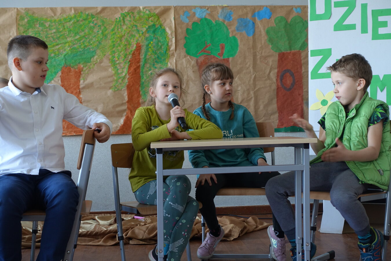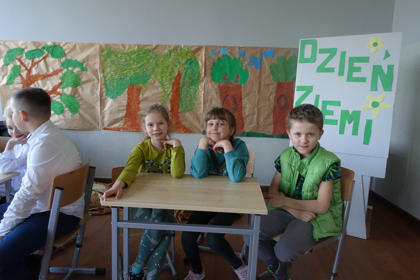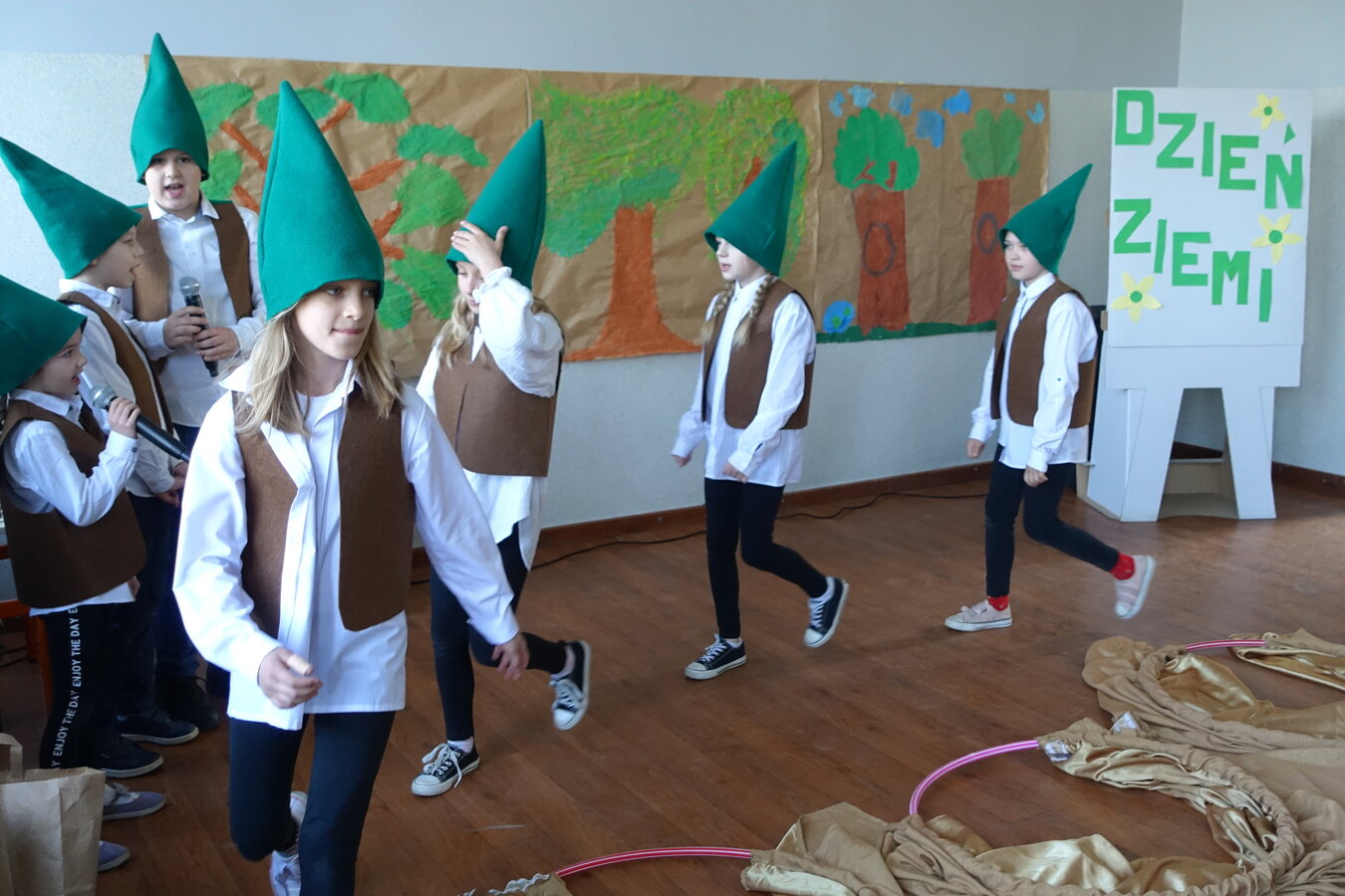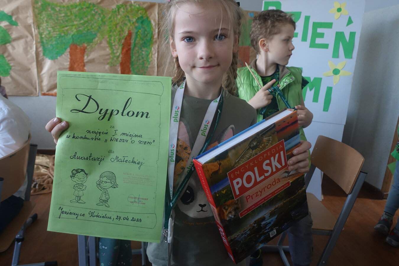 27 kwietnia świętowaliśmy w naszej szkole Dzień Ziemi. Z tej okazji wszyscy uczniowie obejrzeli przedstawienie przygotowane przez uczniów klasy 2 i 3 o tematyce ekologicznej. Potem uczniowie mogli sprawdzić swoje wiadomości w turnieju wiedzy ekologiczno- przyrodniczej. Turniej odbył się z podziałem na kategorie wiekowe. Najpierw drużyny z klas 1-3, a na kolejnej lekcji uczniowie z klas 4-8. W obu grupach startowały 4 drużyny. W klasach młodszych rywalizowali: drużyna 1-Lilka Małecka, Jagna Olejniczak, Antek Kruk. Drużyna 2 to Korneliusz Michalski, Zosia Pieprzyk, Szymon Dwornik. W skład drużyny 3 weszli Wiktoria Musielak, Franek Ciesielski i Zuzia Gąd, a drużyna 4 to Darek Mocek, Anastazja Małecka i Wojtek Kutkowski. Turniej klas młodszych wygrała drużyna 4, która w nagrodę otrzymała piękne atlasy przyrodnicze i dyplomy. Kolejne drużyny utworzyli uczniowie klas 8, Gabrysia Kruk, Adrian Jaworski, Konstancja Michalska i Stefan Gjeka. Drużyna Gabrysi to Michał Łyczyński, Bartosz Gorzelniak, Olga Kutkowska. Adrian do drużyny dobrał Nikodema Przewoźnego, Dominikę Małecką i Filipa Lewandowskiego. Konstancja współpracowała z Tymkiem Nowaczykiem, Emilią Rudawską i Mikołajem Hofmanem. Natomiast Stefana wspierali Bartek Dwornik, Olivier Witczak i Krzysztof Pusiak. Walka była zacięta i w ostateczności wygrała drużyna Konstancji. Zwycięzcy otrzymali bony o wartości 50 zł firmy Max Elektro ufundowane przez Radę Rodziców naszej szkoły. W obchodach Dnia Ziemi uczestniczyły również dzieci z przedszkola, które po obejrzeniu przedstawienia bawiły się z leśnymi skrzatami. Wszystkim uczniom dziękujemy za wspólną zabawę i zaangażowanie.