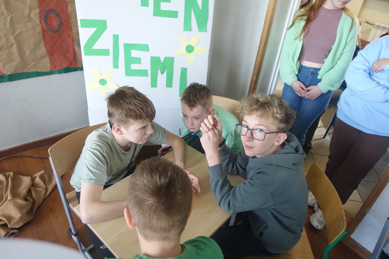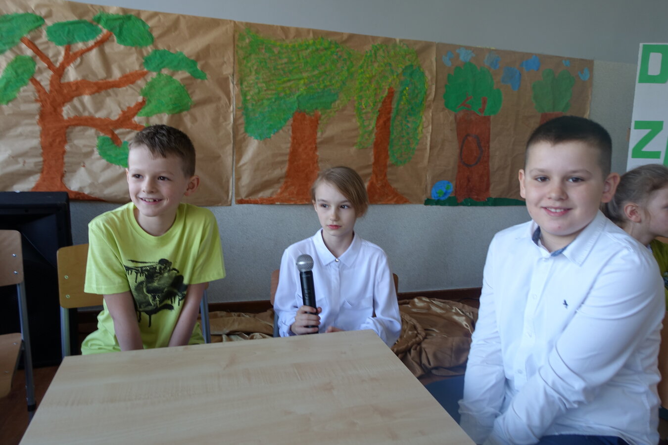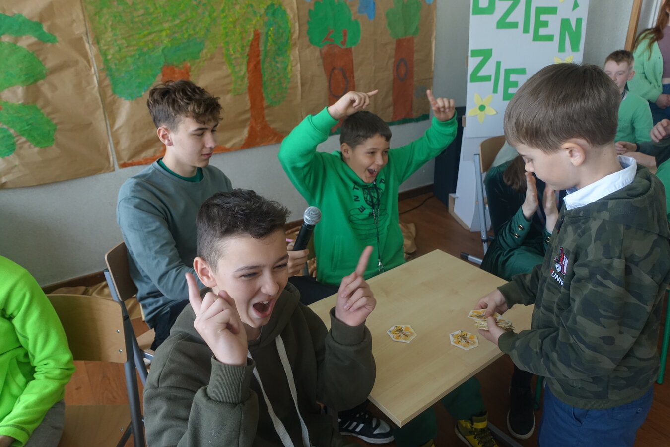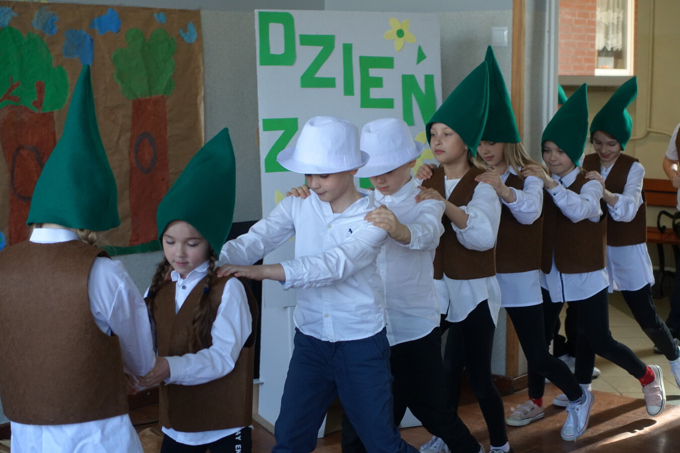 27 kwietnia świętowaliśmy w naszej szkole Dzień Ziemi. Z tej okazji wszyscy uczniowie obejrzeli przedstawienie przygotowane przez uczniów klasy 2 i 3 o tematyce ekologicznej. Potem uczniowie mogli sprawdzić swoje wiadomości w turnieju wiedzy ekologiczno- przyrodniczej. Turniej odbył się z podziałem na kategorie wiekowe. Najpierw drużyny z klas 1-3, a na kolejnej lekcji uczniowie z klas 4-8. W obu grupach startowały 4 drużyny. W klasach młodszych rywalizowali: drużyna 1-Lilka Małecka, Jagna Olejniczak, Antek Kruk. Drużyna 2 to Korneliusz Michalski, Zosia Pieprzyk, Szymon Dwornik. W skład drużyny 3 weszli Wiktoria Musielak, Franek Ciesielski i Zuzia Gąd, a drużyna 4 to Darek Mocek, Anastazja Małecka i Wojtek Kutkowski. Turniej klas młodszych wygrała drużyna 4, która w nagrodę otrzymała piękne atlasy przyrodnicze i dyplomy. Kolejne drużyny utworzyli uczniowie klas 8, Gabrysia Kruk, Adrian Jaworski, Konstancja Michalska i Stefan Gjeka. Drużyna Gabrysi to Michał Łyczyński, Bartosz Gorzelniak, Olga Kutkowska. Adrian do drużyny dobrał Nikodema Przewoźnego, Dominikę Małecką i Filipa Lewandowskiego. Konstancja współpracowała z Tymkiem Nowaczykiem, Emilią Rudawską i Mikołajem Hofmanem. Natomiast Stefana wspierali Bartek Dwornik, Olivier Witczak i Krzysztof Pusiak. Walka była zacięta i w ostateczności wygrała drużyna Konstancji. Zwycięzcy otrzymali bony o wartości 50 zł firmy Max Elektro ufundowane przez Radę Rodziców naszej szkoły. W obchodach Dnia Ziemi uczestniczyły również dzieci z przedszkola, które po obejrzeniu przedstawienia bawiły się z leśnymi skrzatami. Wszystkim uczniom dziękujemy za wspólną zabawę i zaangażowanie.