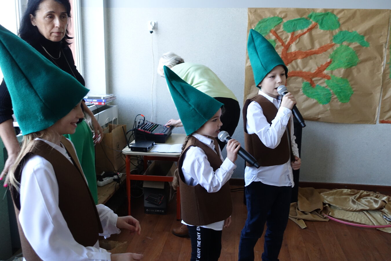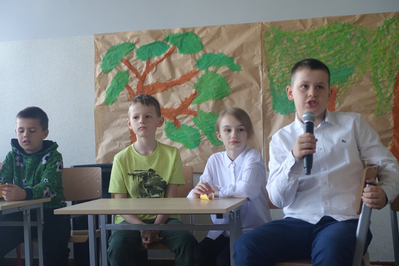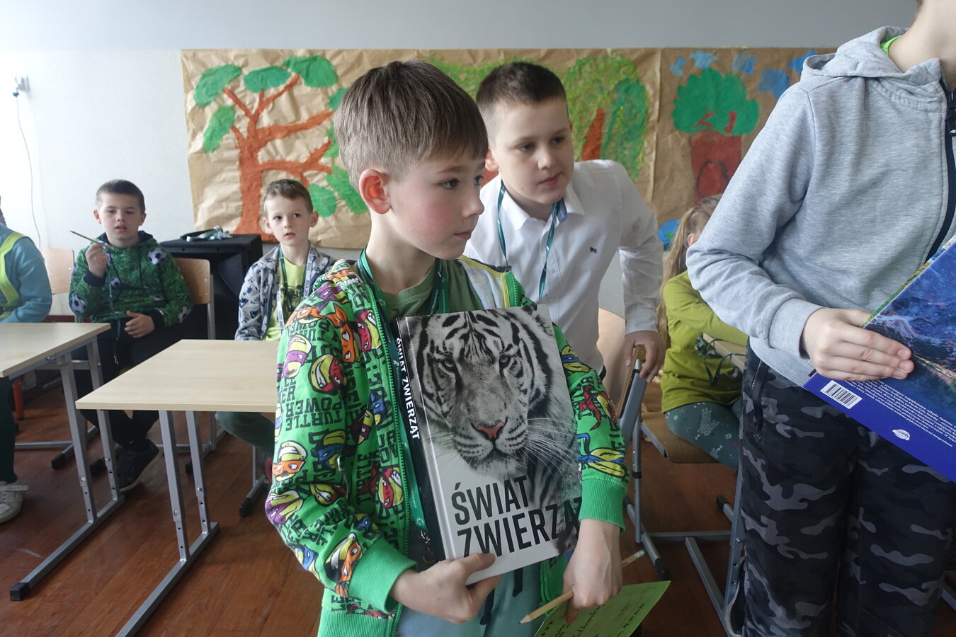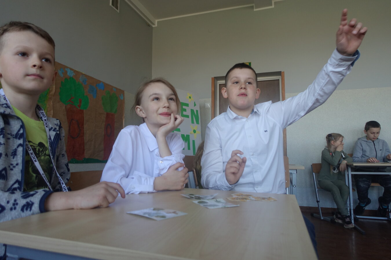 27 kwietnia świętowaliśmy w naszej szkole Dzień Ziemi. Z tej okazji wszyscy uczniowie obejrzeli przedstawienie przygotowane przez uczniów klasy 2 i 3 o tematyce ekologicznej. Potem uczniowie mogli sprawdzić swoje wiadomości w turnieju wiedzy ekologiczno- przyrodniczej. Turniej odbył się z podziałem na kategorie wiekowe. Najpierw drużyny z klas 1-3, a na kolejnej lekcji uczniowie z klas 4-8. W obu grupach startowały 4 drużyny. W klasach młodszych rywalizowali: drużyna 1-Lilka Małecka, Jagna Olejniczak, Antek Kruk. Drużyna 2 to Korneliusz Michalski, Zosia Pieprzyk, Szymon Dwornik. W skład drużyny 3 weszli Wiktoria Musielak, Franek Ciesielski i Zuzia Gąd, a drużyna 4 to Darek Mocek, Anastazja Małecka i Wojtek Kutkowski. Turniej klas młodszych wygrała drużyna 4, która w nagrodę otrzymała piękne atlasy przyrodnicze i dyplomy. Kolejne drużyny utworzyli uczniowie klas 8, Gabrysia Kruk, Adrian Jaworski, Konstancja Michalska i Stefan Gjeka. Drużyna Gabrysi to Michał Łyczyński, Bartosz Gorzelniak, Olga Kutkowska. Adrian do drużyny dobrał Nikodema Przewoźnego, Dominikę Małecką i Filipa Lewandowskiego. Konstancja współpracowała z Tymkiem Nowaczykiem, Emilią Rudawską i Mikołajem Hofmanem. Natomiast Stefana wspierali Bartek Dwornik, Olivier Witczak i Krzysztof Pusiak. Walka była zacięta i w ostateczności wygrała drużyna Konstancji. Zwycięzcy otrzymali bony o wartości 50 zł firmy Max Elektro ufundowane przez Radę Rodziców naszej szkoły. W obchodach Dnia Ziemi uczestniczyły również dzieci z przedszkola, które po obejrzeniu przedstawienia bawiły się z leśnymi skrzatami. Wszystkim uczniom dziękujemy za wspólną zabawę i zaangażowanie.