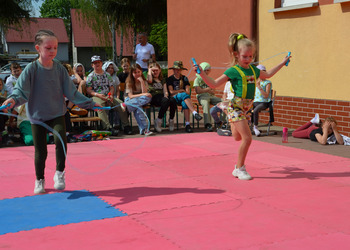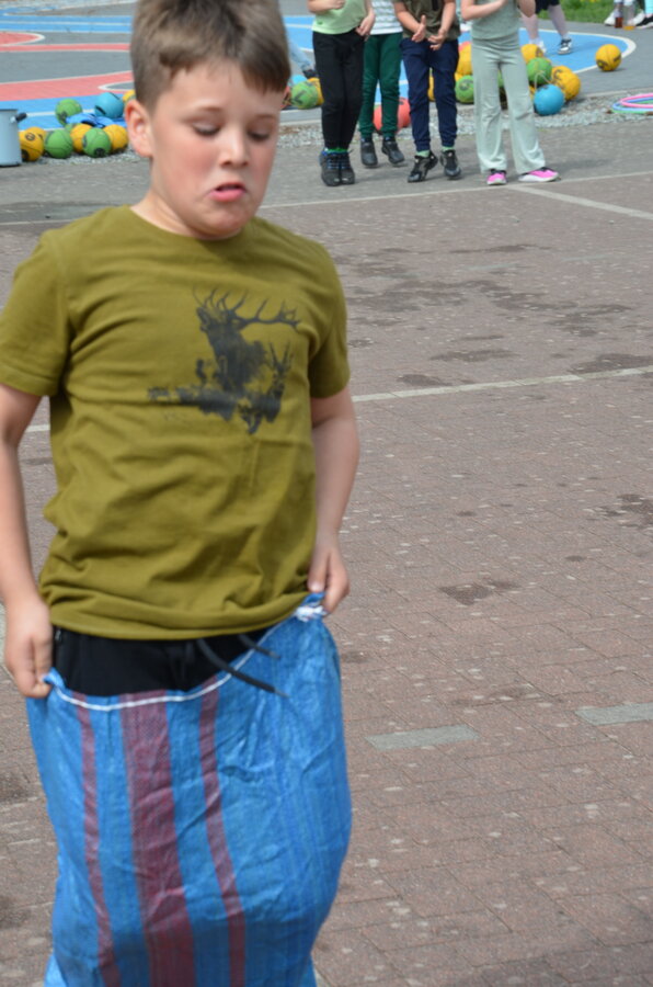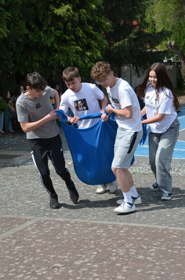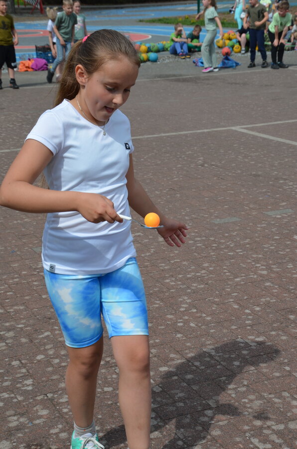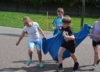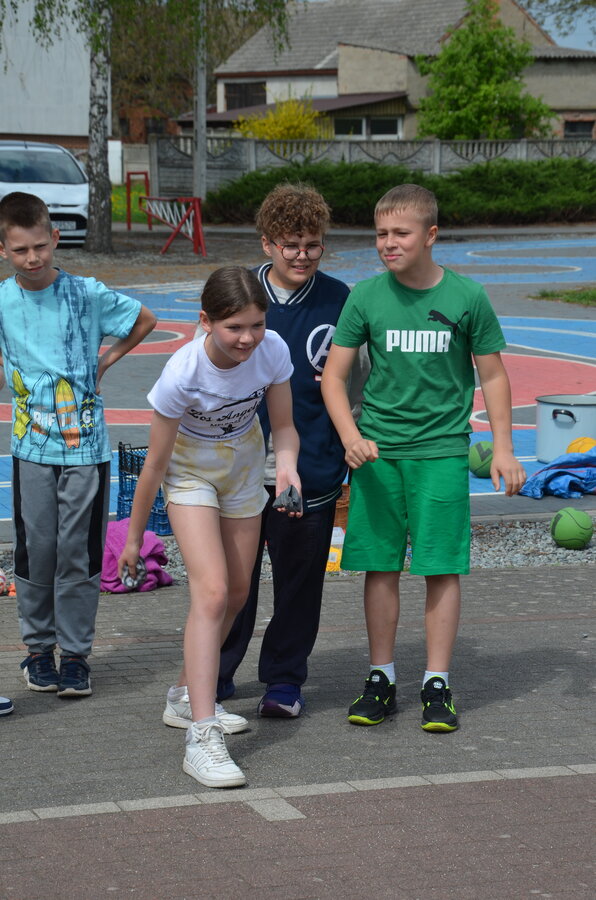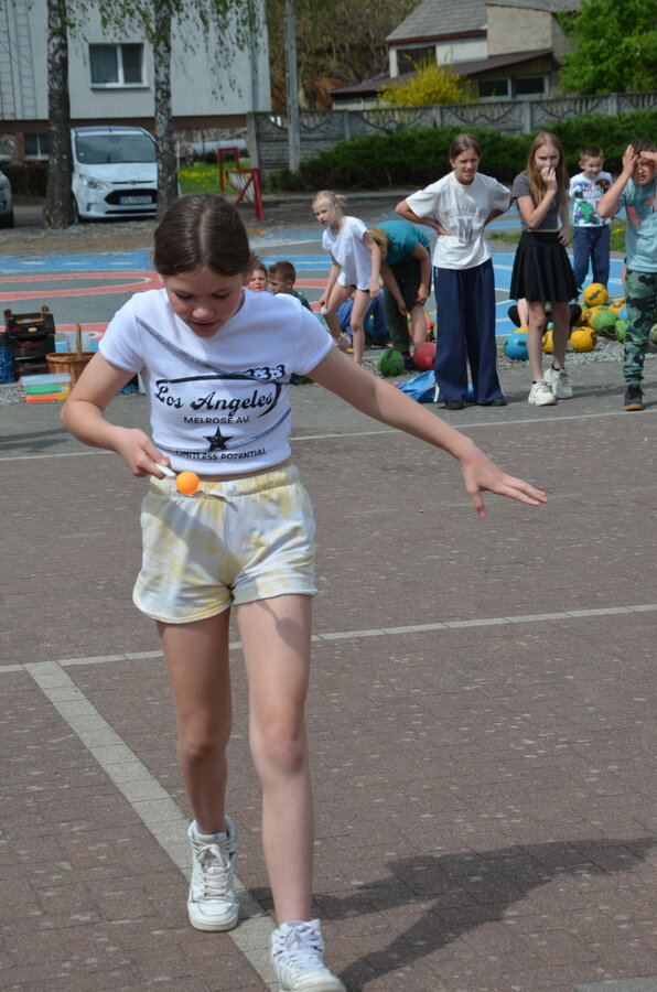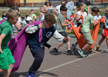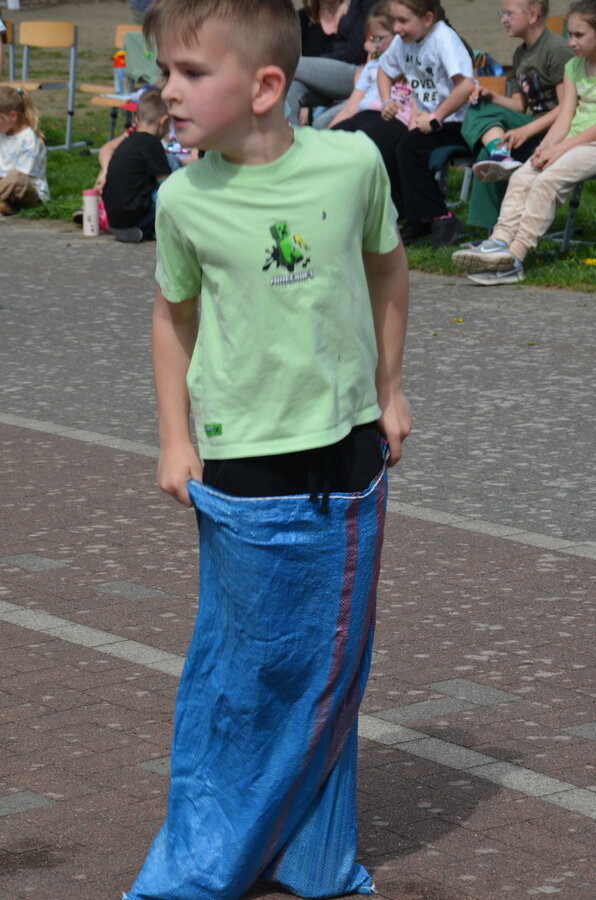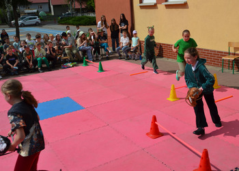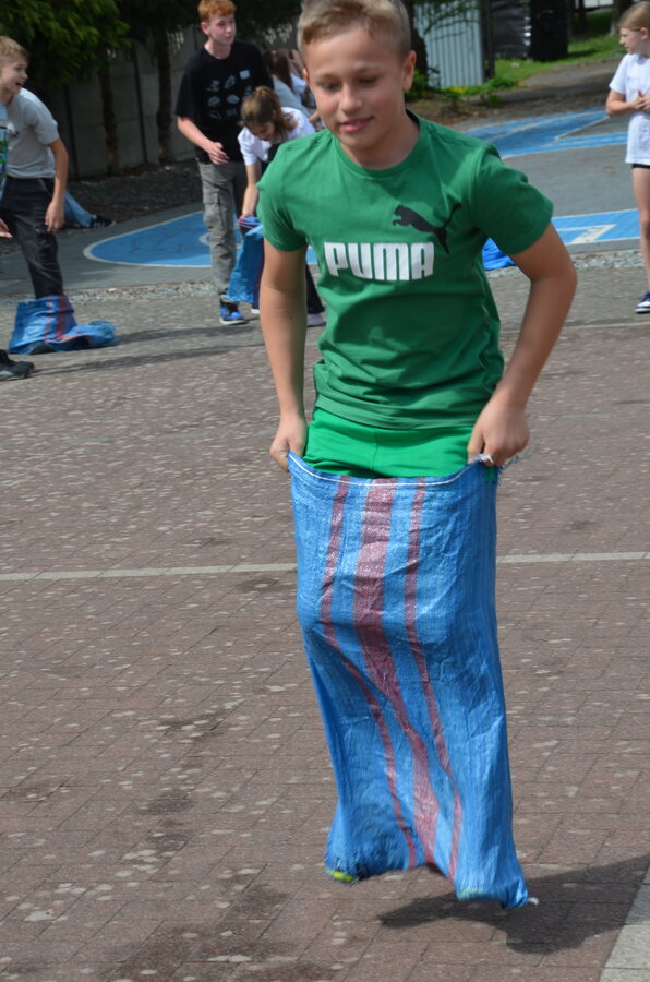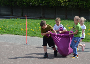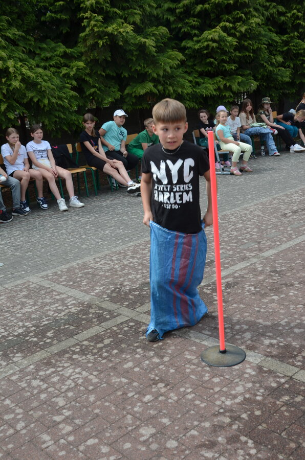 Kolejnym punktem programu były konkurencje sportowe do wszystkich klas. Był wyścig w przenoszeniu na kocu, rzuty do celu, przenoszenie piłek w skrzynkach, wyścig w workach, przenoszenie wody w kubeczkach i napełnianie dzbanka.