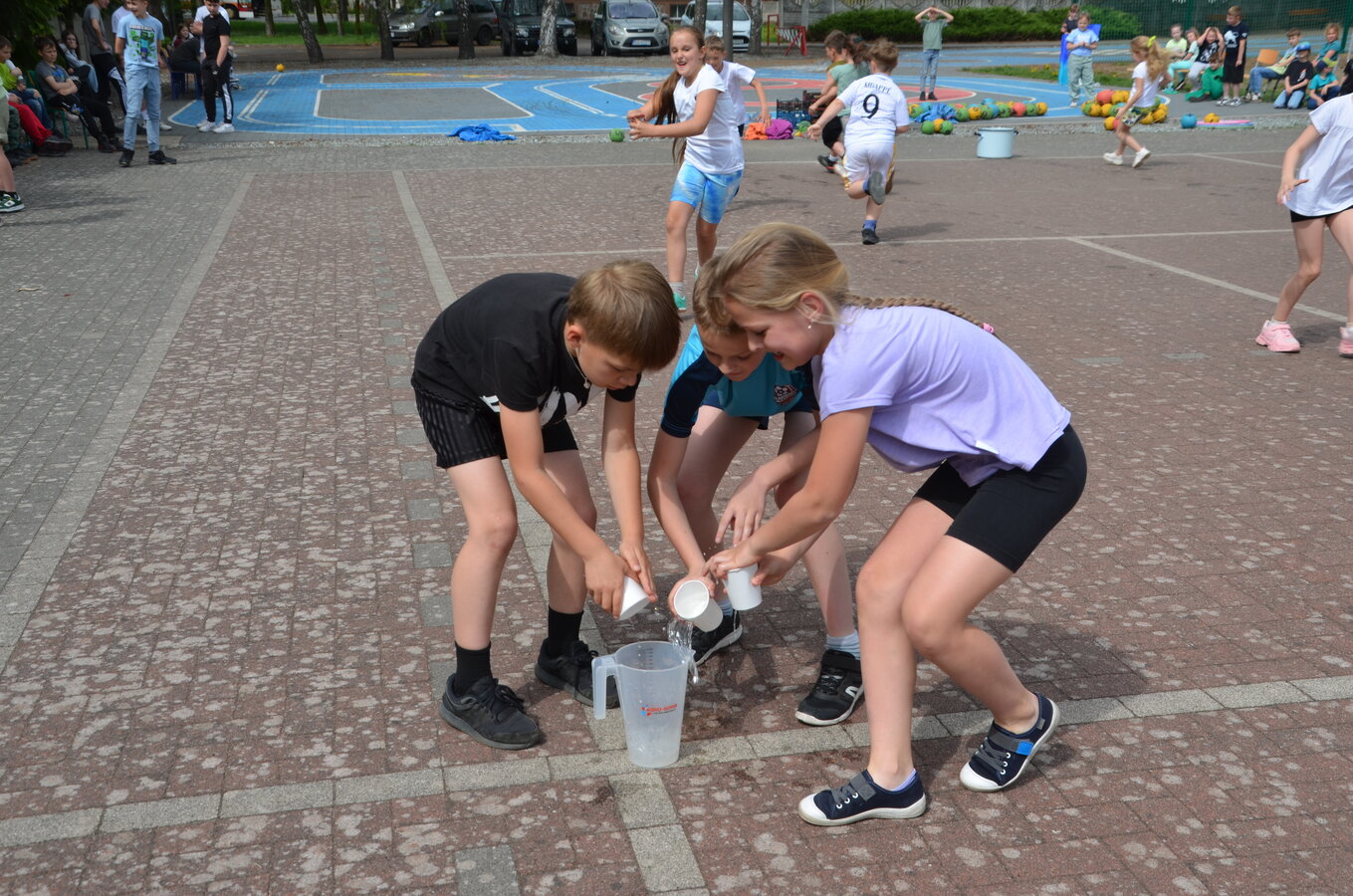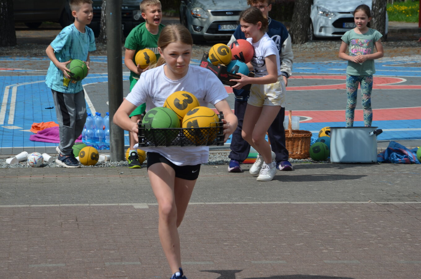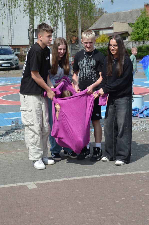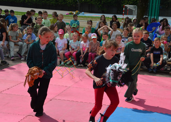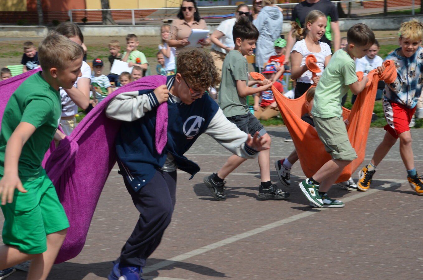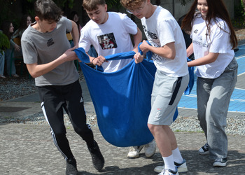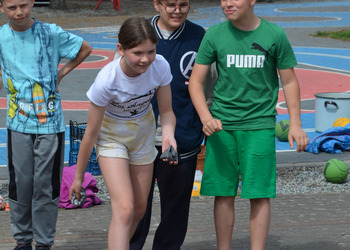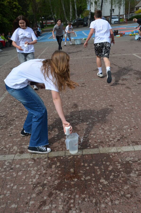 Kolejnym punktem programu były konkurencje sportowe do wszystkich klas. Był wyścig w przenoszeniu na kocu, rzuty do celu, przenoszenie piłek w skrzynkach, wyścig w workach, przenoszenie wody w kubeczkach i napełnianie dzbanka.