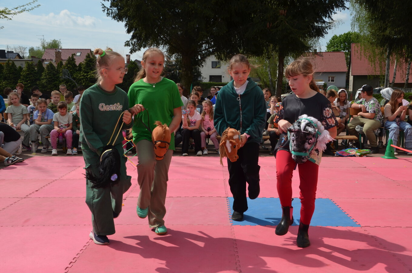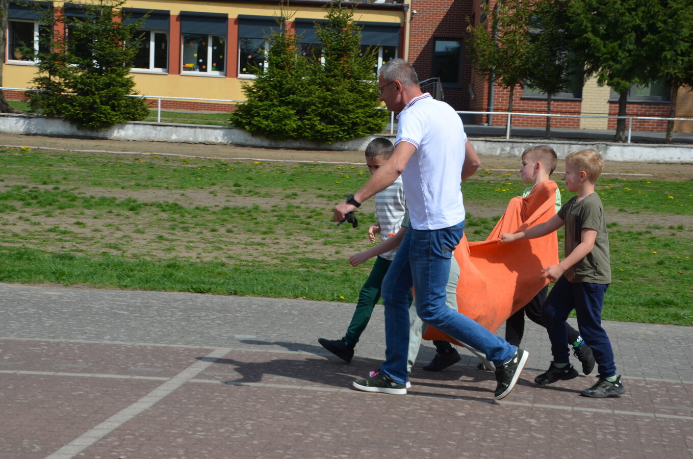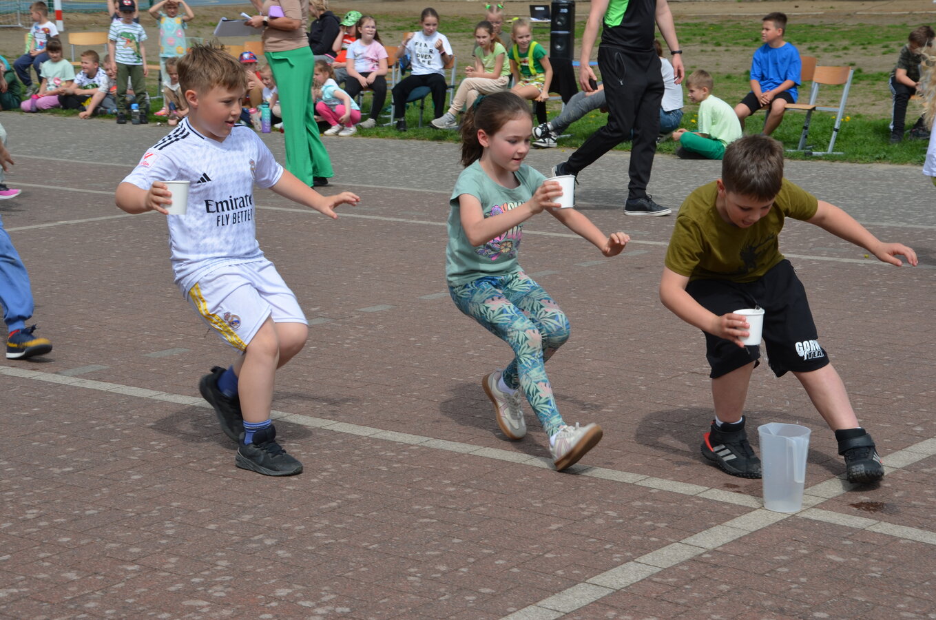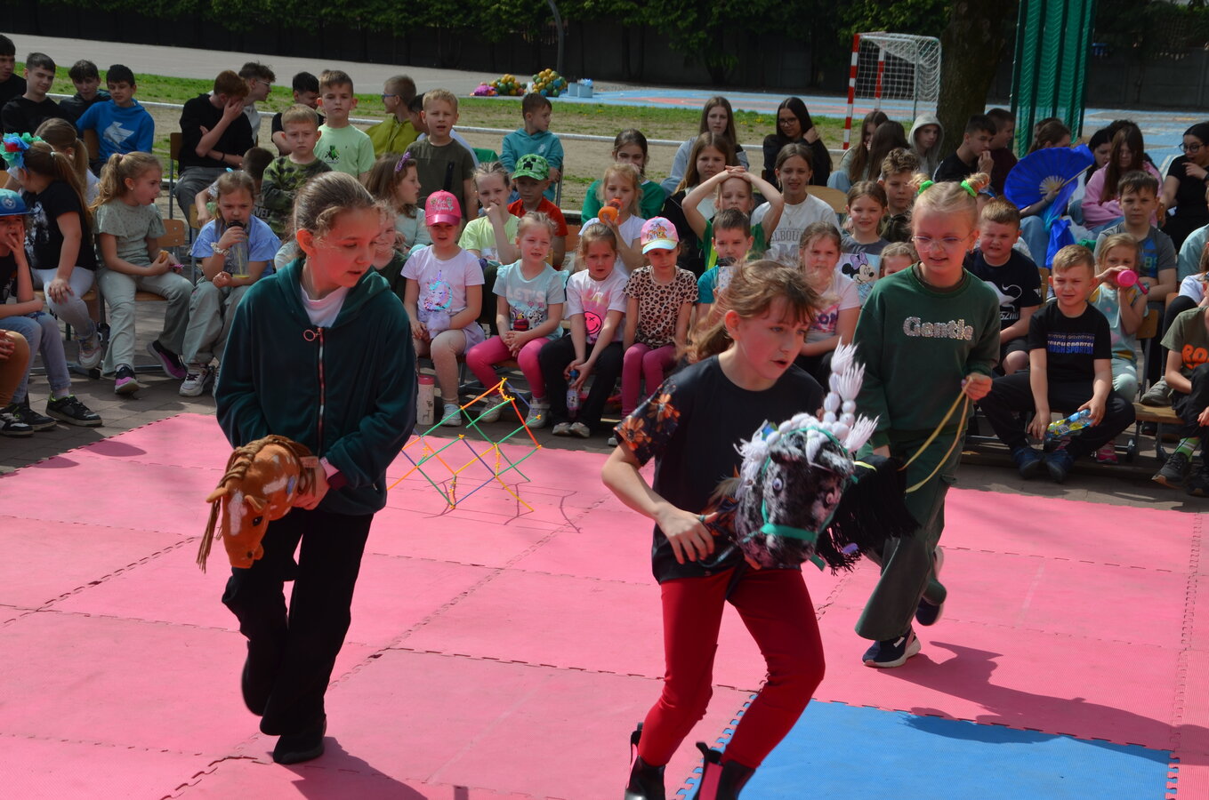 Kolejnym punktem programu były konkurencje sportowe do wszystkich klas. Był wyścig w przenoszeniu na kocu, rzuty do celu, przenoszenie piłek w skrzynkach, wyścig w workach, przenoszenie wody w kubeczkach i napełnianie dzbanka.