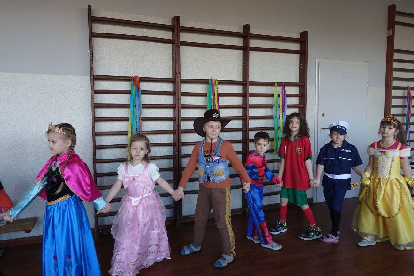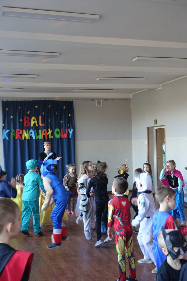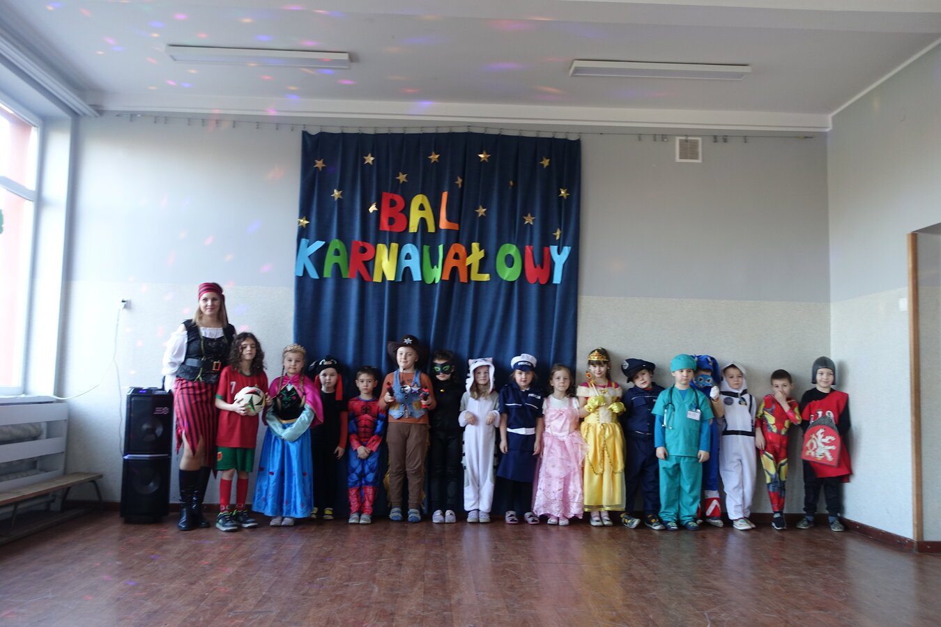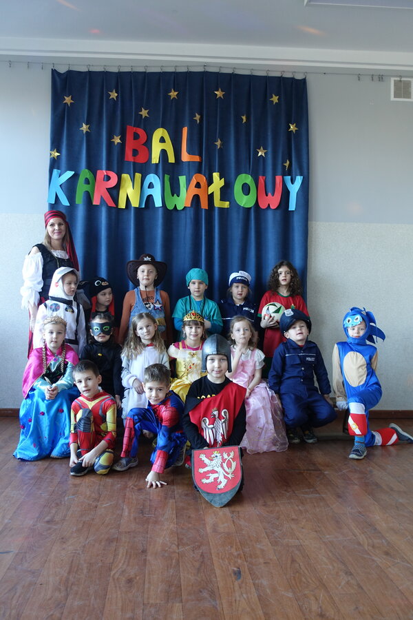 W piątek 17 stycznia wszystkie dzieci z oddziałów przedszkolnych spotkały się w świetlicy szkolnej aby wspólnie pobawić się przy muzyce. Na balu były księżniczki, wróżki, piraci, policjanci, strażacy, kotki, tygryski, lekarz, batman, spiderman, piłkarz, rycerz, oraz wiele innych postaci z bajek. Była prezentacja strojów, cudowna zabawa i tańce, a potem pamiątkowe zdjęcia i poczęstunek. Czekamy na następne bale w karnawale.