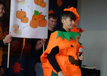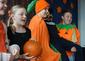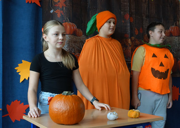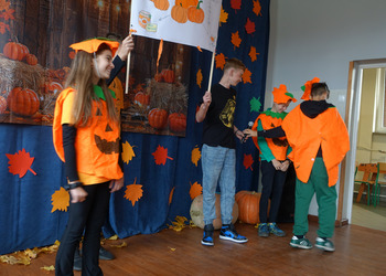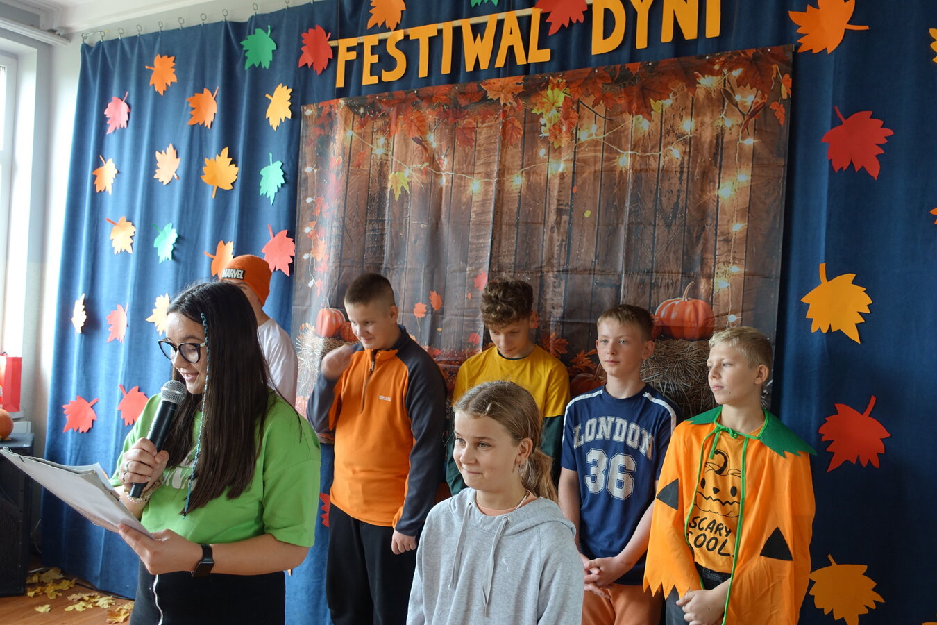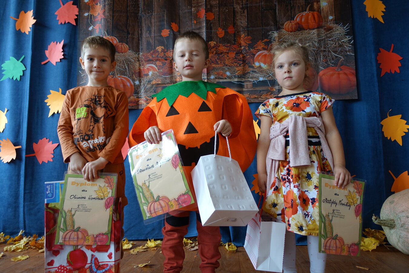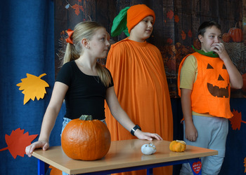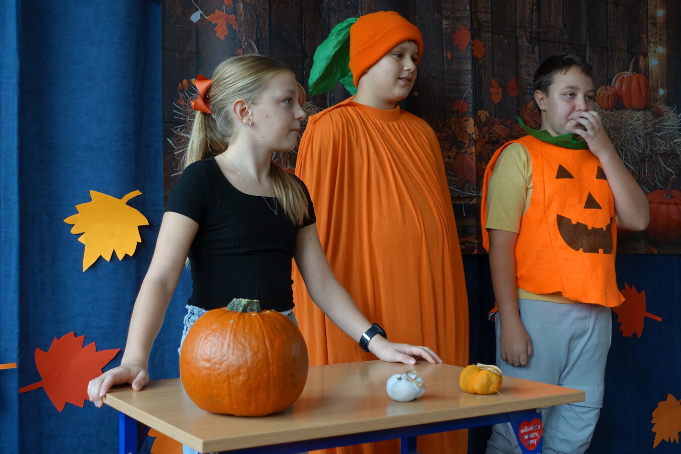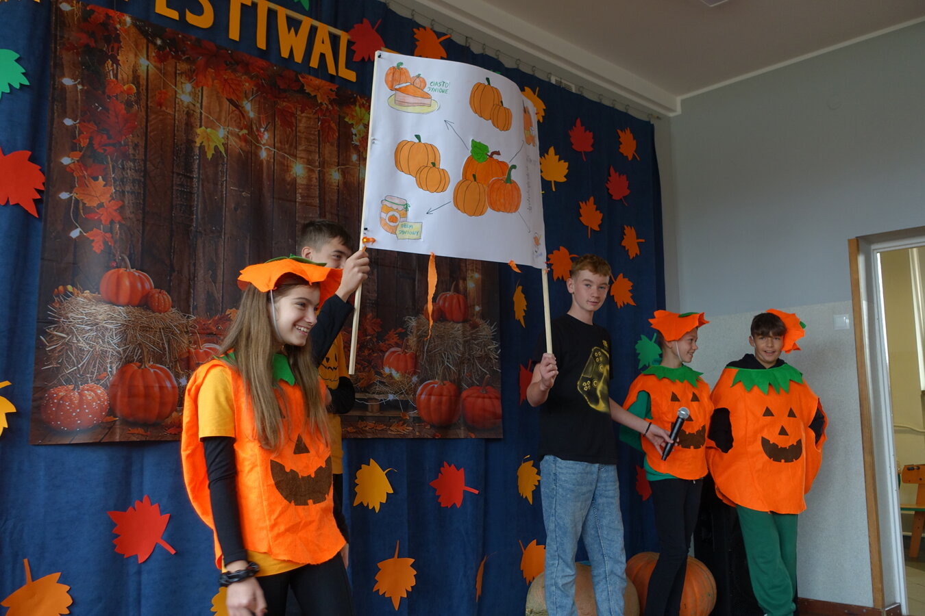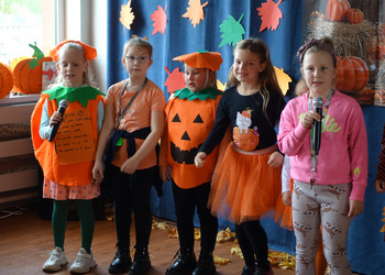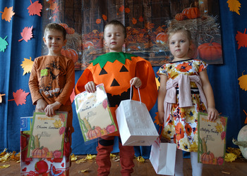 " Jesienna piosenka" dla klas I-III i utworzenie reklamy pt."Dynia - samo zdrowie", dla klas IV-VIII. Był też konkurs plastyczny dla przedszkolaków oraz konkurs na największą dynię.