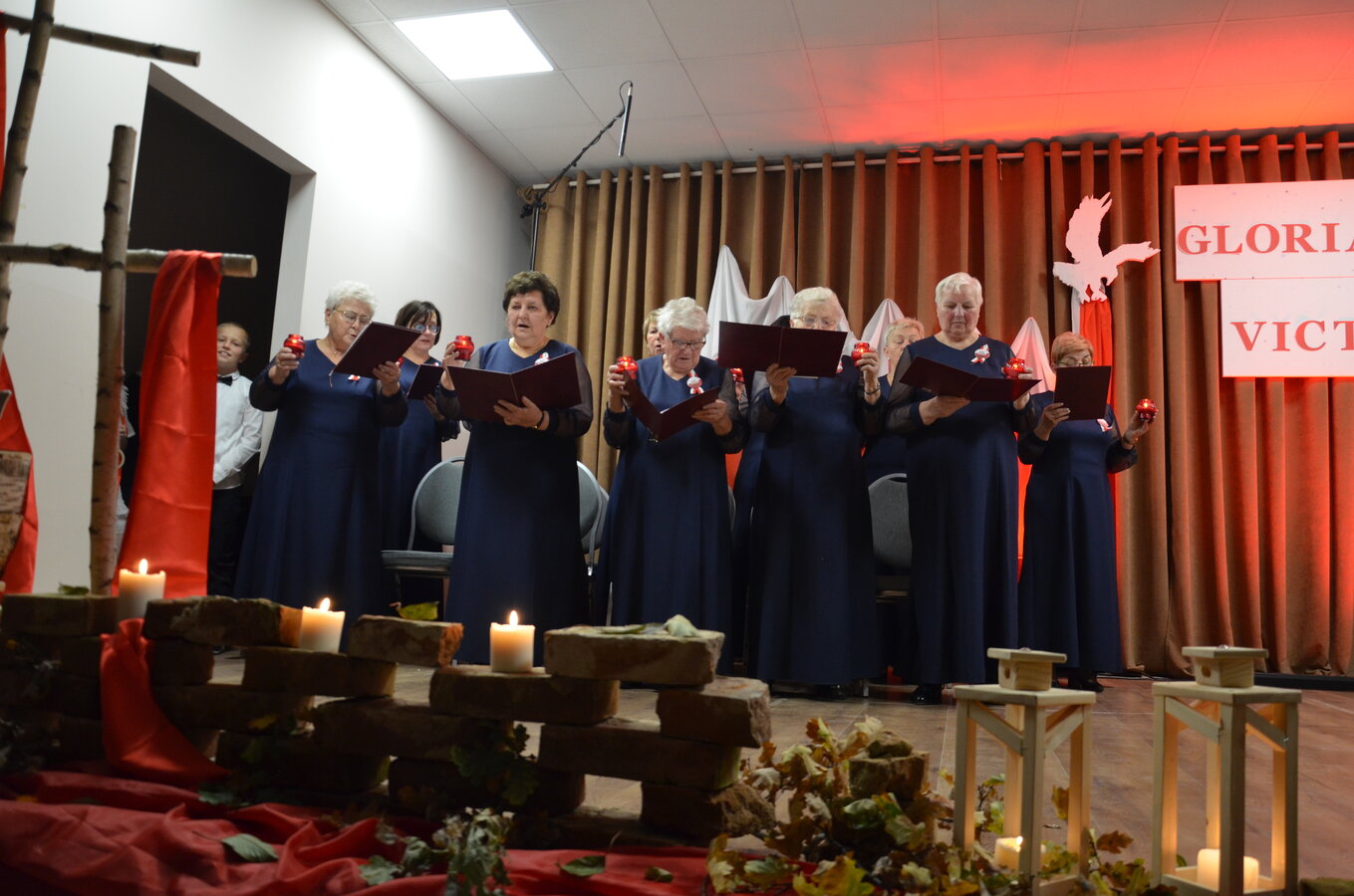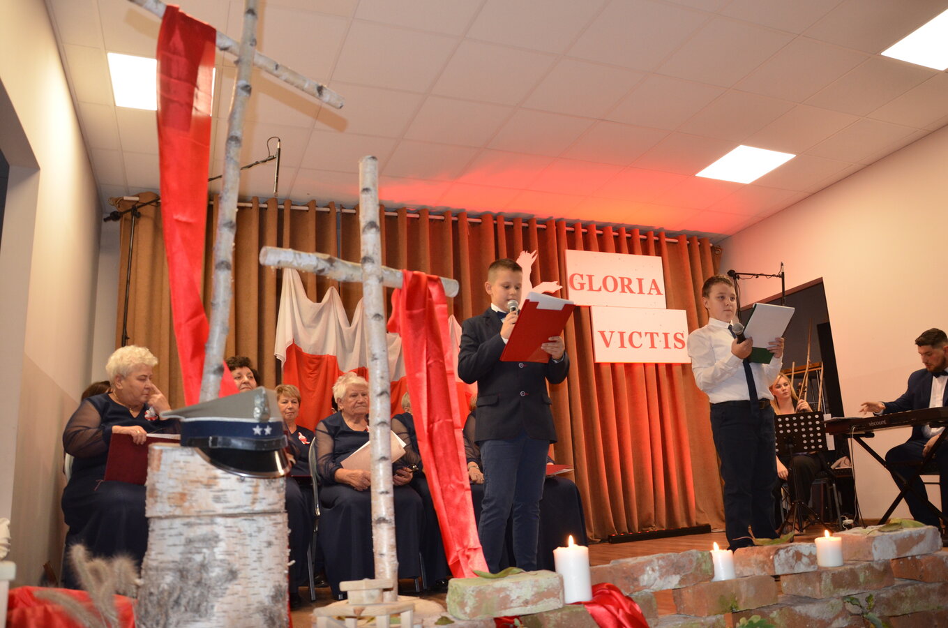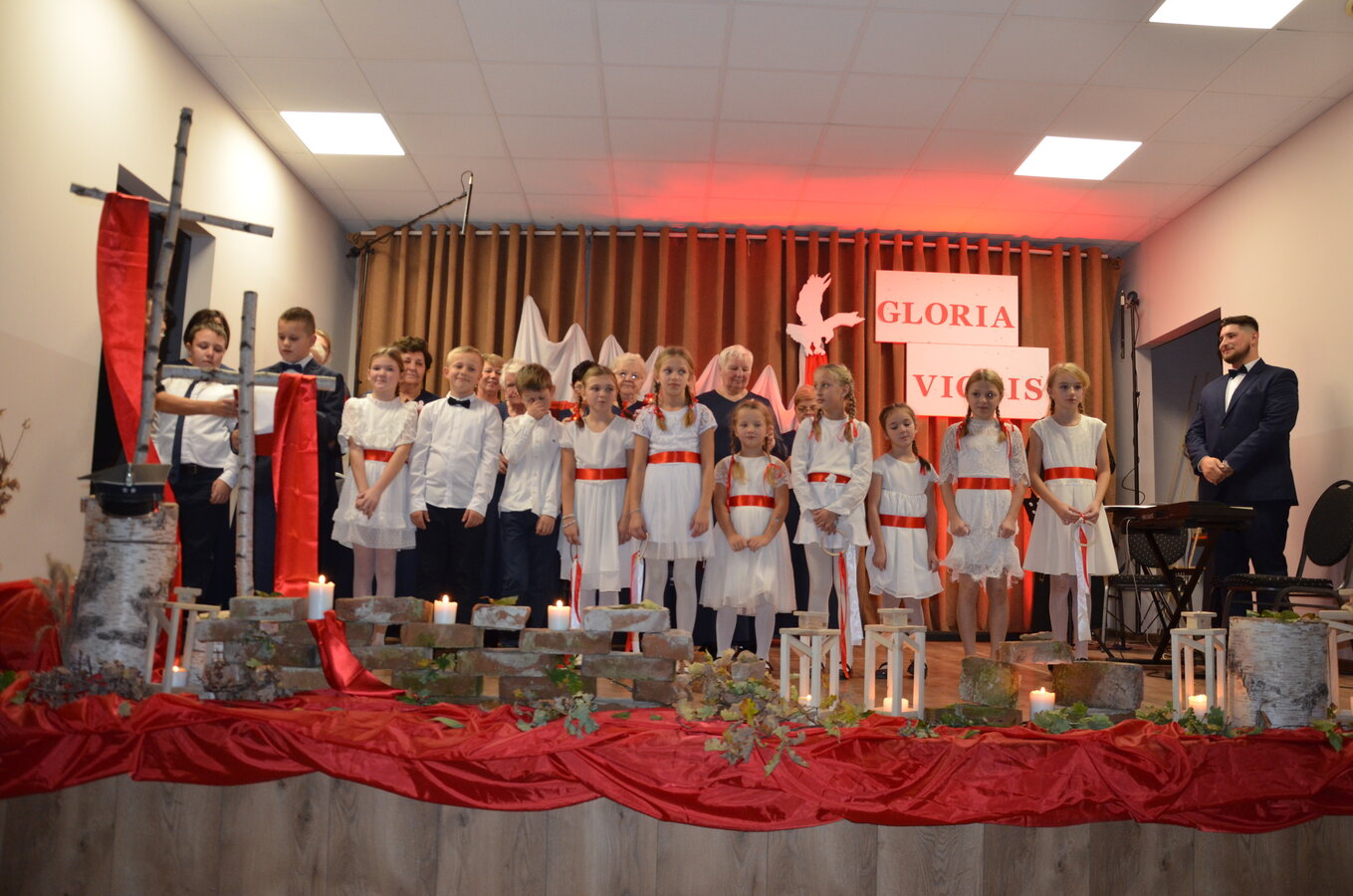W ramach obchodów Narodowego Święta Niepodległości 11 listopada 2023 r. o godzinie 17:00 na sali wiejskiej w Jezierzycach Kościelnych oraz 12 listopada 2023 r. na sali wiejskiej w Zbarzewie odbyła się wieczornica Gloria Victis. Uczniowie naszej szkoły wraz z zespołami śpiewaczymi "Jezioranki" i "Zbarzewianki" przygotowali inscenizację słowno - muzyczną w hołdzie wszystkim tym, którzy polegli w czasie długiej i krwawej drogi do odzyskania niepodległości.
